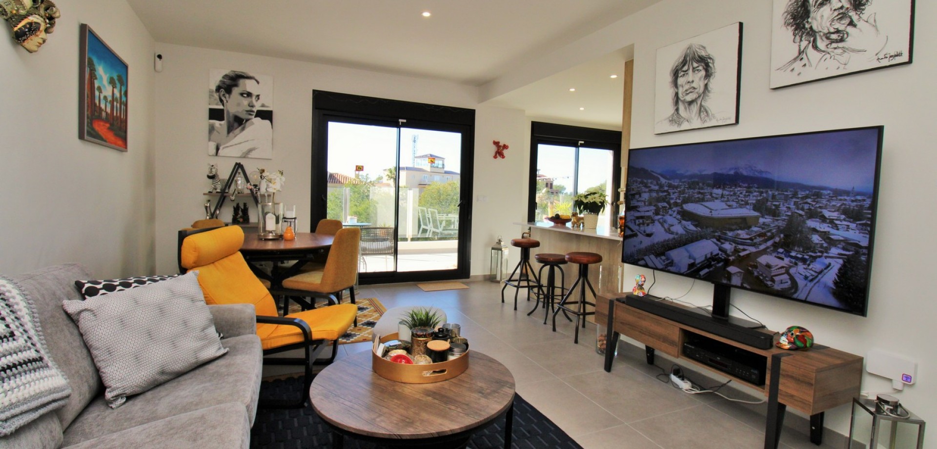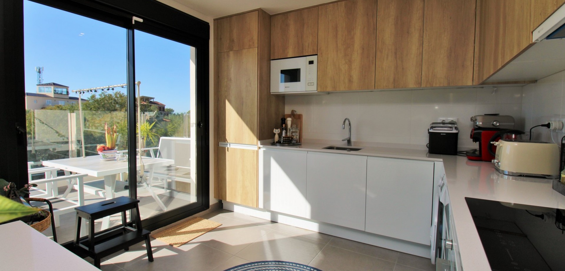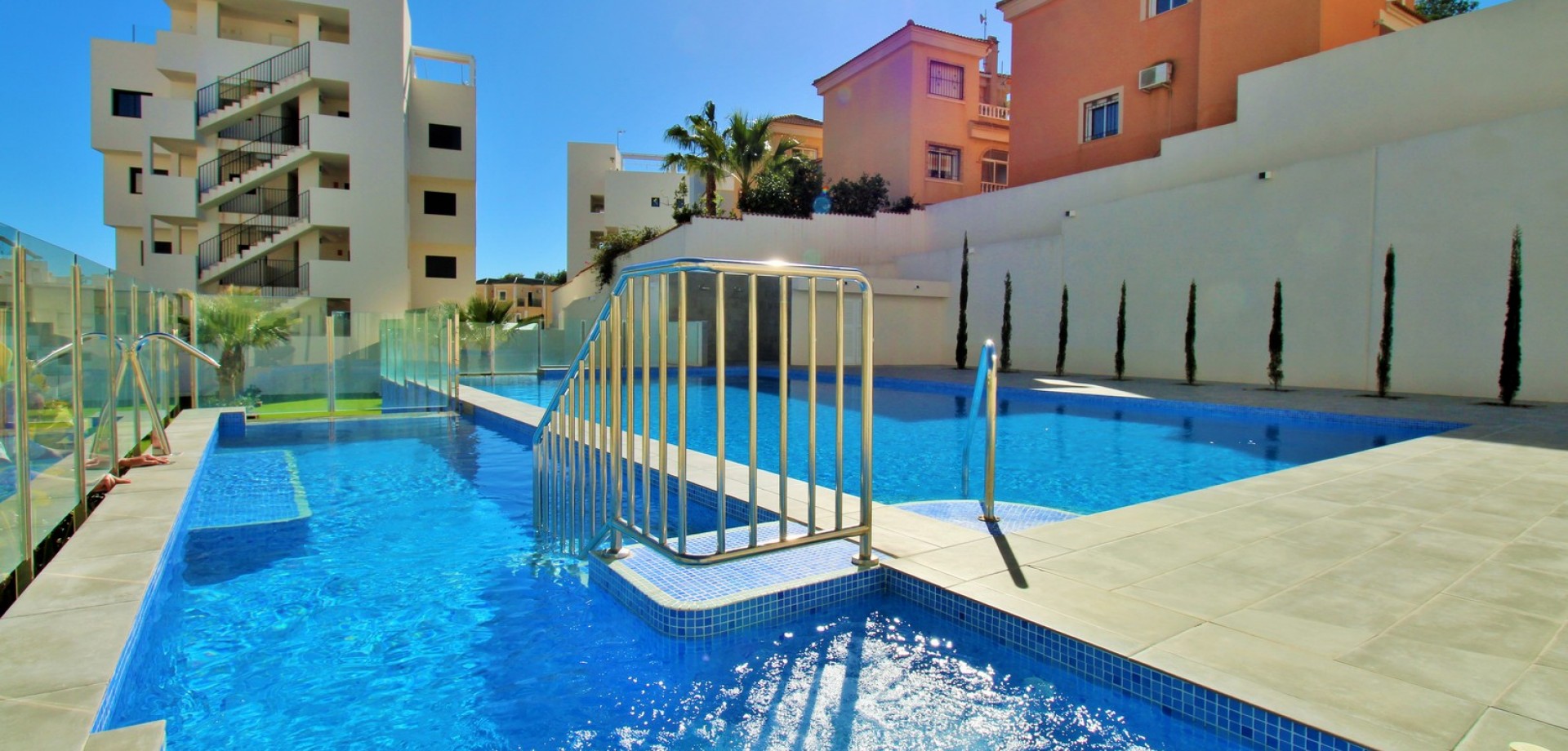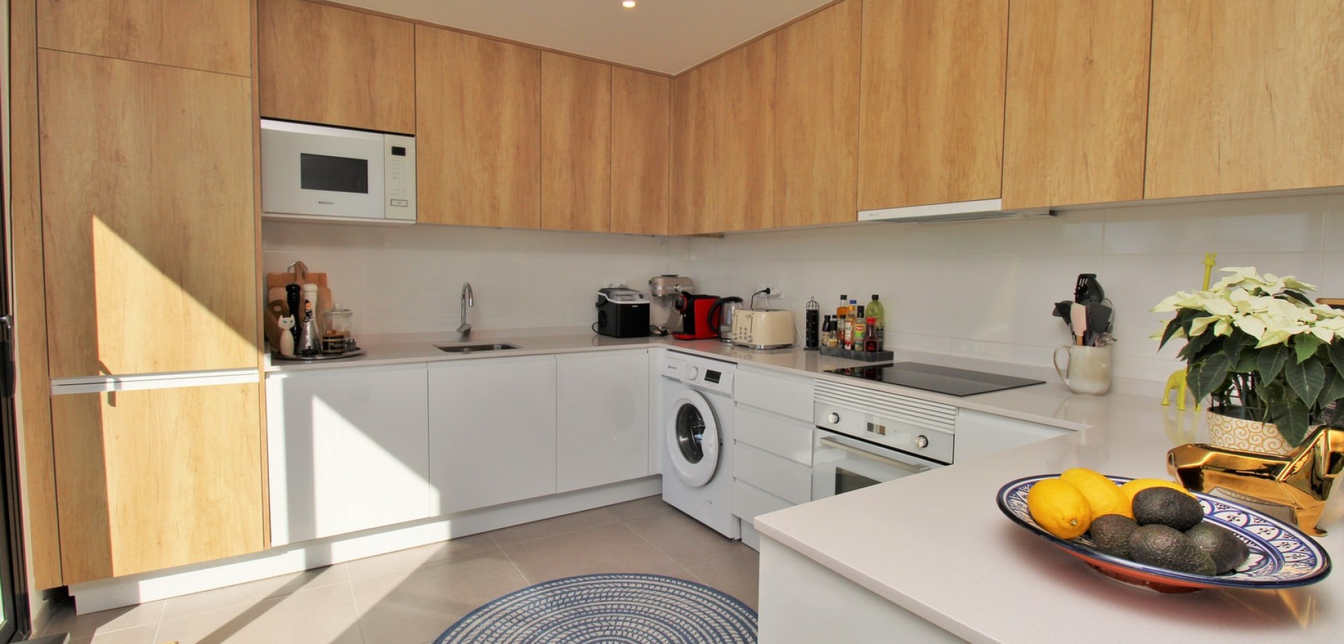 A stunning South-facing penthouse apartment located in the newly constructed Villacosta Club 3 in Villamartin, positioned in arguably the best block and elevated location within the entire development, offering breathtaking panoramic views across the area and towards the sea. This exceptional property features a bright and modern lounge-dining area with open-plan kitchen, designed for comfortable contemporary living. There are 2 double bedrooms with fitted wardrobes, including a master bedroom with en-suite bathroom, along with a stylish family bathroom, both benefiting from underfloor heating for year-round comfort. From the living area and kitchen, you access a generous South-facing front balcony fitted with an electric awning, ideal for outdoor dining and relaxing in the sun. One of the standout features of this penthouse is the incredible 78m² private roof solarium, accessible either directly from the terrace or via lift access through a private entrance door. From here, you can enjoy spectacular open views and beautiful sea vistas — a rare feature in the Villamartin area. The property is sold partially furnished and includes air-conditioning and white goods, making it ready to enjoy immediately. Included in the price is an underground parking space and a large private storage room, adding valuable practicality. Set within a secure gated community, residents benefit from a beautifully maintained communal pool and jacuzzi area. The location is ideal, within a short walk to local bars, restaurants, and shops, while the beaches of Orihuela Costa, several championship golf courses, and Zenia Boulevard shopping centre are just a short drive away. Situated at one of the highest points in Villamartin, this penthouse truly offers views and lifestyle that must be experienced in person — a rare opportunity to own a standout property in a highly sought-after modern development.