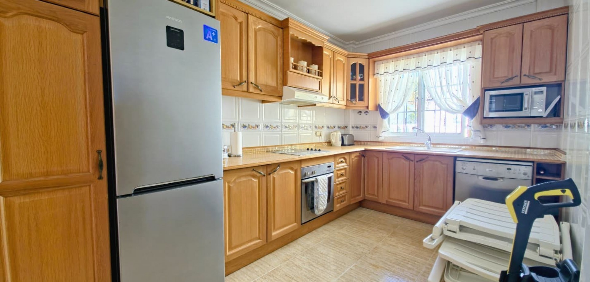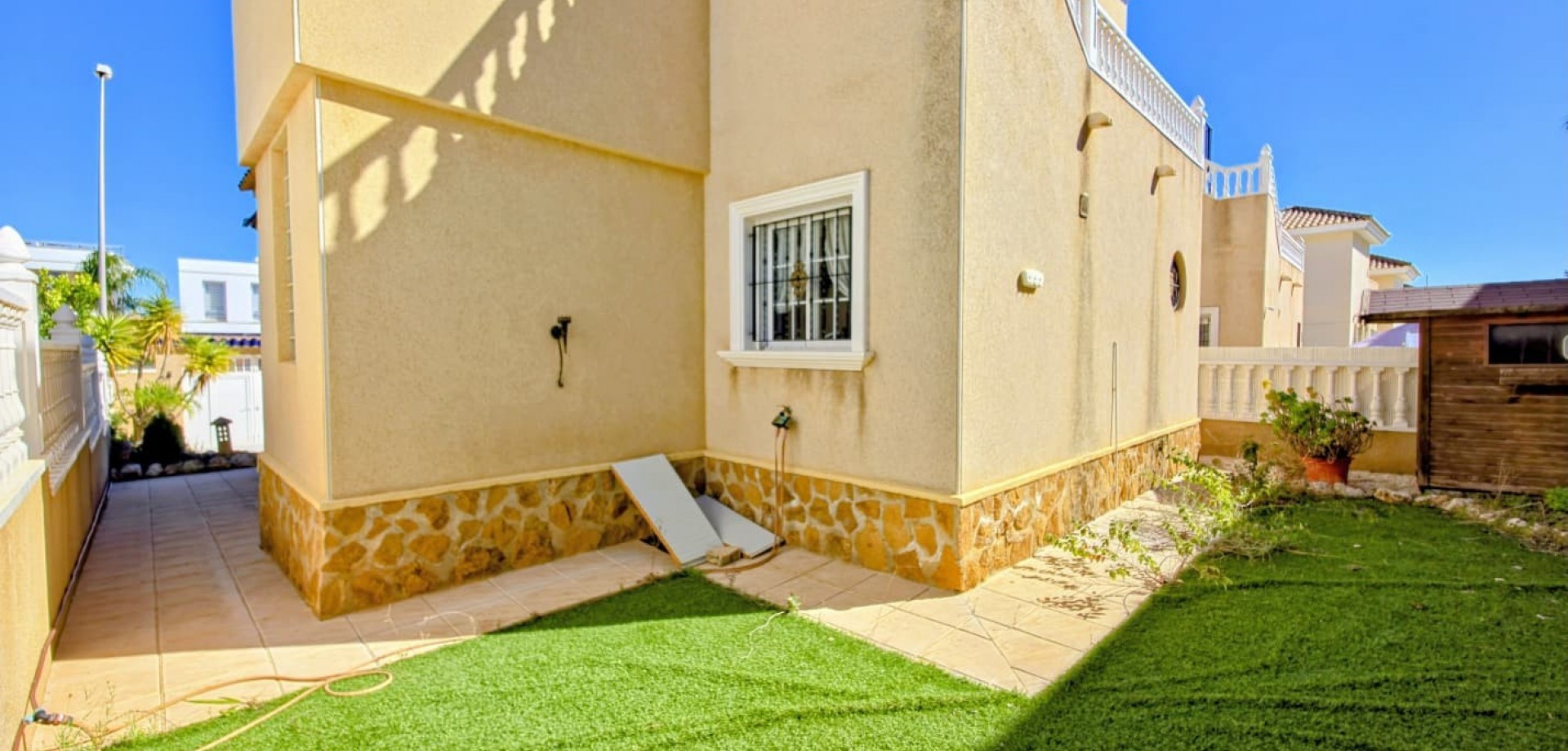 FOR SALE 270 m² detached house located in the Las Filipinas - Blue Lagoon residential area, a short drive from shops, services, and amenities. Quiet area. Close to the golf course. The house boasts numerous amenities, including a private pool, garage, and garden. The spacious house features 3 bedrooms, 2 bathrooms, a separate kitchen, a utility room, a large living room, terraces, and a storage room. It is being sold furnished and with appliances. Property tax (IBI): approximately €500/year. No community fees. Price: €330,000 Ref. V673A For more information or to schedule a viewing, please contact us at +34 656 638 173 or email us at info@amestate.es