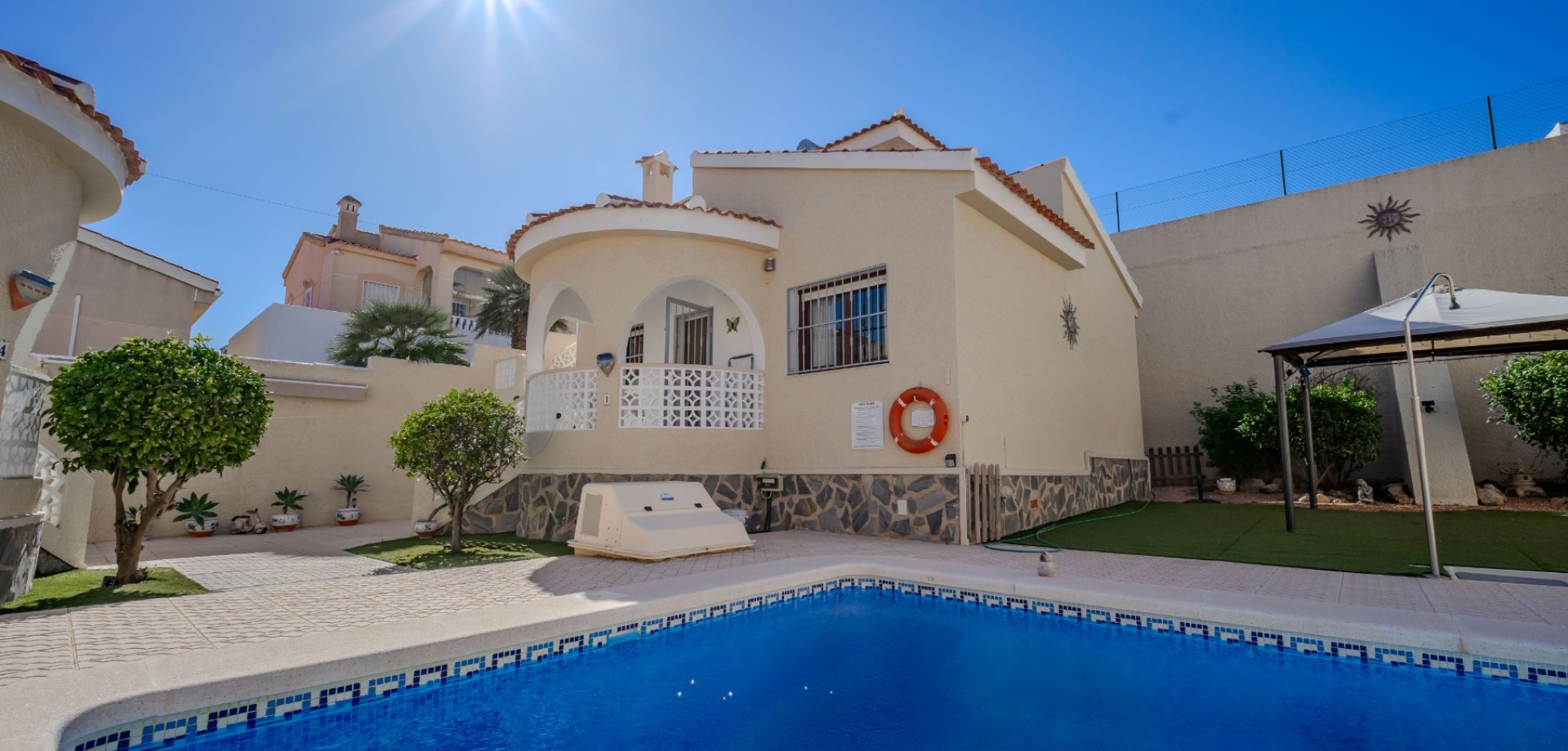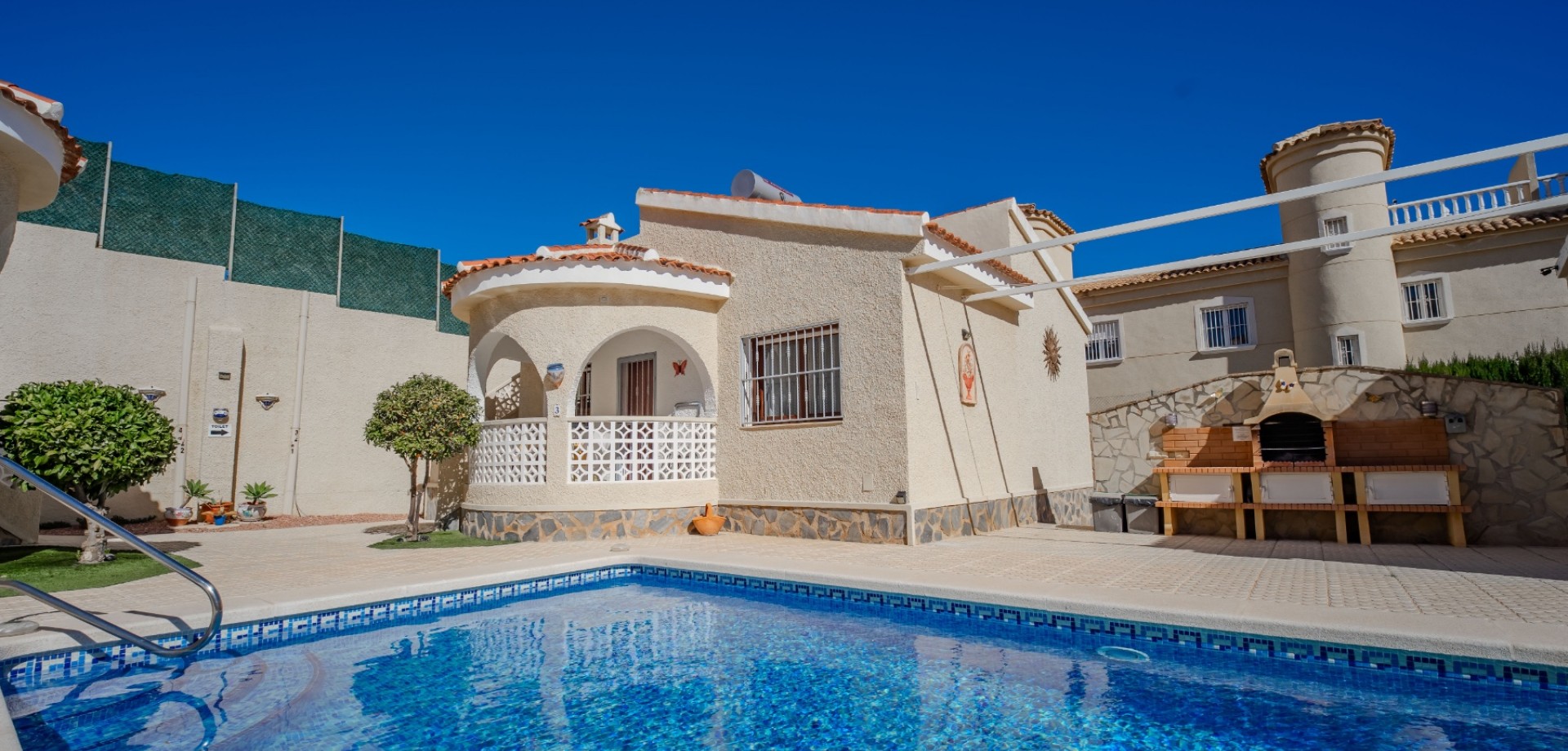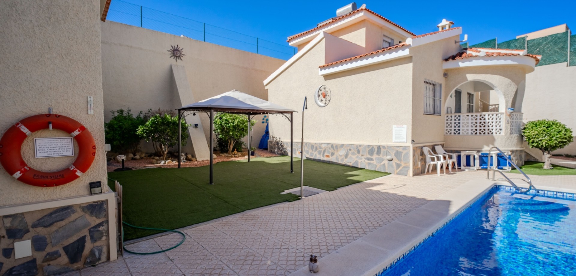 An exceptional opportunity to acquire a private complex of four detached villas set on a generous 846m² plot, arranged beautifully around a central private swimming pool. This unique property offers incredible flexibility — ideal for a boutique holiday rental business, wellness retreat, family compound, or long-term investment project. Property Breakdown: 2 x Villas – 2 Bedrooms / 2 Bathrooms2 x Villas – 3 Bedrooms / 3 BathroomsAll properties are independent with their own entrances and terracesSpacious central private swimming poolAttractive Mediterranean design with traditional tiled roofsSecure and private setting The layout creates a charming, community-style environment while maintaining privacy for each villa — perfect for holiday guests or extended families sharing space together. Investment & Lifestyle Potential: ✔ Strong potential for holiday rentals✔ Suitable for long-term lets✔ Ideal for a retreat business, B&B concept, or co-living project✔ Excellent option for investors looking for multiple income streams✔ Could be perfect for “restarts” or lifestyle relocation projects Location: Situated in a great location, close to local amenities, restaurants, golf courses and just a short drive to the beaches of the Costa Blanca. Properties of this nature — offering four independent villas within one private gated setting — are extremely rare to find. For further information or to arrange a viewing, please contact us. A truly versatile opportunity with exceptional income potential.