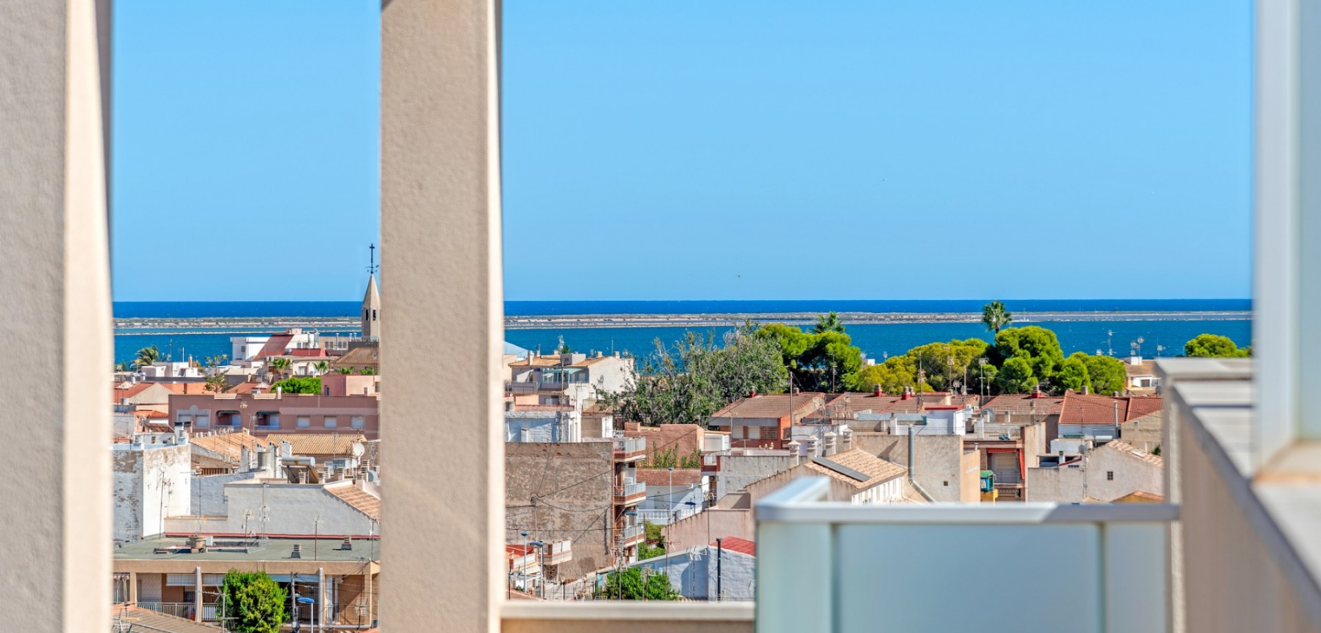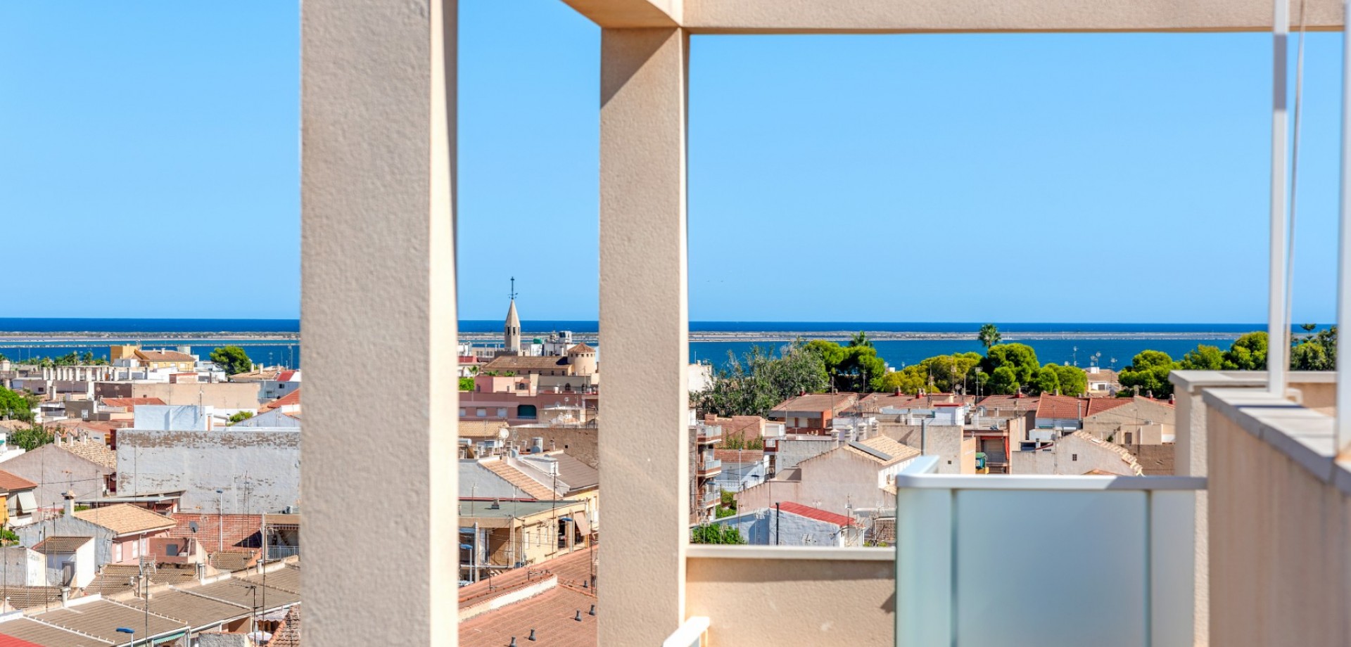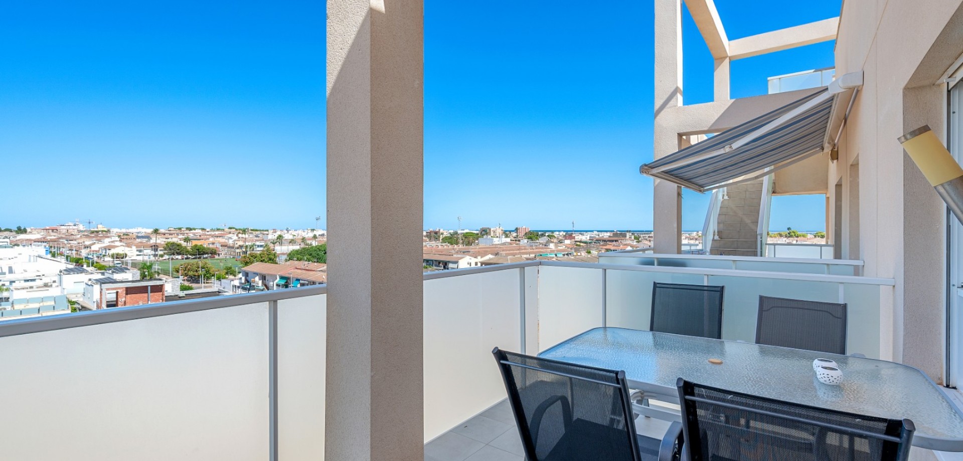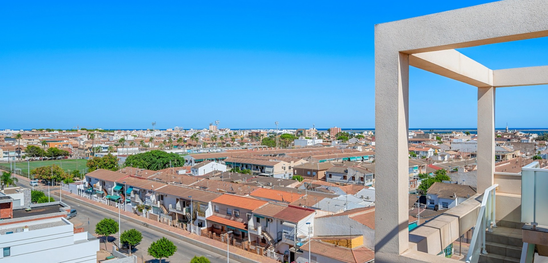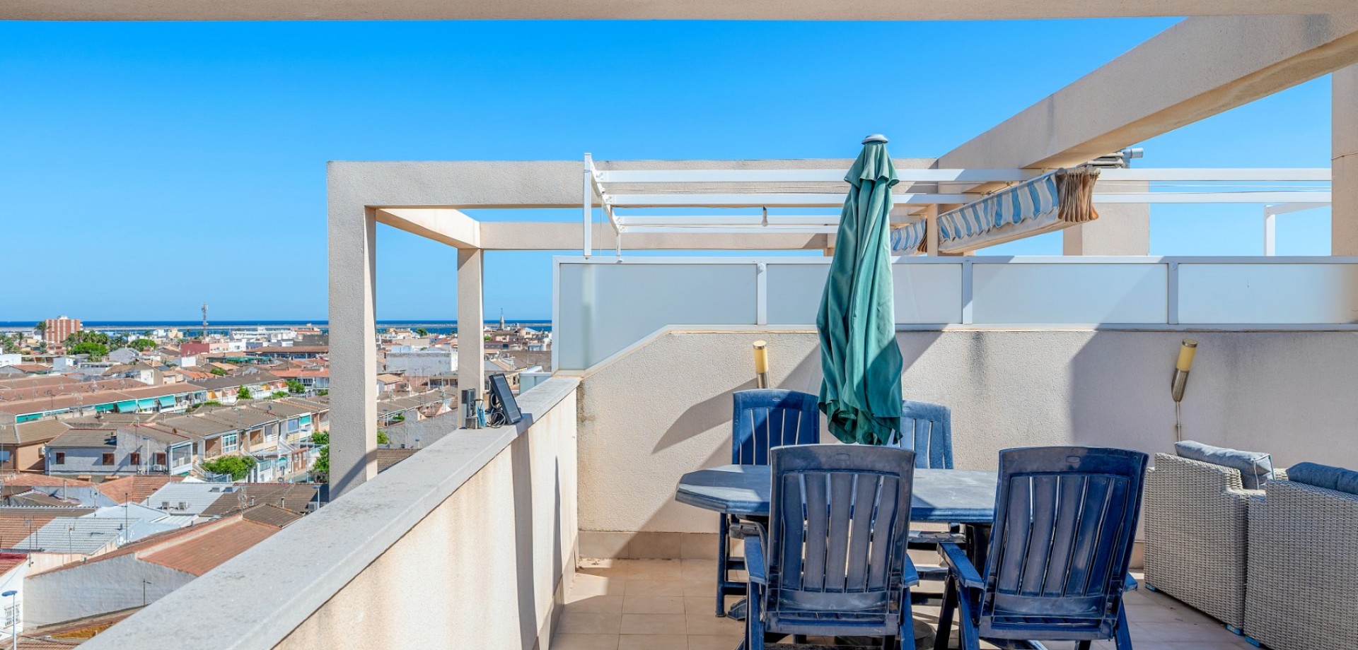 Spain1 proudly presents this spectacular penthouse apartment with wonderful mountain and seaviews, just 250 meters from the sea! This bright apartment has a modern open-plan kitchen, a spacious living-dining room, two spacious bedrooms with fitted wardrobes and two bathrooms. The apartment has a big roof terrace of 65 m2 where you can during the day enjoy the spanish sunshine, and also spend nice evenings with family and friends. In the apartment there is a ducted air conditioning system offering heating and cooling throughout the whole apartment. The apartment is sold fully furnished. There is a community pool for adults and also a childrens pool within the complex. A short walk from the apartment you find the beaches of Mar Menor and Lo Pagan. Here you also find a long promenade along the sea. Along this promenade you also find a lot of restaurants and bars. With excellent access to the AP-7 motorway and only 35 minutes to Murcia Airport and 50 minutes to Alicante Airport, this home is ideal for both year-round living and relaxing holidays. Don't miss the opportunity to live in a privileged area. Contact us today to book your viewing!
