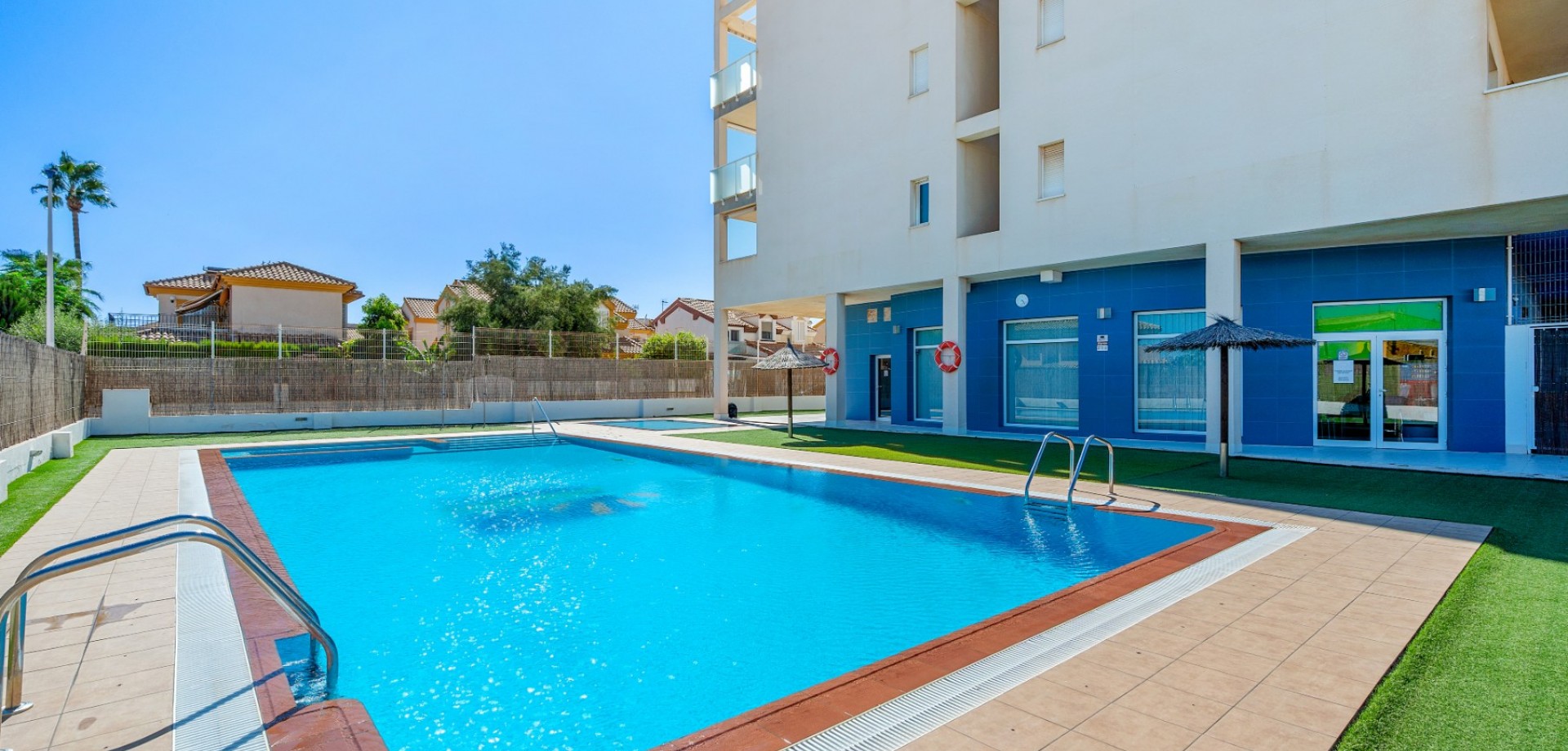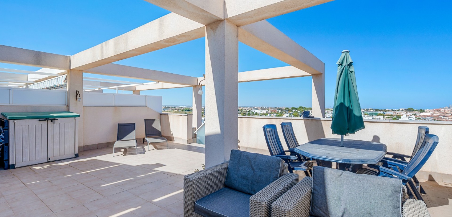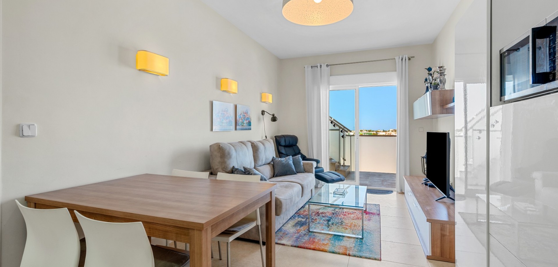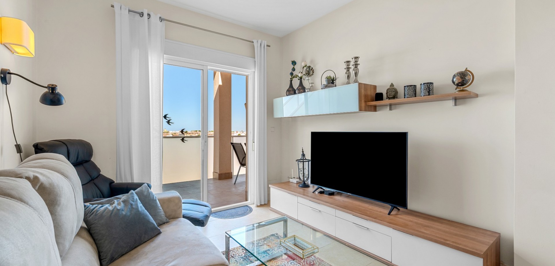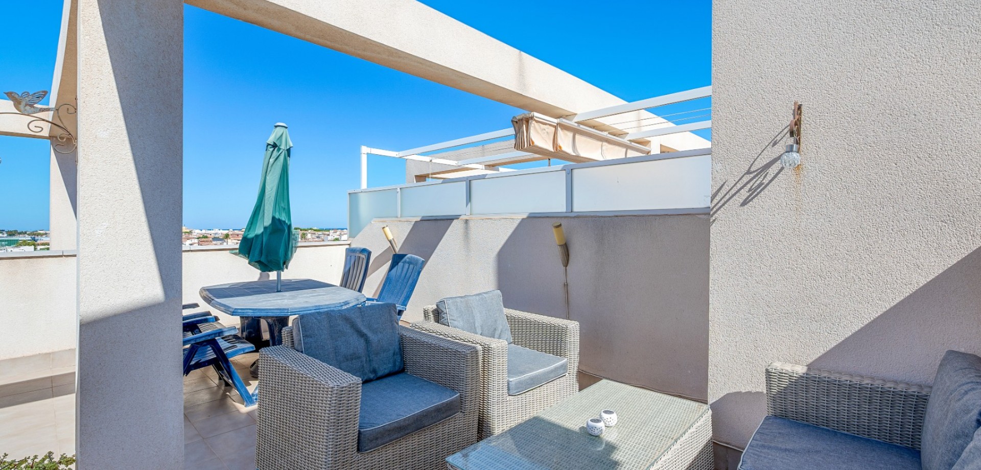 Spain1 proudly presents this spectacular penthouse apartment with wonderful mountain and seaviews, just 250 meters from the sea! This bright apartment has a modern open-plan kitchen, a spacious living-dining room, two spacious bedrooms with fitted wardrobes and two bathrooms. The apartment has a big roof terrace of 65 m2 where you can during the day enjoy the spanish sunshine, and also spend nice evenings with family and friends. In the apartment there is a ducted air conditioning system offering heating and cooling throughout the whole apartment. The apartment is sold fully furnished. There is a community pool for adults and also a childrens pool within the complex. A short walk from the apartment you find the beaches of Mar Menor and Lo Pagan. Here you also find a long promenade along the sea. Along this promenade you also find a lot of restaurants and bars. With excellent access to the AP-7 motorway and only 35 minutes to Murcia Airport and 50 minutes to Alicante Airport, this home is ideal for both year-round living and relaxing holidays. Don't miss the opportunity to live in a privileged area. Contact us today to book your viewing!