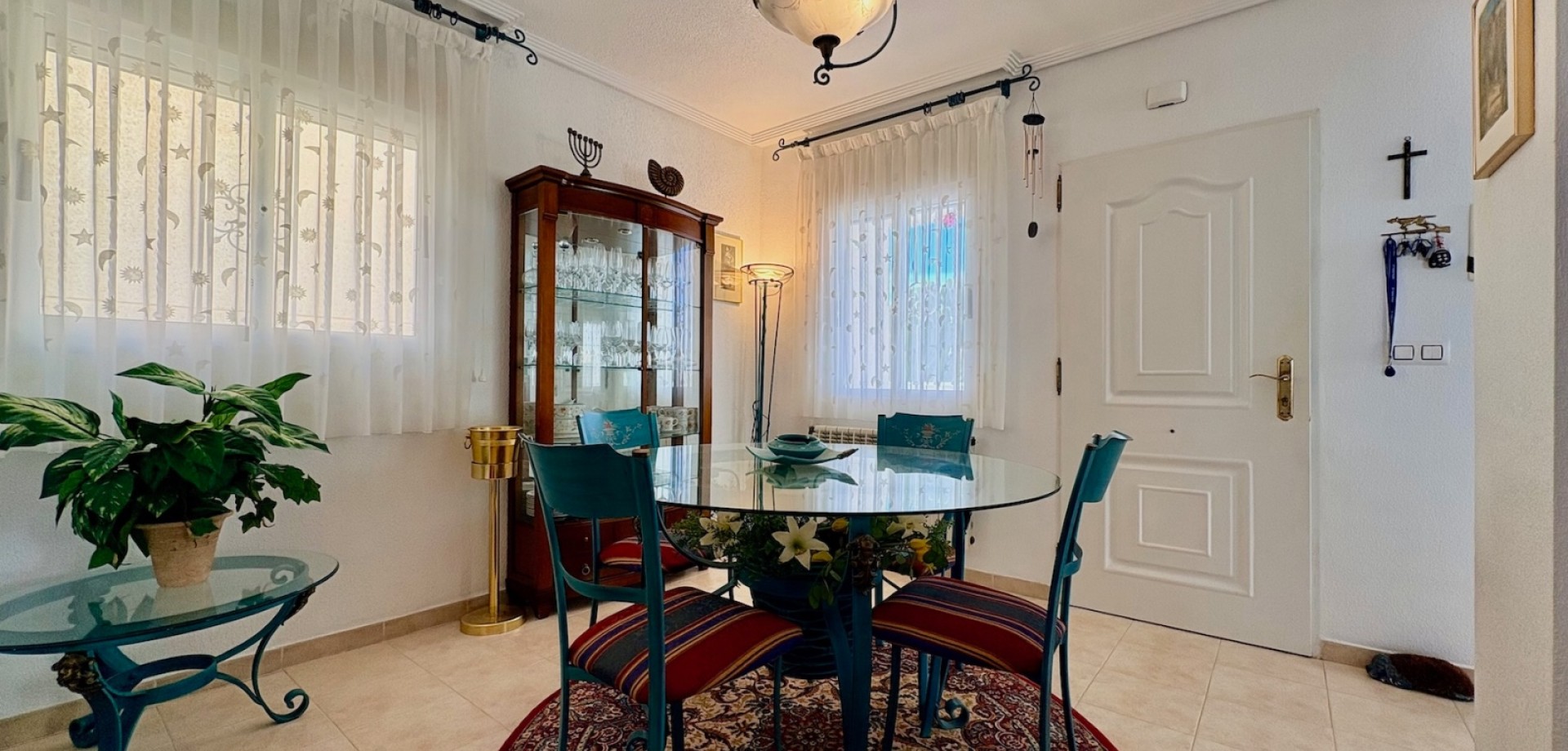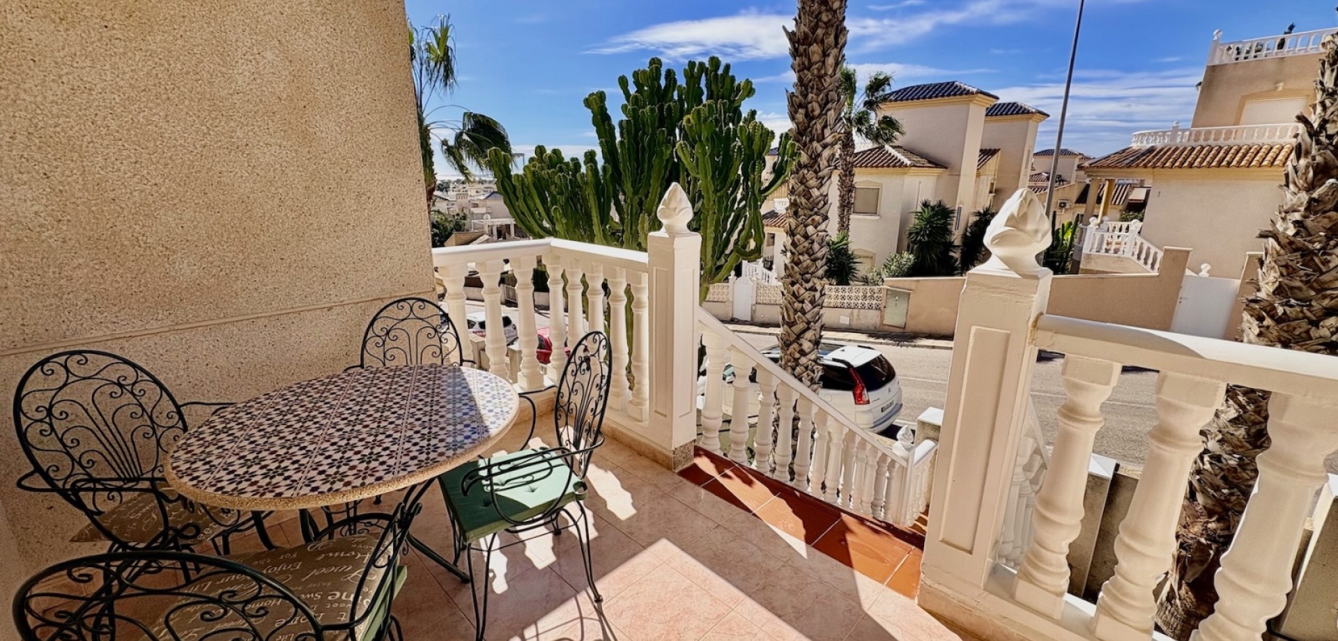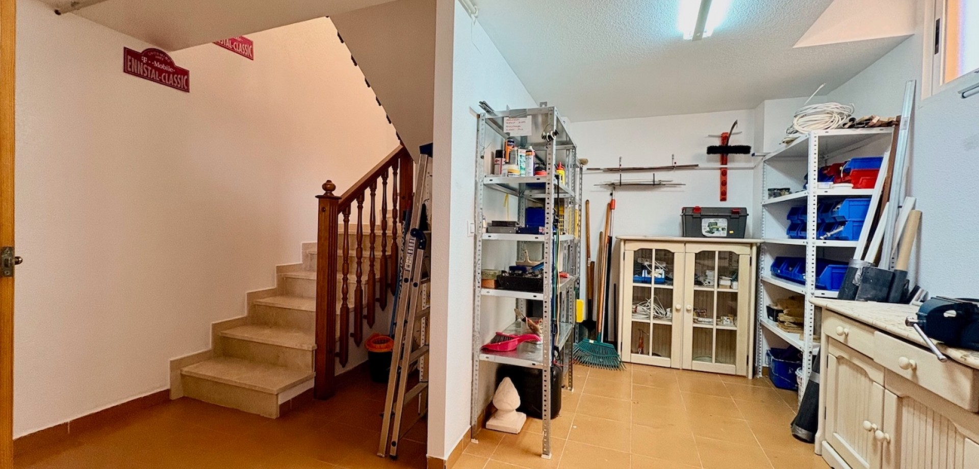 If you are looking for a property that combines technical spaciousness with the peace of waking up to Mediterranean views, this home on Calle Cuba (Orihuela-Costa) is for you. Set on a generous 198.86 m² plot, this house offers space, views, and privacy. Detailed Layout and Surface Areas: The property has a total built area of 161.87 m², excellently distributed over three levels: Basement (Maximum Functionality): A versatile space that includes a private garage with an automatic overhead door, an equipped workshop, and a practical storage room. Main Floor (67.30 m² footprint): This level hosts the social area with a bright living room and a separate kitchen. The kitchen connects to a private terrace with direct views of the Villamartín golf course. Upper Floor (Rest Area): Features two bedrooms and a full bathroom. From its upper terrace, you can enjoy a privileged panoramic view with the Mediterranean Sea on the horizon. Exteriors (Private Garden): The portion of the 198.86 m² plot not occupied by the building is dedicated to a private garden and exclusive-use areas, creating a private outdoor oasis for you and your family. A Privileged Environment in Orihuela-Costa Living in the Filipinas Sector, within the "Residencial Montegolf" complex, is synonymous with exclusivity: Dual Views: Enjoy the green tranquility of Villamartín Golf and the blue of the Mediterranean from your own terraces. Space and Comfort: With over 160 m² built, this home is significantly more spacious than the average townhouse in the area. Strategic Location: Minutes away from Zenia Boulevard, blue flag beaches, and the best services on the Costa Blanca. The property is located in Phase I, Type B of the residential complex, situated on plot 4-A of Sector O-1. A solid and spacious construction ready to become your new home. Would you like to visit? The dimensions and views are even more impressive in person. Contact us today to schedule your viewing!