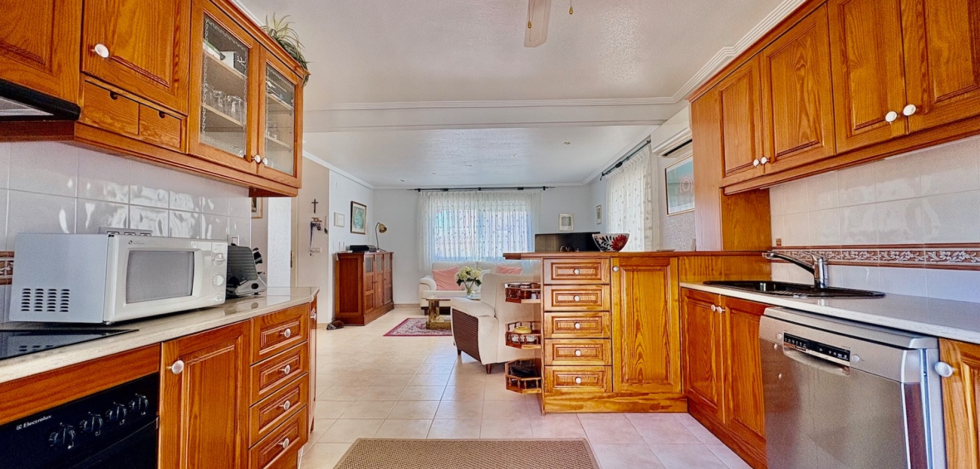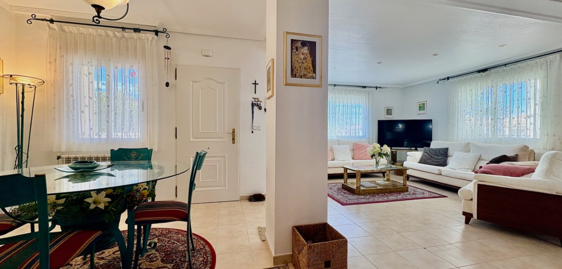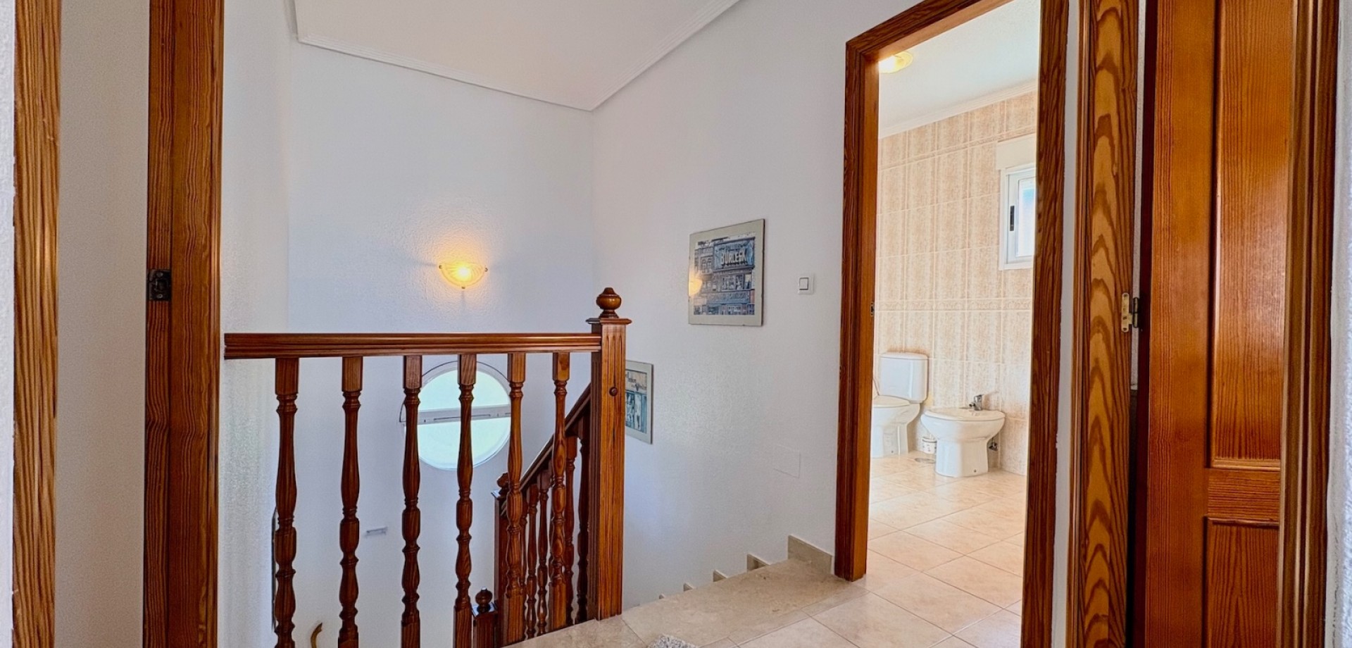 If you are looking for a property that combines technical spaciousness with the peace of waking up to Mediterranean views, this home on Calle Cuba (Orihuela-Costa) is for you. Set on a generous 198.86 m² plot, this house offers space, views, and privacy. Detailed Layout and Surface Areas: The property has a total built area of 161.87 m², excellently distributed over three levels: Basement (Maximum Functionality): A versatile space that includes a private garage with an automatic overhead door, an equipped workshop, and a practical storage room. Main Floor (67.30 m² footprint): This level hosts the social area with a bright living room and a separate kitchen. The kitchen connects to a private terrace with direct views of the Villamartín golf course. Upper Floor (Rest Area): Features two bedrooms and a full bathroom. From its upper terrace, you can enjoy a privileged panoramic view with the Mediterranean Sea on the horizon. Exteriors (Private Garden): The portion of the 198.86 m² plot not occupied by the building is dedicated to a private garden and exclusive-use areas, creating a private outdoor oasis for you and your family. A Privileged Environment in Orihuela-Costa Living in the Filipinas Sector, within the "Residencial Montegolf" complex, is synonymous with exclusivity: Dual Views: Enjoy the green tranquility of Villamartín Golf and the blue of the Mediterranean from your own terraces. Space and Comfort: With over 160 m² built, this home is significantly more spacious than the average townhouse in the area. Strategic Location: Minutes away from Zenia Boulevard, blue flag beaches, and the best services on the Costa Blanca. The property is located in Phase I, Type B of the residential complex, situated on plot 4-A of Sector O-1. A solid and spacious construction ready to become your new home. Would you like to visit? The dimensions and views are even more impressive in person. Contact us today to schedule your viewing!