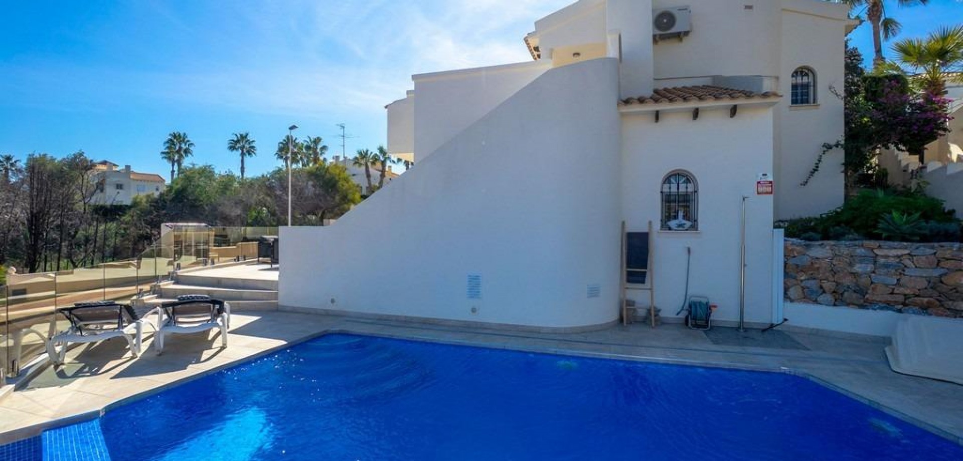 Discover this exclusive detached villa with an infinity pool, located in the prestigious Las Ramblas Golf area. This spectacular property is perfect for those seeking a home that combines luxury and tranquility. With its four spacious bedrooms and three bathrooms, every corner has been designed with comfort and functionality in mind. The large kitchen flows seamlessly into the dining and living areas, offering unobstructed sea views—perfect for creating unforgettable moments with loved ones. The exterior will surprise you with a stunning private infinity pool surrounded by lush greenery; ideal for relaxing while taking in the beautiful natural landscapes. It also boasts two large terraces: a charming ground-floor terrace perfect for family gatherings or simply sunbathing, and a spacious south-facing terrace on the first floor, specially designed to maximize sunlight year-round. And let's not forget your own barbecue! Sold fully furnished, ready to move in, or as an investment.