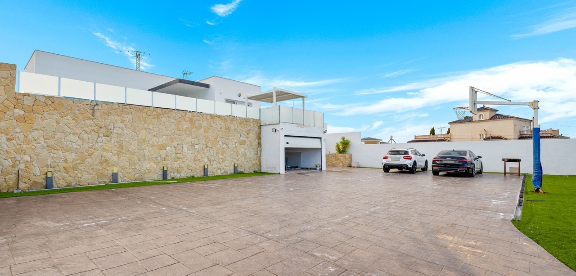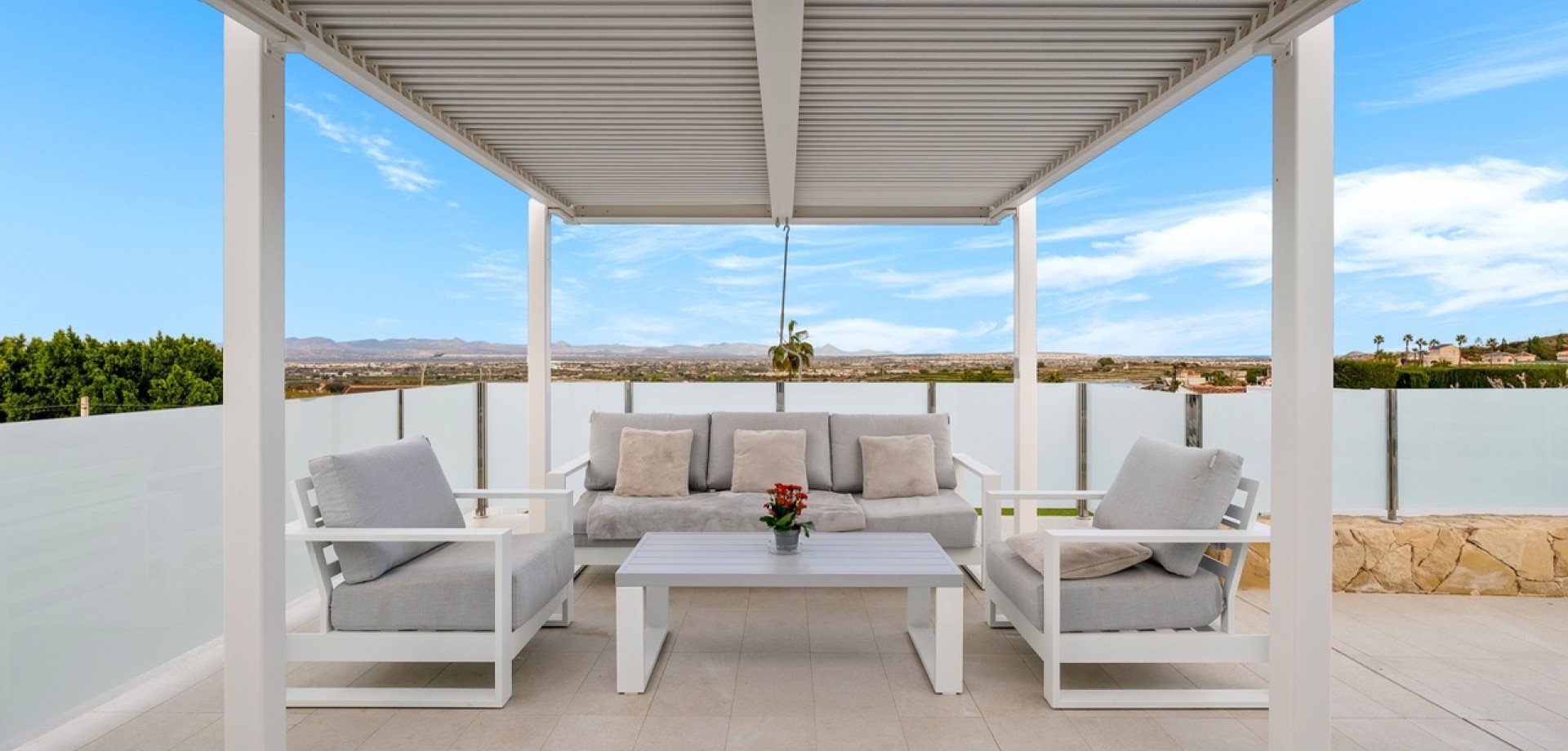 Modern Detached Villa in Lomas De Juliana, Algorfa - Almoradi Discover the perfect blend of luxury and comfort in this fantastic modern 4-bedroom, 3-bathroom detached villa located in the prestigious residential area of Lomas De Juliana. Just a stone's throw away from the luxurious 5-star La Finca Golf Resort, this property offers an enviable lifestyle in one of the most sought-after locations, often referred to as the Beverly Hills of the Vega Baja.Constructed in 2019, this villa sits on a substantial yet manageable plot of 1634 sqm, providing ample outdoor living space. Enjoy sun-soaked days by the private swimming pool or entertain guests in the outdoor dining area. The spacious driveway leads you to a generously sized lounge and a larger than average fully fitted kitchen, perfect for culinary enthusiasts. With living and sleeping areas all on one level, convenience is at your fingertips.The current owner has also updated the property wih the latest technology and so it is a Smart Home that be controlled a the touch of the button from your mobile phone.The villa features a large master bedroom with a dressing area and en-suite bathroom, along with two additional guest bedrooms served by a family bathroom. A separate utility room and storage space add to the practicality of this home. Step outside to a spacious sun terrace that boasts stunning views over the Vega Baja, or fire up the large outdoor kitchen and barbeque area for unforgettable gatherings.Situated within walking distance of the local tennis club and just a quick drive to Algorfa village, this property combines tranquility with accessibility. Plus, the beautiful coastline is only 20 minutes away, making it an ideal retreat for sun-seekers and golf lovers alike. Don’t miss out on this incredible opportunity to own a piece of paradise!