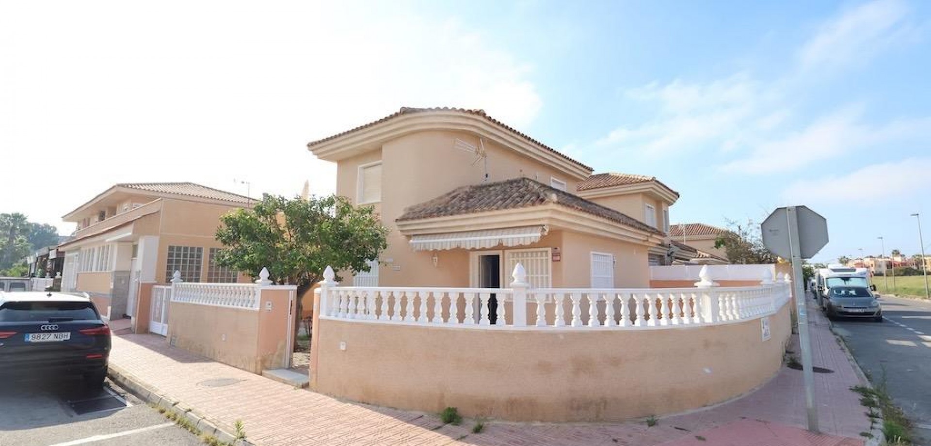 Stunning Corner Villa with Private Pool in Los Altos. Located on a 400 m2 corner plot facing two streets, this independent villa offers privacy, a beautiful garden, a private swimming pool, and off-road parking.. The property features 100 m2 of living space distributed over two floors:. Ground Floor: A spacious and bright living-dining area, an independent kitchen, one bedroom, and a full bathroom.. First Floor: Two additional bedrooms, a second bathroom, and a lovely terrace perfect for soaking up the sun.. The villa is being sold fully furnished and equipped, making it ready to move into immediately.