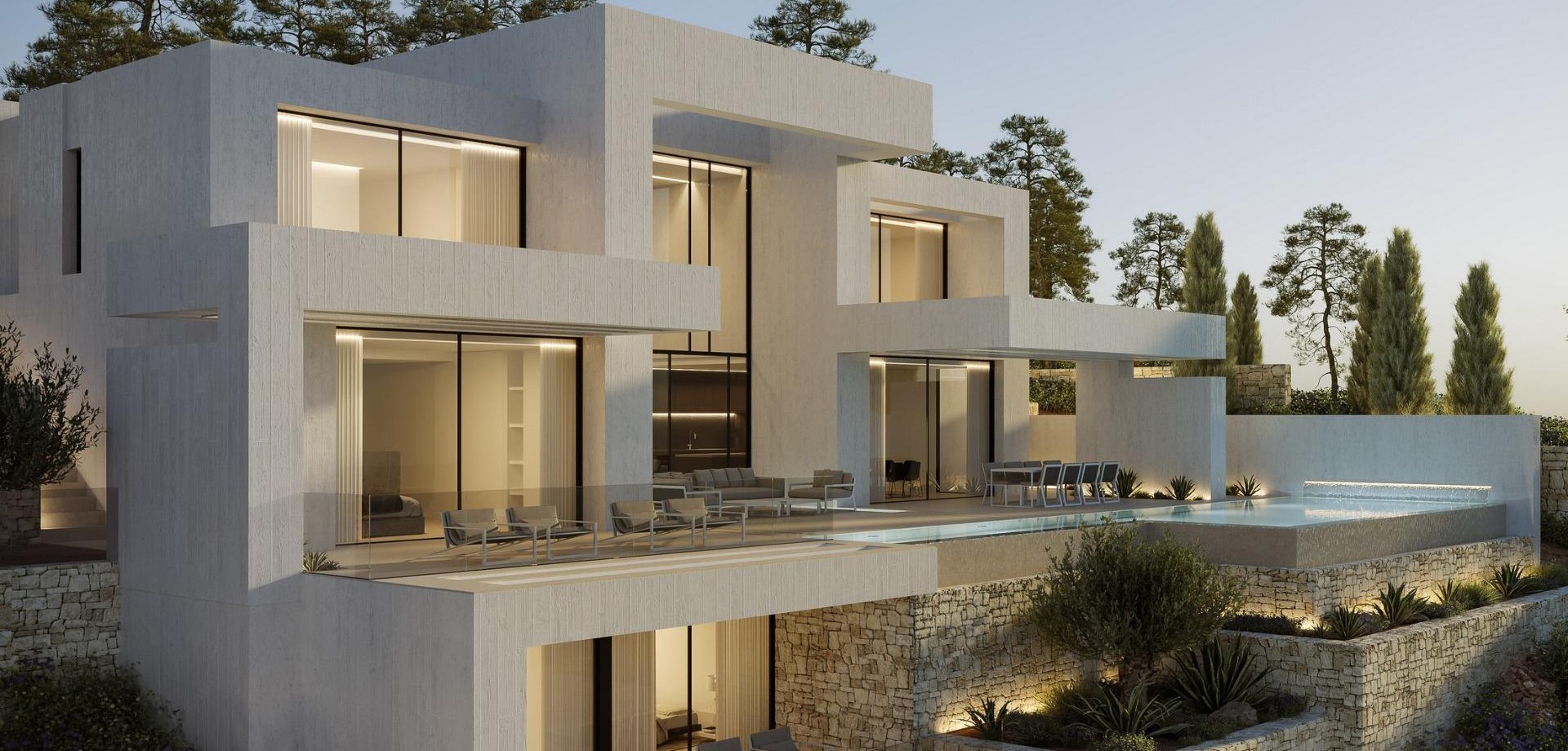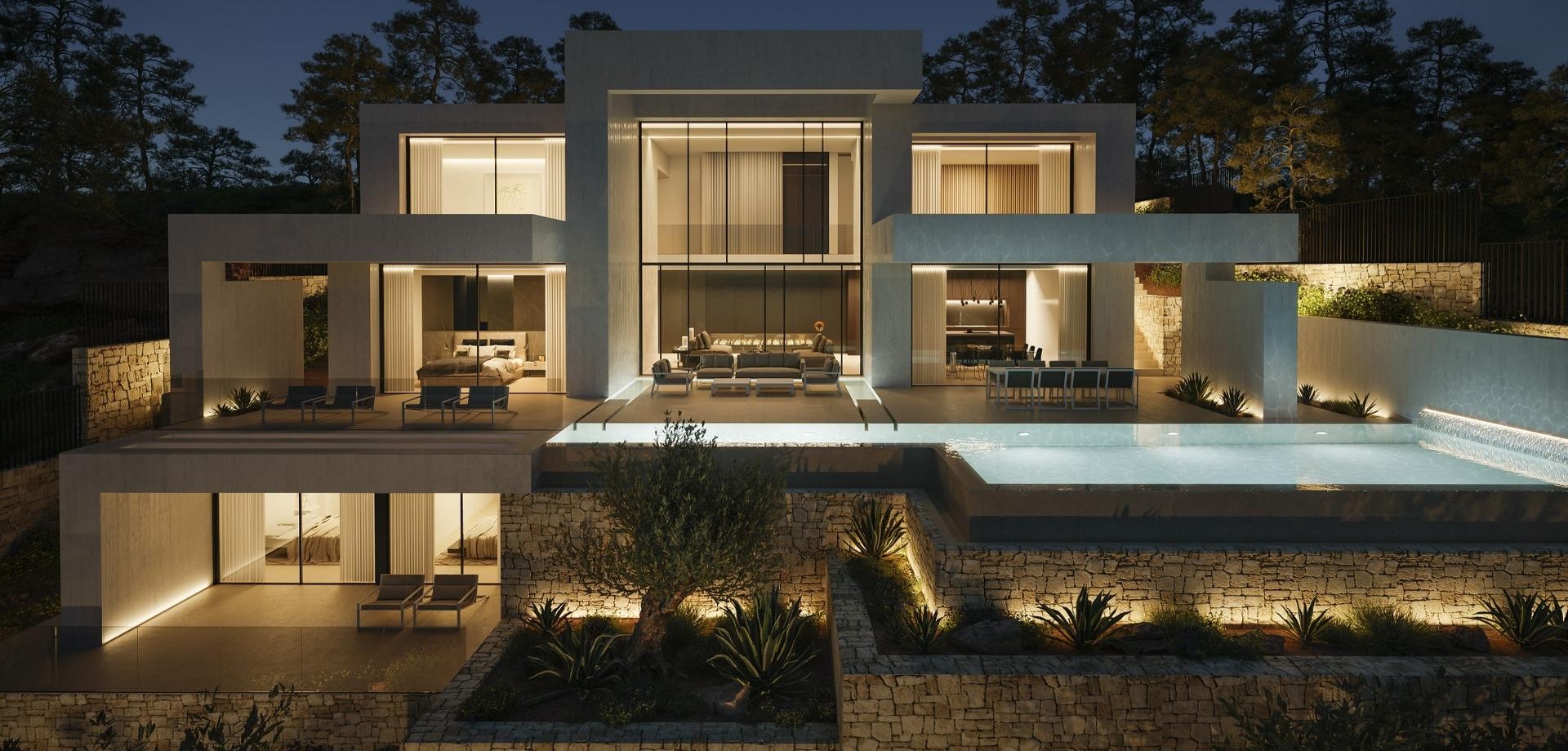 Luxury New Build Villa with Sea Views Near Granadella Beach in Javea Exclusive Villa in the Prestigious Granadella Area of Javea Discover an exceptional luxury villa currently under construction in the highly sought after Granadella area of Javea on the northern Costa Blanca. Located within a peaceful natural environment next to the protected forest park and just a short distance from the famous Cala Granadella, this property offers a rare combination of privacy, spectacular sea views and proximity to one of the most beautiful coves in Spain. Javea is renowned for its stunning coastline, charming old town and excellent year round climate. The town offers a vibrant lifestyle with international restaurants, marinas, golf courses and a wide range of outdoor activities. Its mix of Mediterranean charm and modern services makes it one of the most desirable destinations on the Costa Blanca for both permanent residence and luxury holiday homes. Modern Architecture with Spacious Living Areas This elegant designer villa is set on a generous plot of 925 m2 and offers an impressive built area of approximately 677 m2 distributed across three levels. The contemporary architecture blends seamlessly with the surrounding natural landscape while maximizing natural light and panoramic views. The property includes four spacious bedrooms, five bathrooms and one guest toilet. Large open plan living areas connect effortlessly with the outdoor terraces, creating a bright and comfortable living environment designed for modern Mediterranean living. The villa also includes a private office, a fully equipped gym, storage rooms and covered parking for two vehicles. An elevator connects the different levels of the home for maximum convenience and accessibility. Panoramic Sea Views and Outdoor Living One of the most impressive features of the property is its outdoor space. The villa offers approximately 140 m2 of open terraces that provide spectacular views of the Mediterranean Sea and the surrounding mountains. The infinity swimming pool overlooks the coastline and the nearby Granadella beach, creating a unique setting to relax and enjoy the natural beauty of the area. The landscaped garden with trees and an automatic irrigation system further enhances the peaceful atmosphere of the property. Premium Finishes and Smart Home Technology The villa is built with high quality materials and the latest construction technologies to ensure comfort, security and energy efficiency. Infinity swimming pool with sea views Elevator connecting all levels Designer kitchen equipped with NEFF appliances Underfloor heating throughout the property Ducted air conditioning system with independent AIRZONE thermostats NIESSEN Free Home domotic system for lighting and blinds control Motorized blinds throughout the villa Video intercom and pre installation for alarm system Landscaped garden with irrigation system These features provide a modern, comfortable and secure environment designed for luxury living. Prime Location Close to Beaches and Amenities Cala Granadella 0.3 km Arenal Beach 7 km La Sella Golf 18 km Denia 20 km Alicante Elche Airport 100 km Valencia Airport 120 km Secure Your Luxury Villa in Javea This exceptional villa offers contemporary design, breathtaking sea views and a prime location near one of the most beautiful beaches on the Costa Blanca. Contact us today to receive more information or arrange a private viewing and discover your future luxury home in Javea. 466