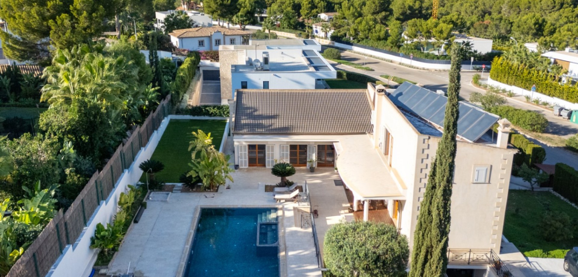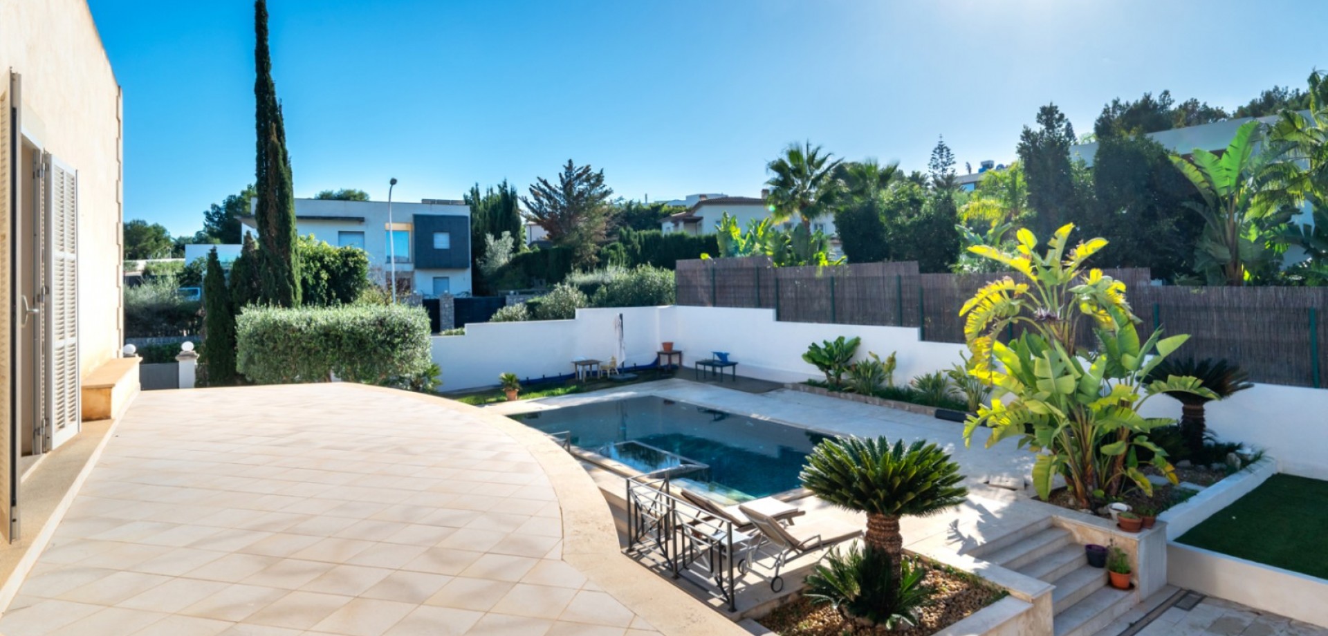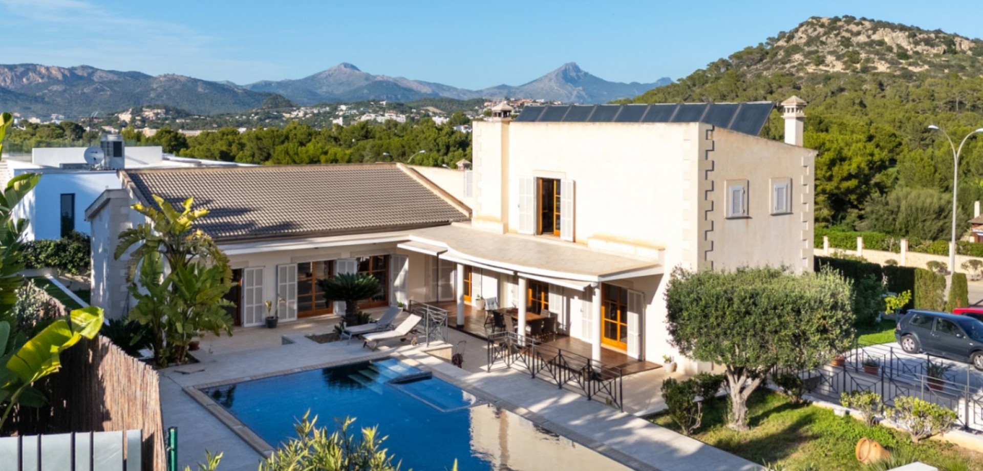 This spacious home features 5 bedrooms and 3 bathrooms, offering breathtaking mountain views from every level. The property is fully accessible and includes a private garage for convenience and security. Inside, the home features an elegant en-suite bathroom, a spacious walk-in closet, and a modern kitchen with a stylish center island — perfect for both everyday living and entertaining. Enjoy year-round comfort with central air conditioning and eco-friendly geothermal heating. Outdoor living is just as impressive, with a beautifully landscaped private garden, a refreshing private pool, and multiple terraces that capture stunning garden, mountain, and panoramic views. Embracing a classic Spanish/Mediterranean style, the villa offers a serene mountain lifestyle while providing every modern comfort. Disclaimer: Certain information contained herein is derived from information provided by owners / collaborators. All information provided is deemed reliable, but is not guaranteed to be accurate and should be independently verified.