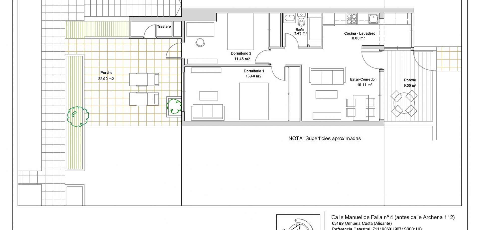 One of the standout features of this property is its exceptional outdoor space. At the front, you will find a private covered porch with awning, perfect for relaxing in the shade, while at the rear there is a large private terrace, ideal for outdoor dining, entertaining, or enjoying the Mediterranean lifestyle all year round. The property also includes a practical exterior storage cupboard.