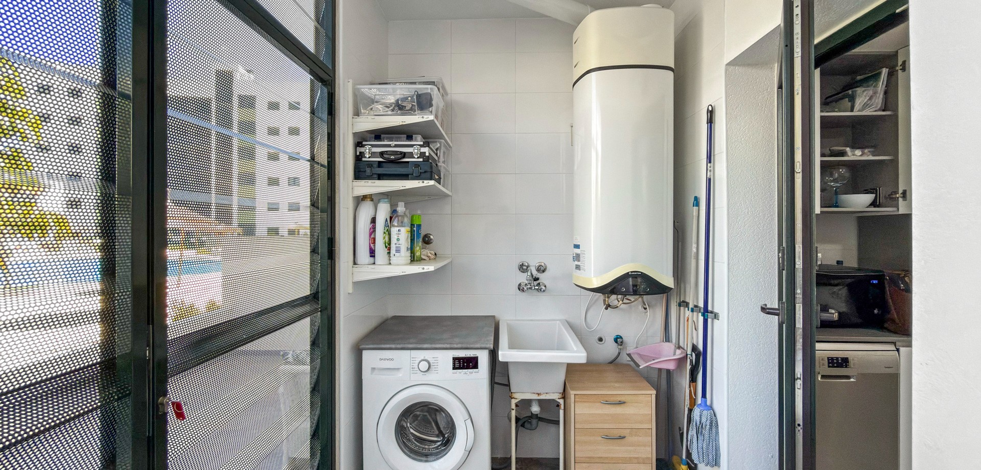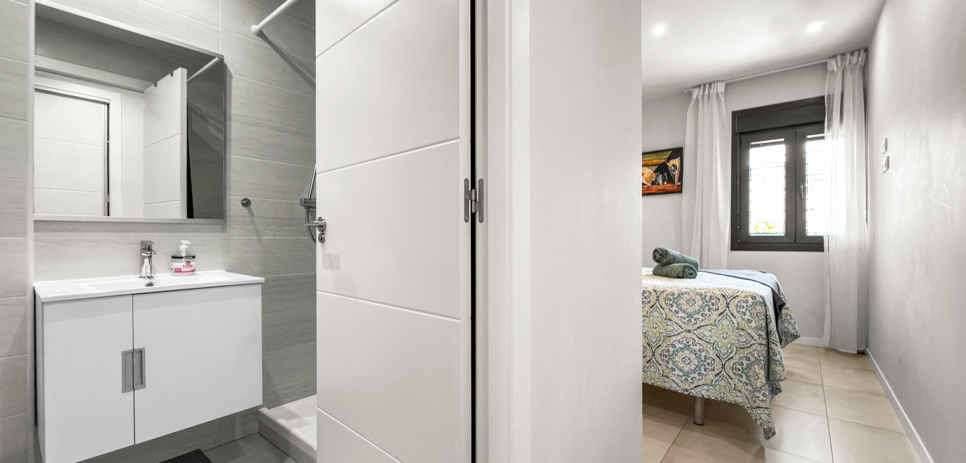 One of the standout features of this apartment is its two terraces in different orientations. The south-facing terrace is ideal for enjoying the sun throughout the day, whether you’re having your morning coffee or relaxing in the afternoon. The second terrace overlooks the communal pool, offering a calm and inviting setting — perfect for unwinding or entertaining guests.