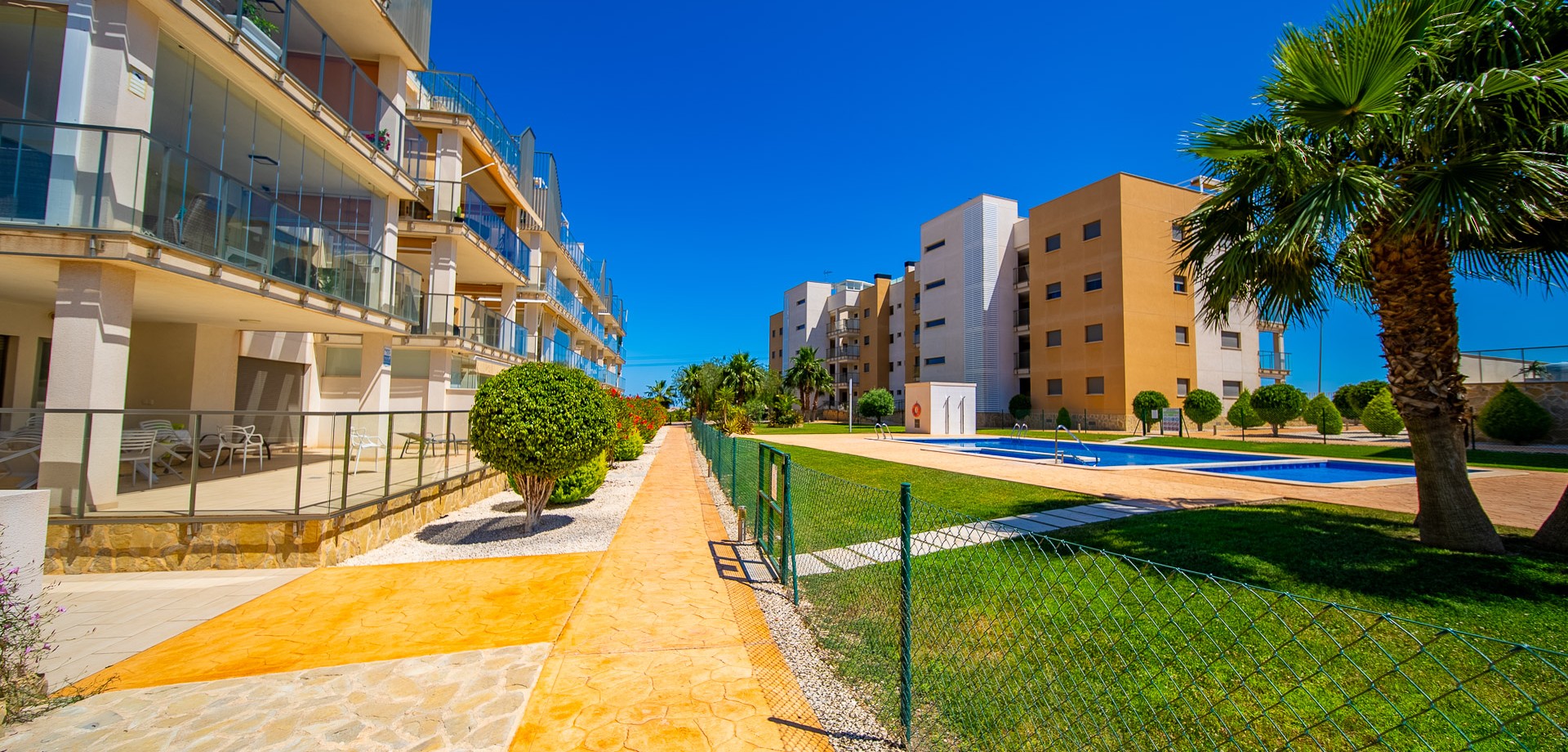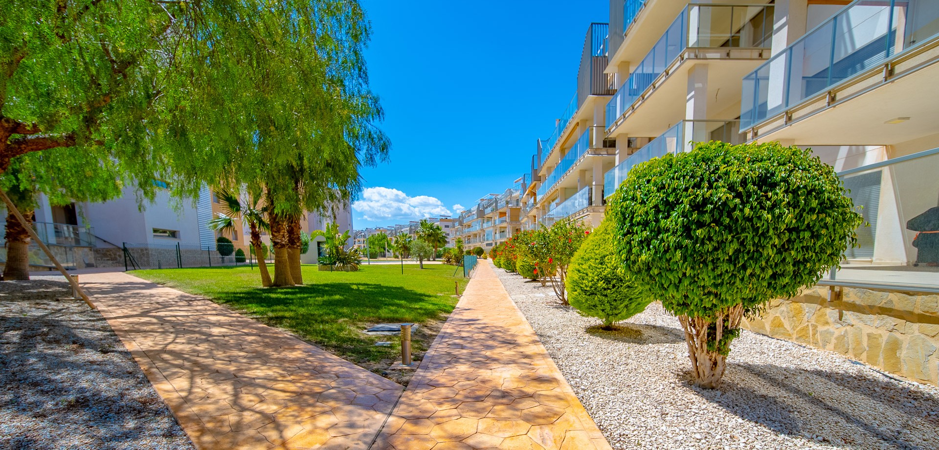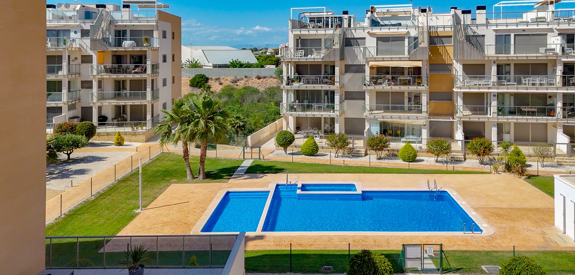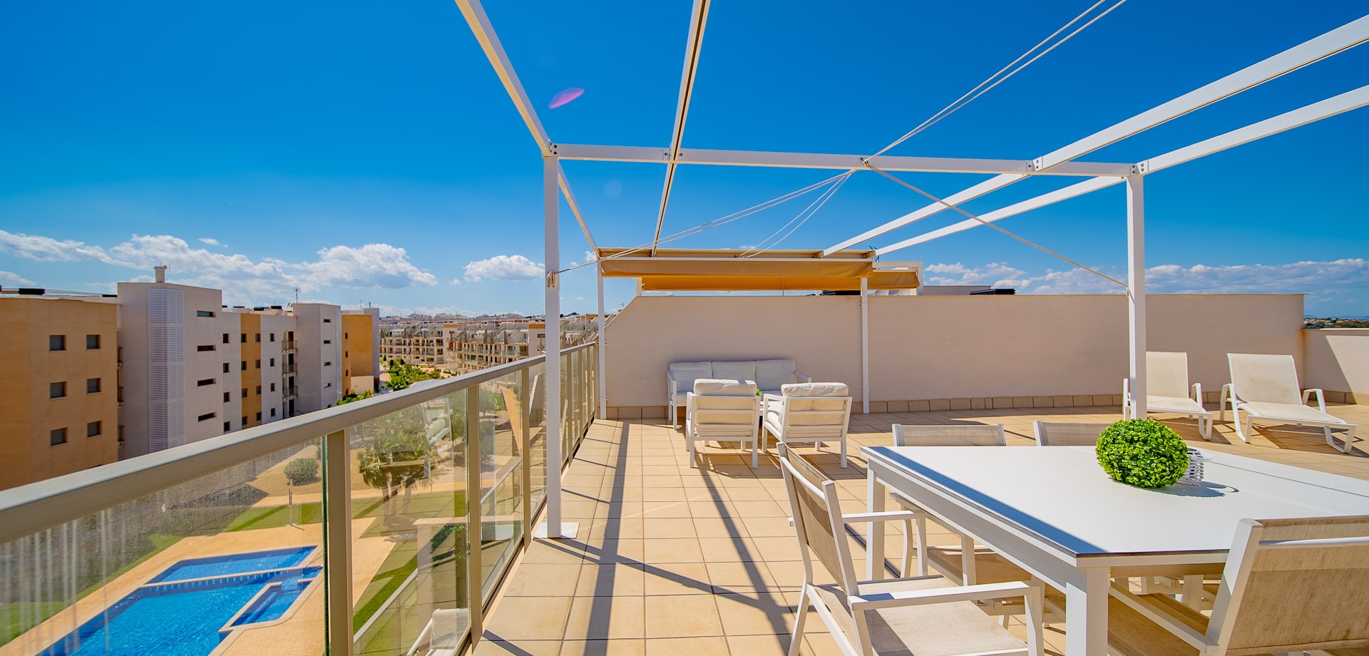 3-Bedroom Penthouse in Villamartin, Orihuela Costa. We present this fantastic penthouse located in Villamartin Gardens, a private residential complex with a communal pool. Its location is ideal, in an area that has everything: Shops, supermarkets, and just minutes from Zenia Boulevard shopping centre and Villamartin Golf. Wide variety of restaurants, bars, cafés, and a nearby pharmacy. Orihuela Costa beaches just 5 minutes away by car. Key features: 3 bedrooms and 2 bathrooms (one en-suite) Underfloor heating in bathrooms Spacious living-dining room Kitchen with breakfast bar Utility room 22 m² terrace South facing Private solarium of 85 m² Underground parking Storage room 2 communal pools The property is sold furnished and with quality appliances. It includes high-end finishes. Used as a second residence, so its condition is excellent. Annual costs: IBI (property tax): €210 Community fees: €1200