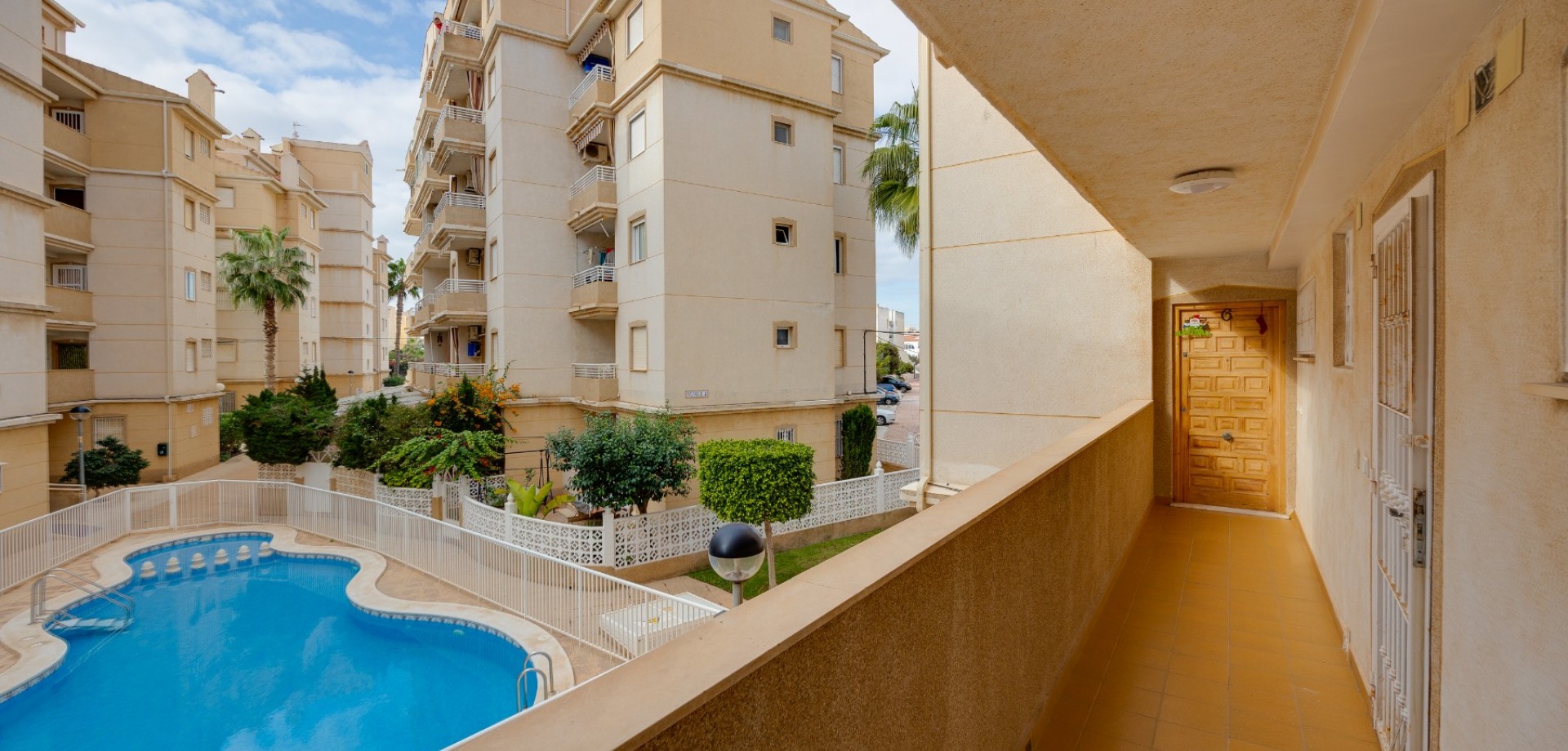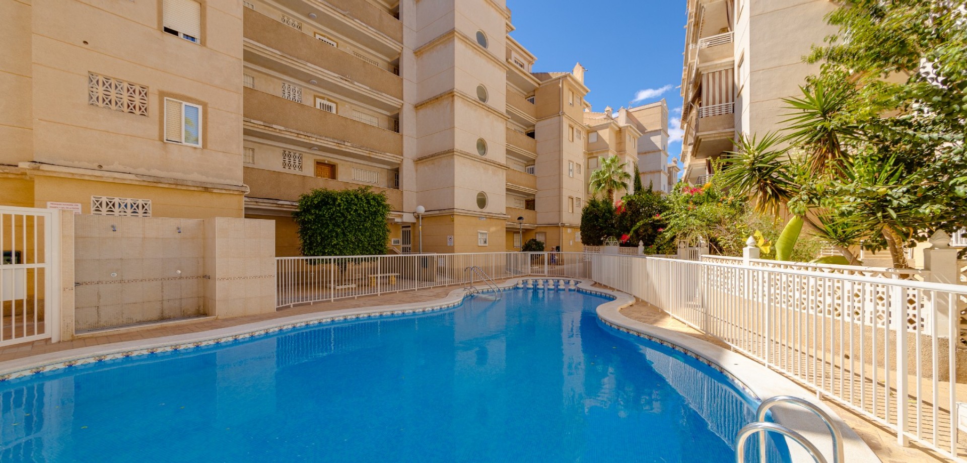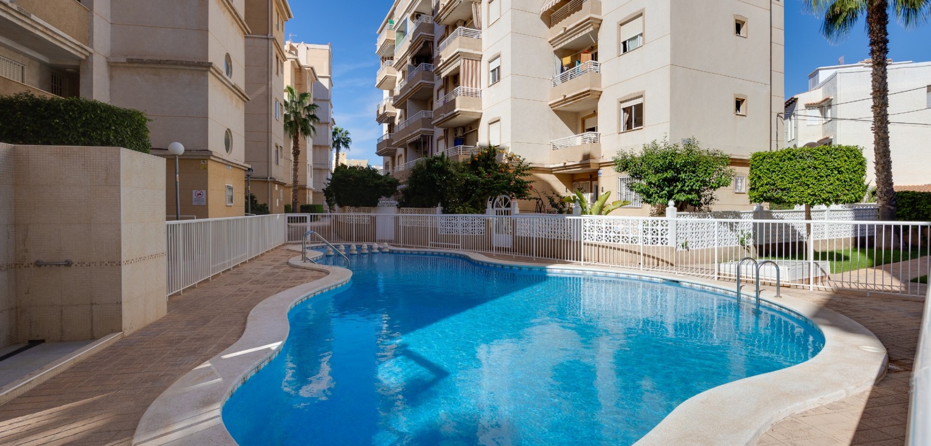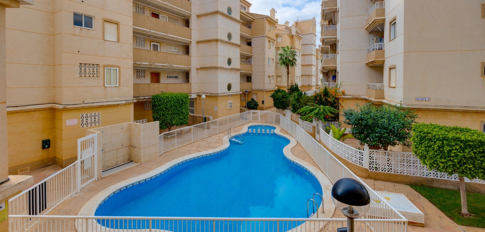 Welcome to this well-maintained resale apartment with an attractive location in popular Torrevieja. The apartment is located only approx. 400 meters from the famous Playa del Cura beach and is within walking distance to shops, restaurants, cafes and all necessary amenities. The apartment is located on the second floor and has a living area of approx. 55 m². It contains 2 bedrooms, 1 bathroom, as well as a pleasant terrace that is perfect for relaxing in the sun. Private parking is included in the price, which is a big advantage in the area. The condominium offers a communal swimming pool, ideal for hot summer days. This is a great property both as a holiday apartment, year-round home or investment. Briefly summarized: Torrevieja 400 m to Playa del Cura 2 bedrooms, 1 bathroom Approx. 55 m² Terrace Private parking included Shared pool Walking distance to all amenities A very attractive apartment with a central location - contact us for a viewing!