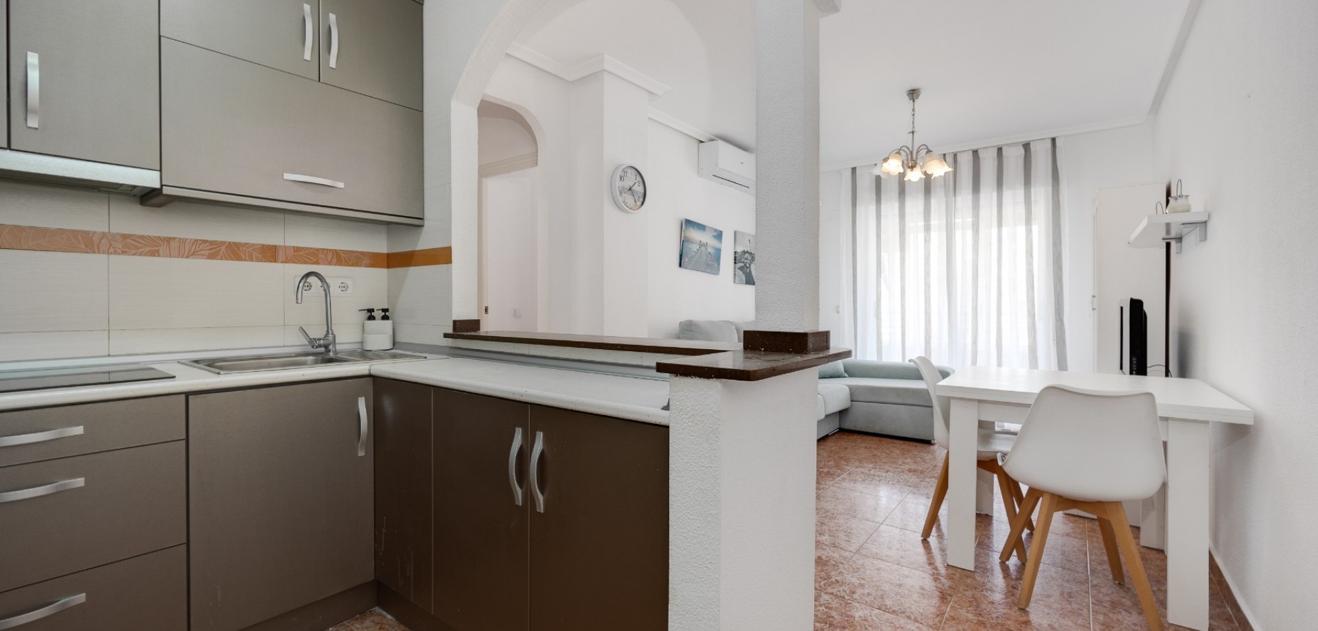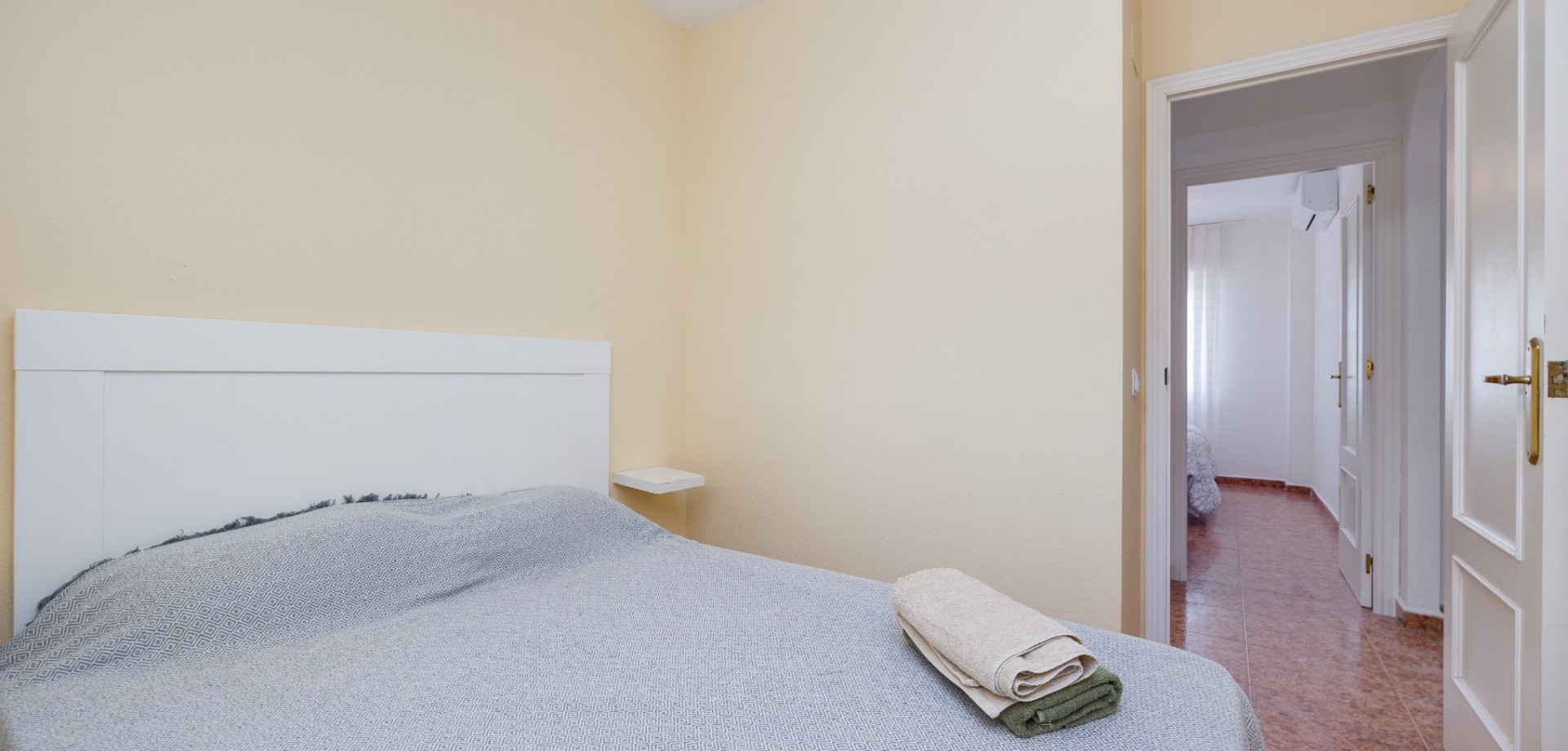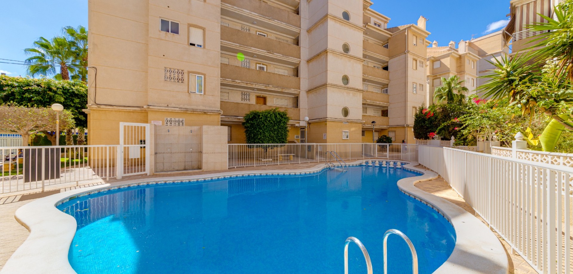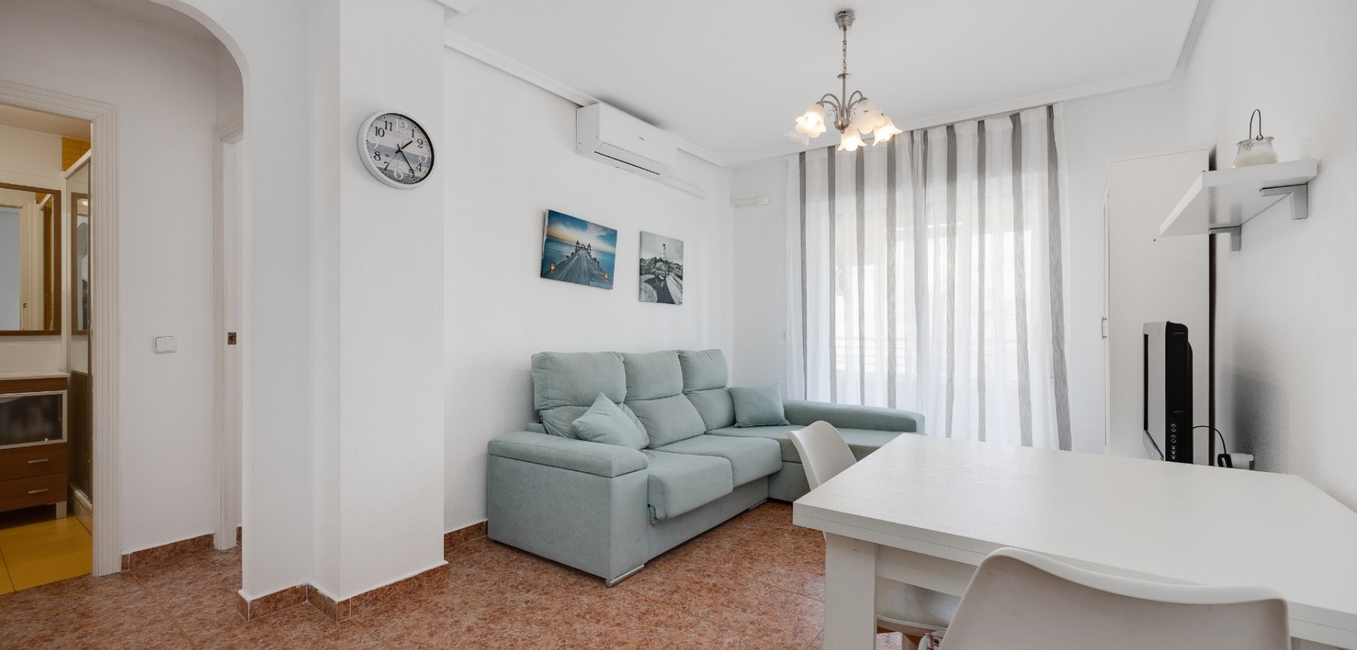 Welcome to this well-maintained resale apartment with an attractive location in popular Torrevieja. The apartment is located only approx. 400 meters from the famous Playa del Cura beach and is within walking distance to shops, restaurants, cafes and all necessary amenities. The apartment is located on the second floor and has a living area of approx. 55 m². It contains 2 bedrooms, 1 bathroom, as well as a pleasant terrace that is perfect for relaxing in the sun. Private parking is included in the price, which is a big advantage in the area. The condominium offers a communal swimming pool, ideal for hot summer days. This is a great property both as a holiday apartment, year-round home or investment. Briefly summarized: Torrevieja 400 m to Playa del Cura 2 bedrooms, 1 bathroom Approx. 55 m² Terrace Private parking included Shared pool Walking distance to all amenities A very attractive apartment with a central location - contact us for a viewing!