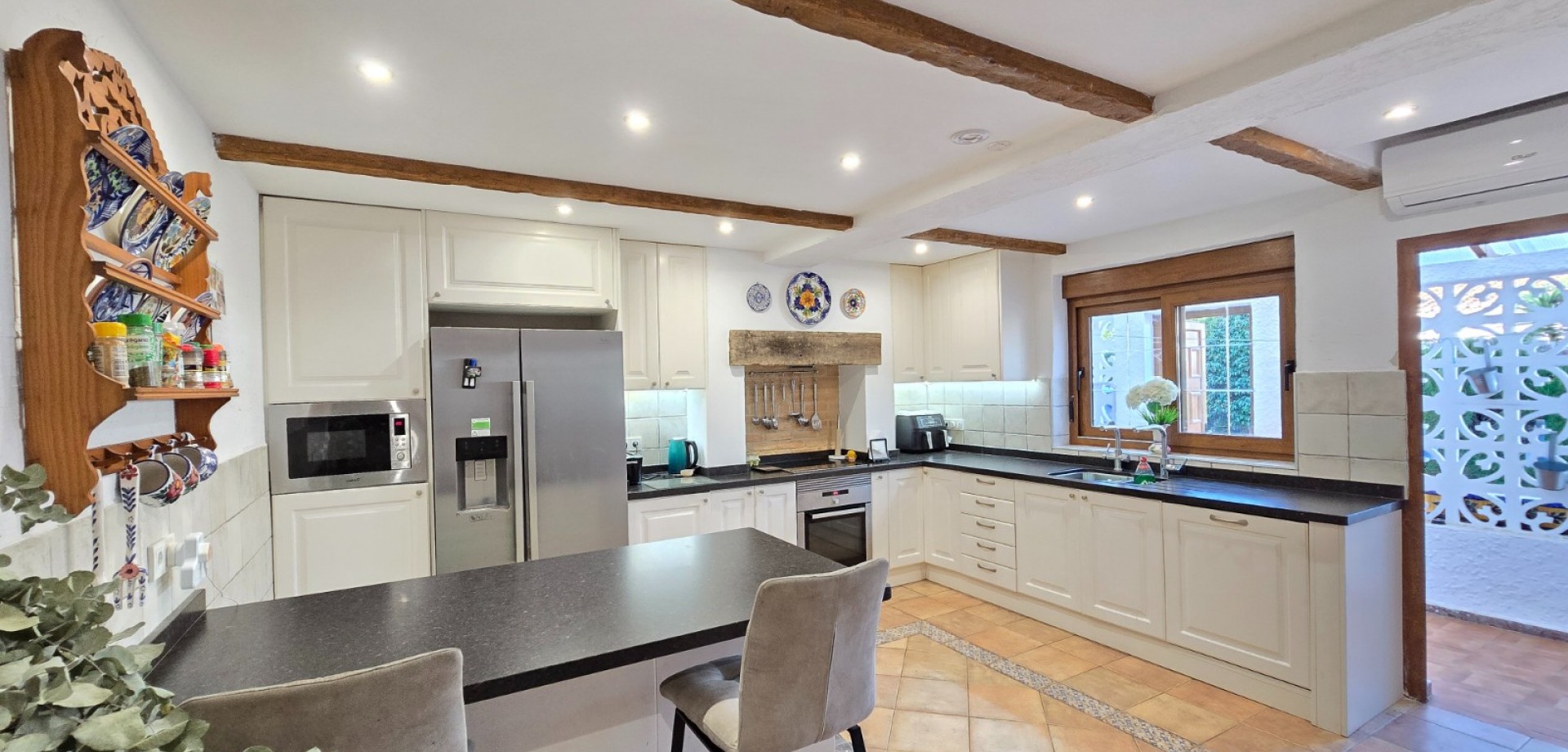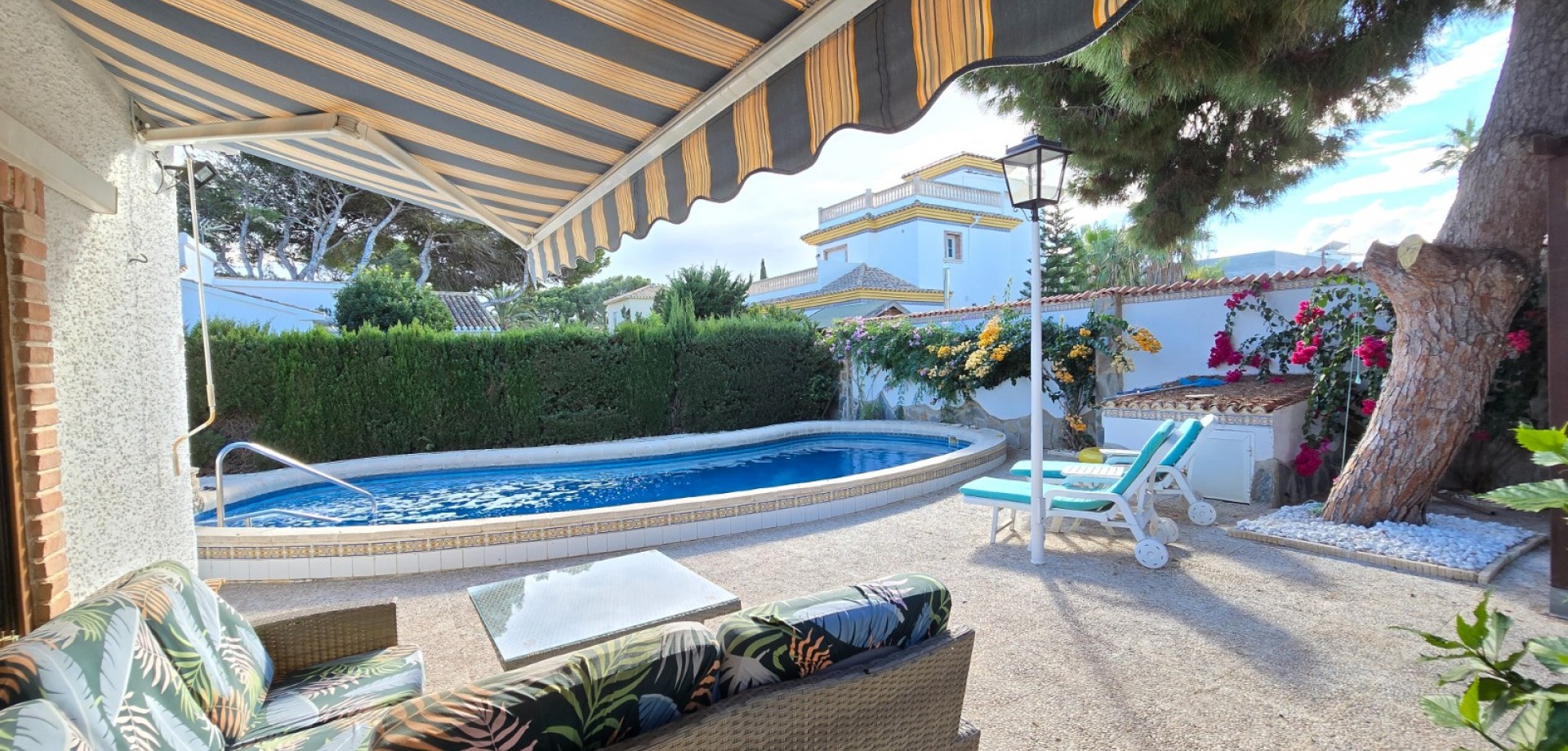 Discover this large detached villa on a spacious plot, located just 500 metres from the beach in the sought-after villa district of Cabo Roig (Orihuela Costa). This beautiful Spanish-style property combines charm, space and modern comfort in a prime location. The villa has five spacious bedrooms and three fully equipped bathrooms, ideal for both permanent living and luxury holidays. The modern kitchen offers all the latest appliances, while the bright living areas provide direct access to the beautiful outdoor surroundings. Outside, you can enjoy a beautiful garden with real grass, a private swimming pool, and various seating and relaxation areas. The covered terrace is the perfect place to lounge, dine or enjoy Mediterranean evenings. In addition, there is a garage and solar panels have been installed for extra energy efficiency. The property is located in a quiet area, yet within walking distance of beaches, restaurants, shops and all necessary amenities. A real gem on the coast, where tranquillity, style and location come together in harmony. Do not hesitate to book a viewing soon! Suma: 675 euro/year.
