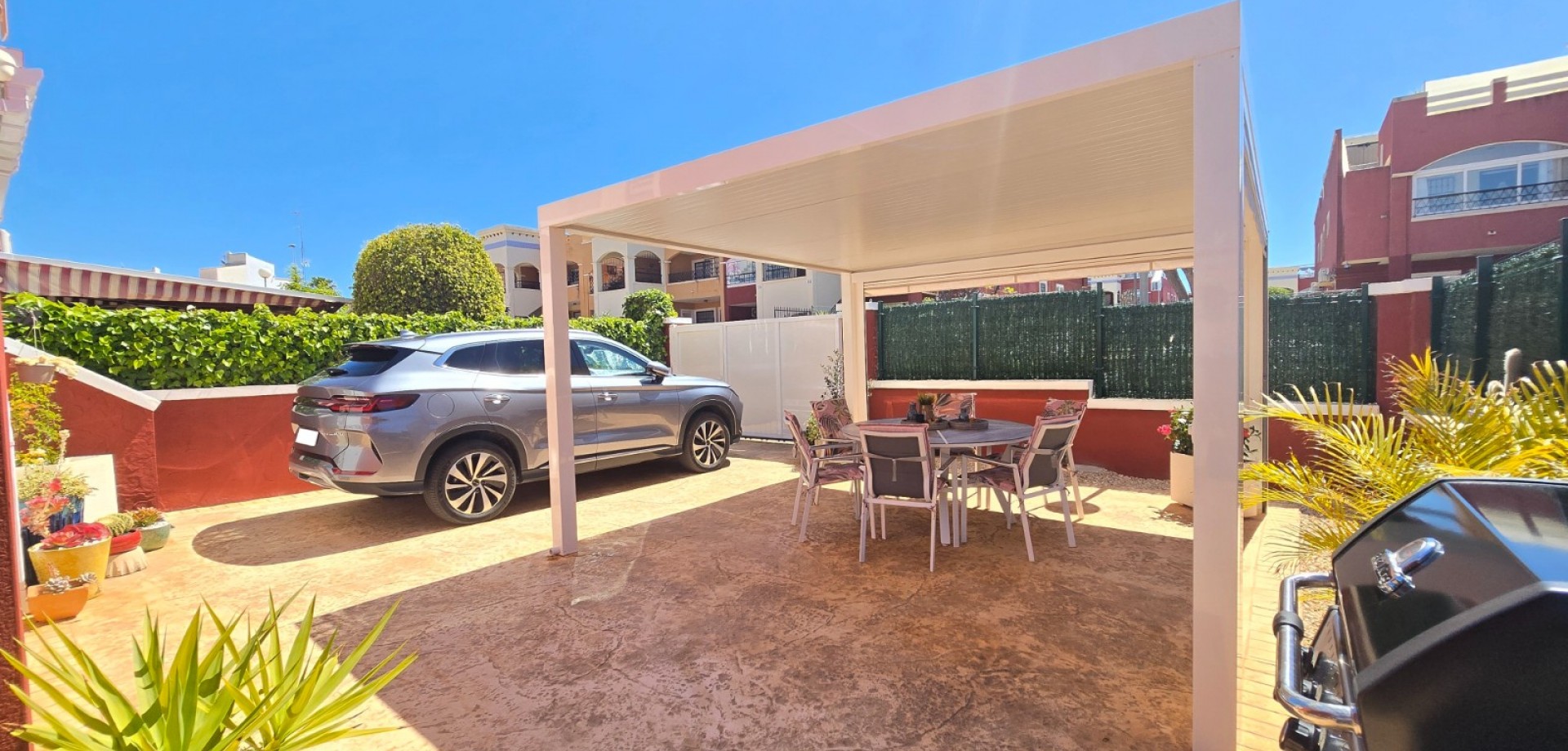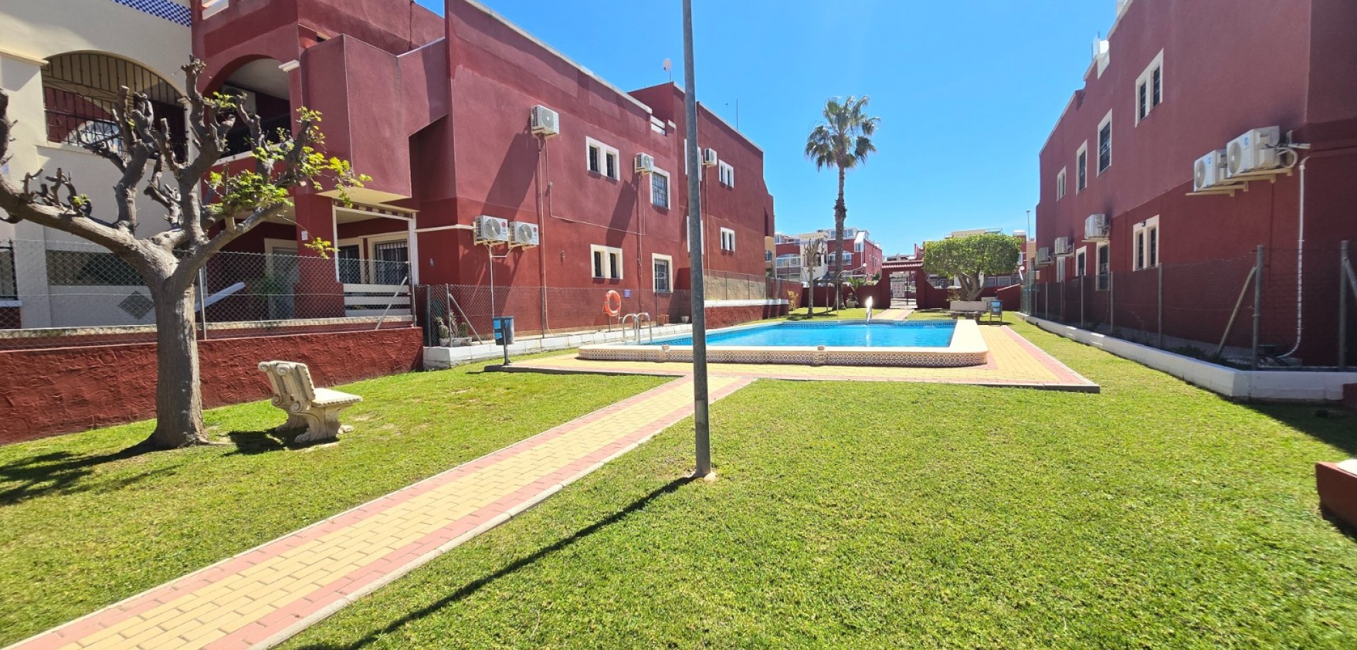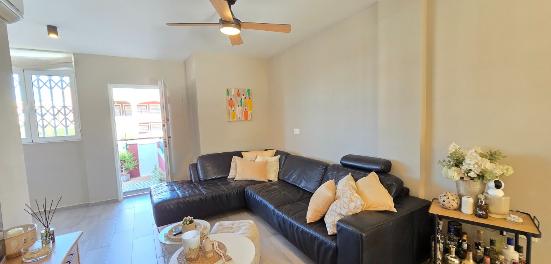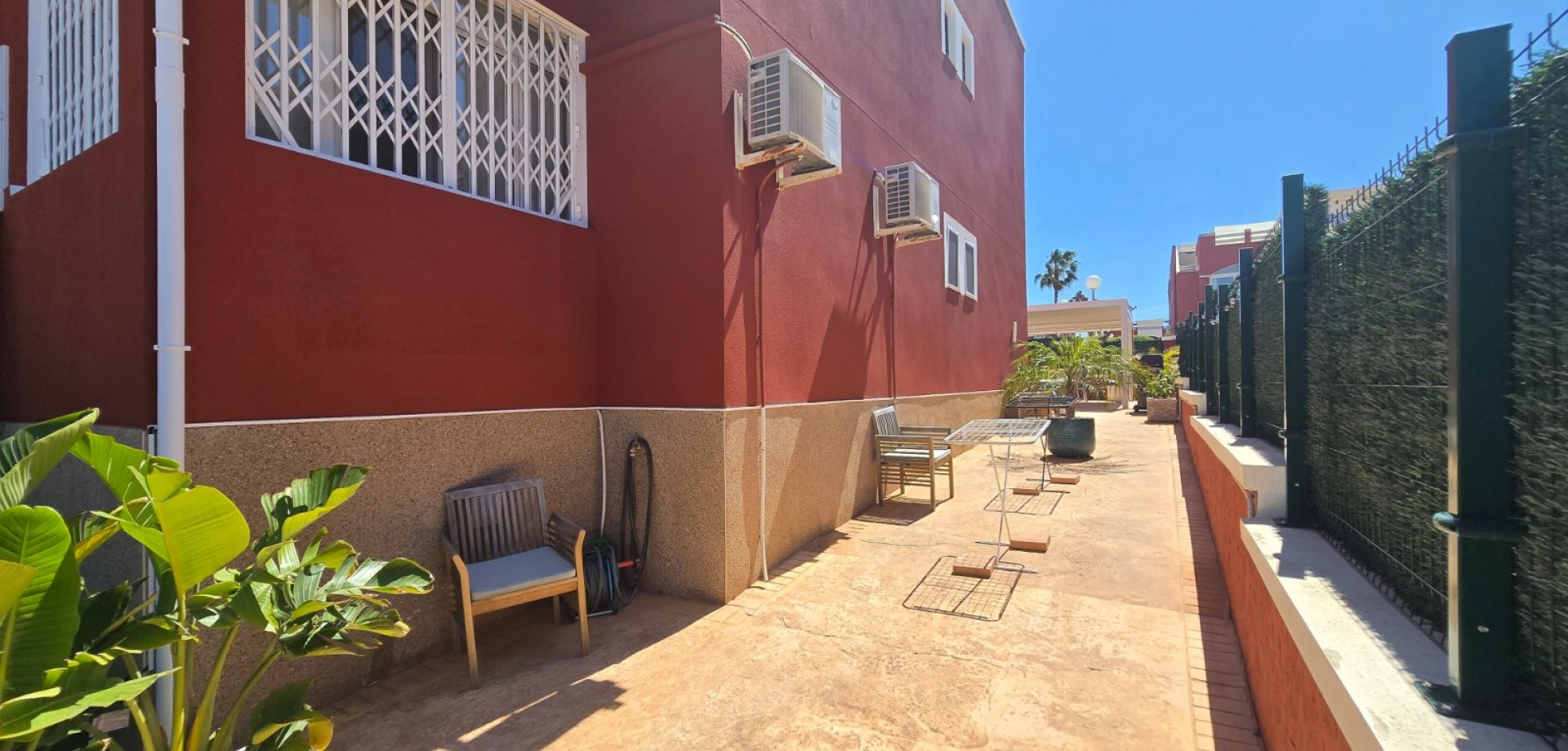 Charming ground-floor flat in excellent condition, ideal for those seeking comfort and outdoor space. Located in the popular Orihuela Costa – Los Altos, with a selection of bars, restaurants and shops within walking distance. This cosy apartment features 2 bedrooms and 2 bathrooms, one of which has been practically converted into a handy utility room. The light-filled living area with open-plan kitchen creates a pleasant and modern living experience. With a living area of 72 m², the layout has been optimally utilised. A real highlight is the spacious, sunny garden of no less than 158 m², perfect for relaxing or enjoying time with family and friends. The garden features a pergola, a garden shed and several cosy seating areas. The apartment also features: Private parking spaceCommunal swimming poolAir conditioningFitted wardrobesPartially furnished Thanks to the abundance of natural light and the peaceful location, this is the ideal place to unwind, whether as a permanent home or a second home. SUMA: 215 euros per year. Community costs: 300 euros per year.