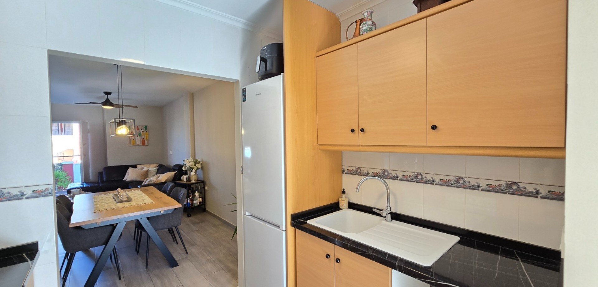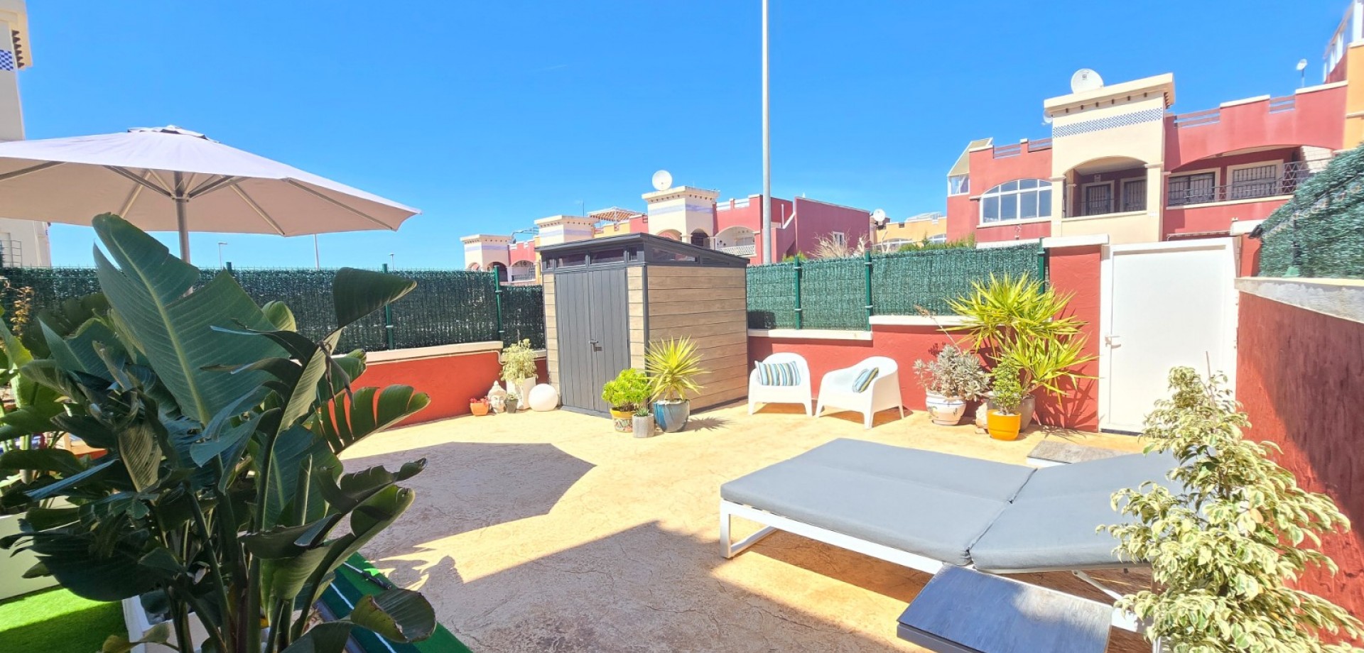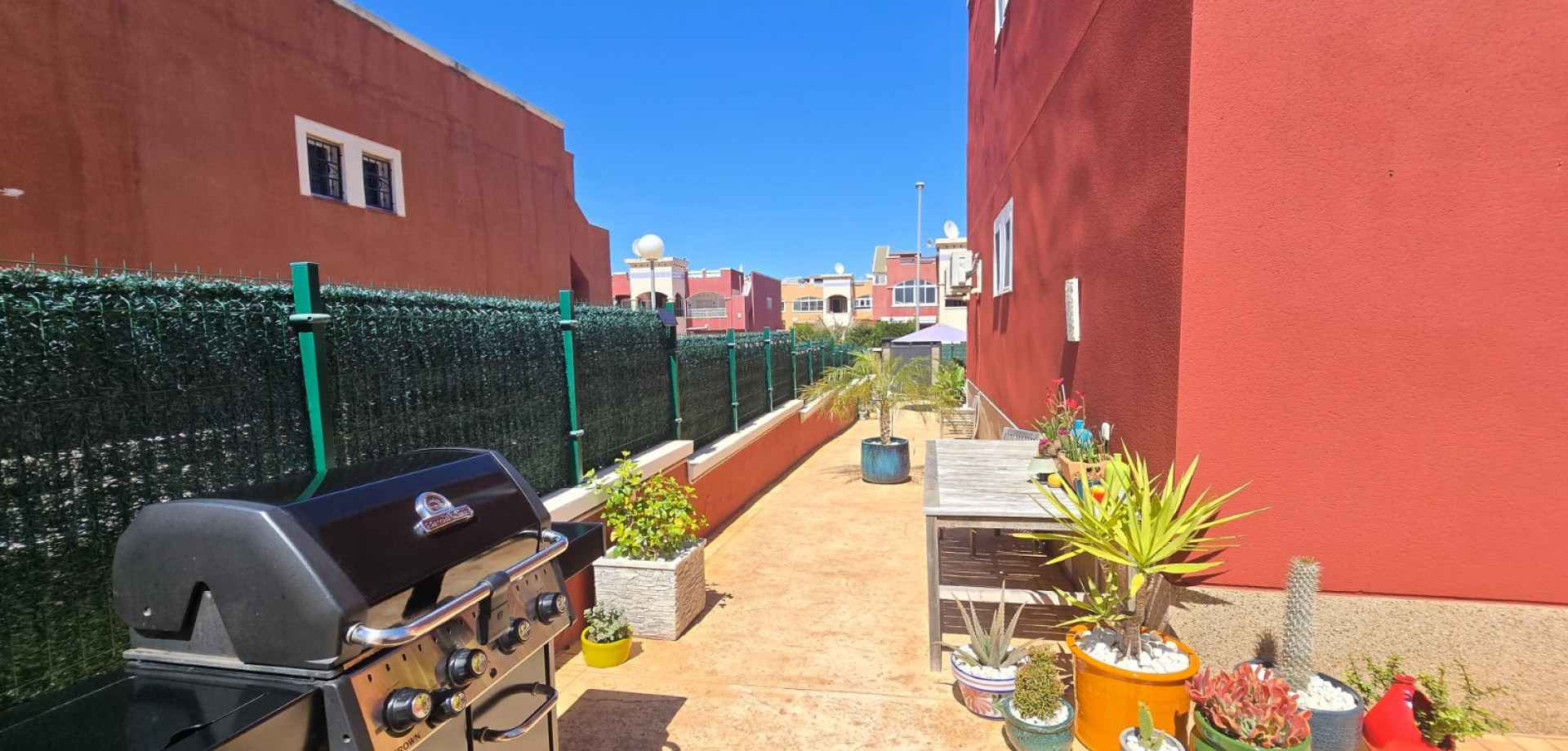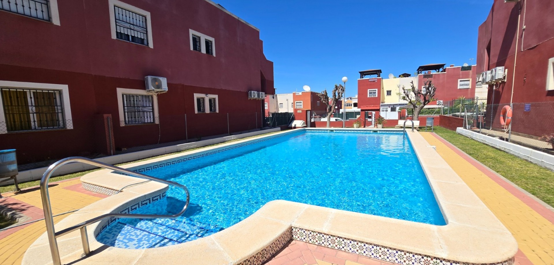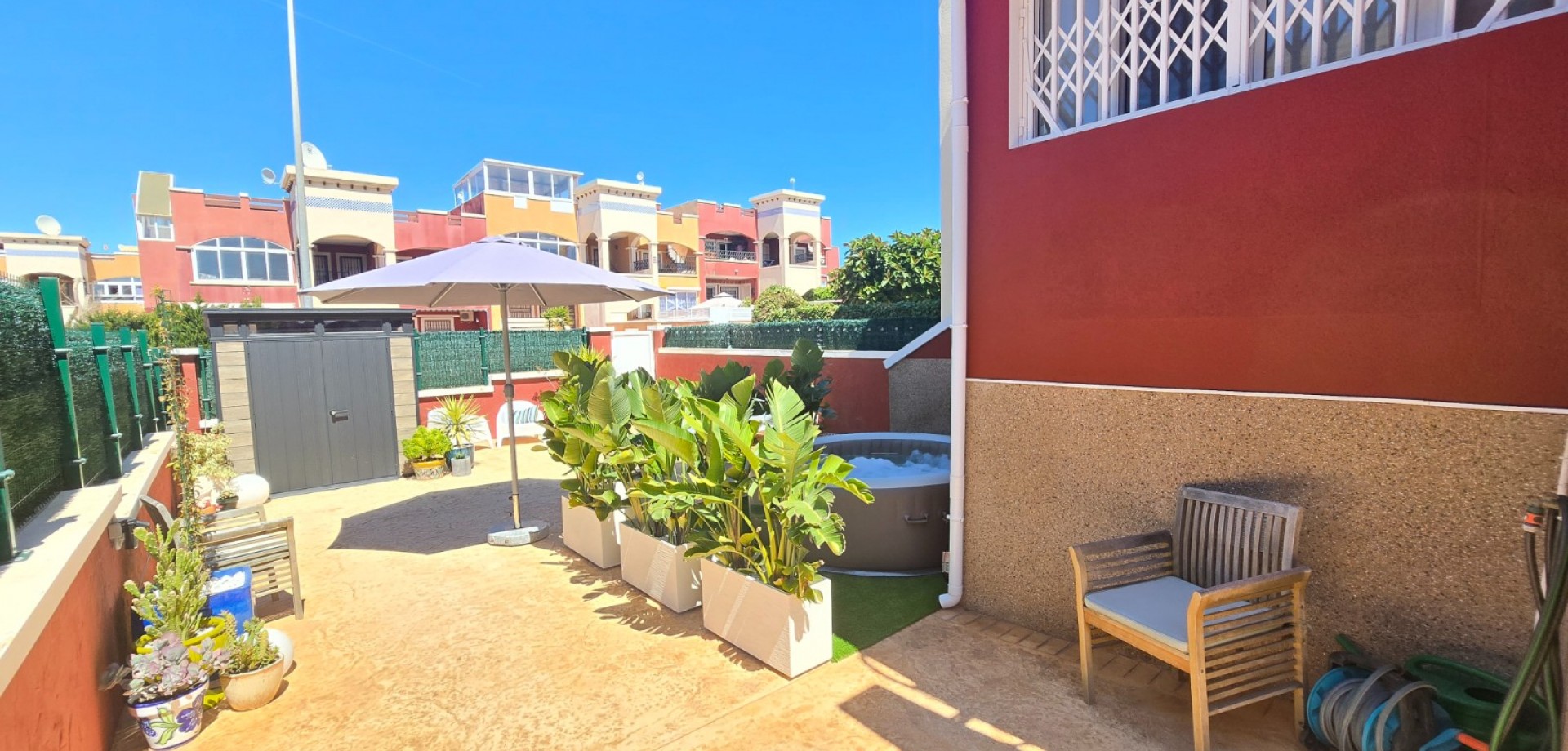 Charming ground-floor flat in excellent condition, ideal for those seeking comfort and outdoor space. Located in the popular Orihuela Costa – Los Altos, with a selection of bars, restaurants and shops within walking distance. This cosy apartment features 2 bedrooms and 2 bathrooms, one of which has been practically converted into a handy utility room. The light-filled living area with open-plan kitchen creates a pleasant and modern living experience. With a living area of 72 m², the layout has been optimally utilised. A real highlight is the spacious, sunny garden of no less than 158 m², perfect for relaxing or enjoying time with family and friends. The garden features a pergola, a garden shed and several cosy seating areas. The apartment also features: Private parking spaceCommunal swimming poolAir conditioningFitted wardrobesPartially furnished Thanks to the abundance of natural light and the peaceful location, this is the ideal place to unwind, whether as a permanent home or a second home. SUMA: 215 euros per year. Community costs: 300 euros per year.