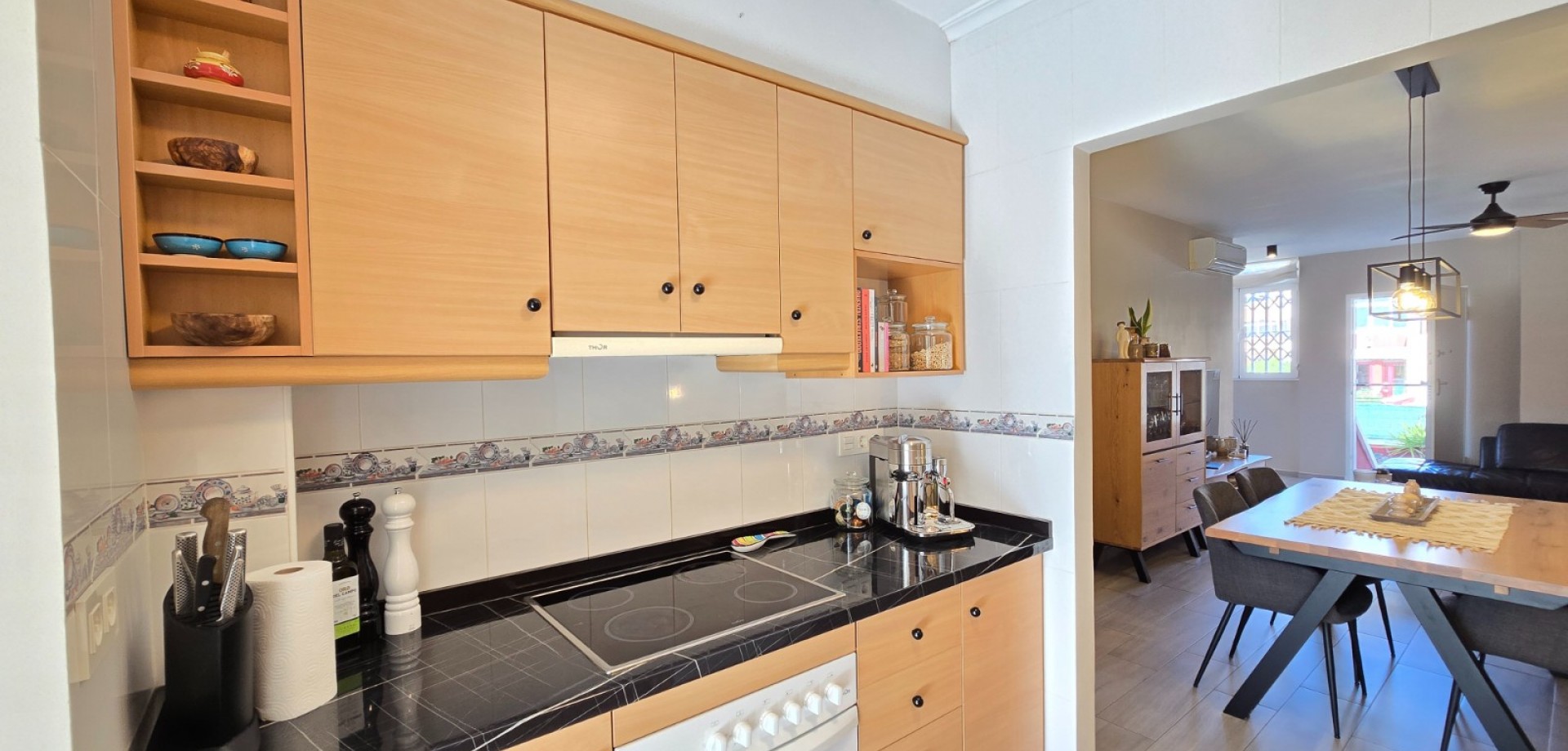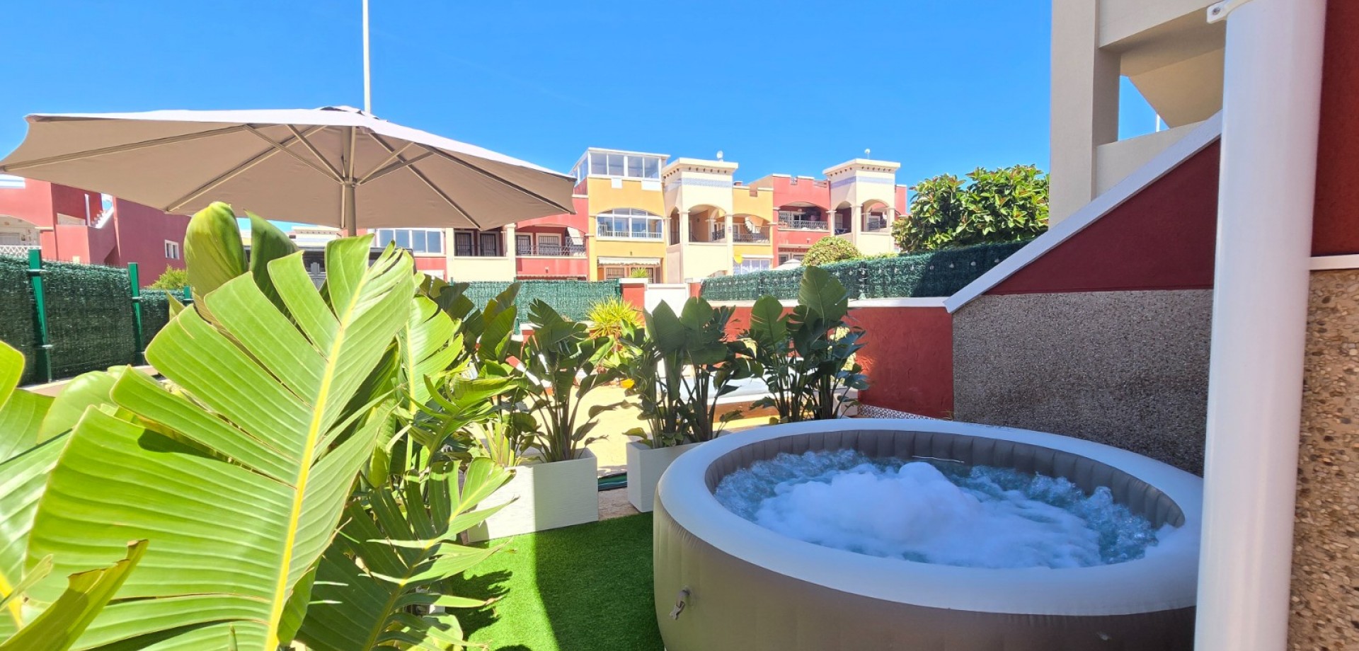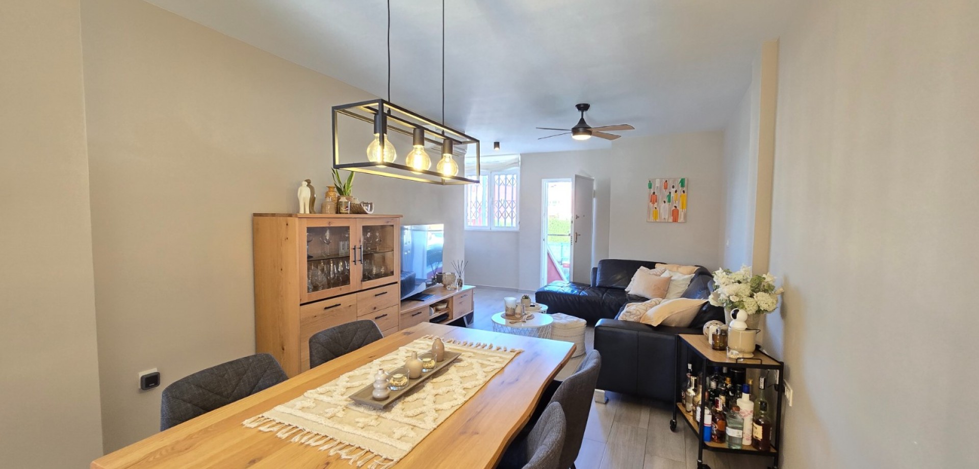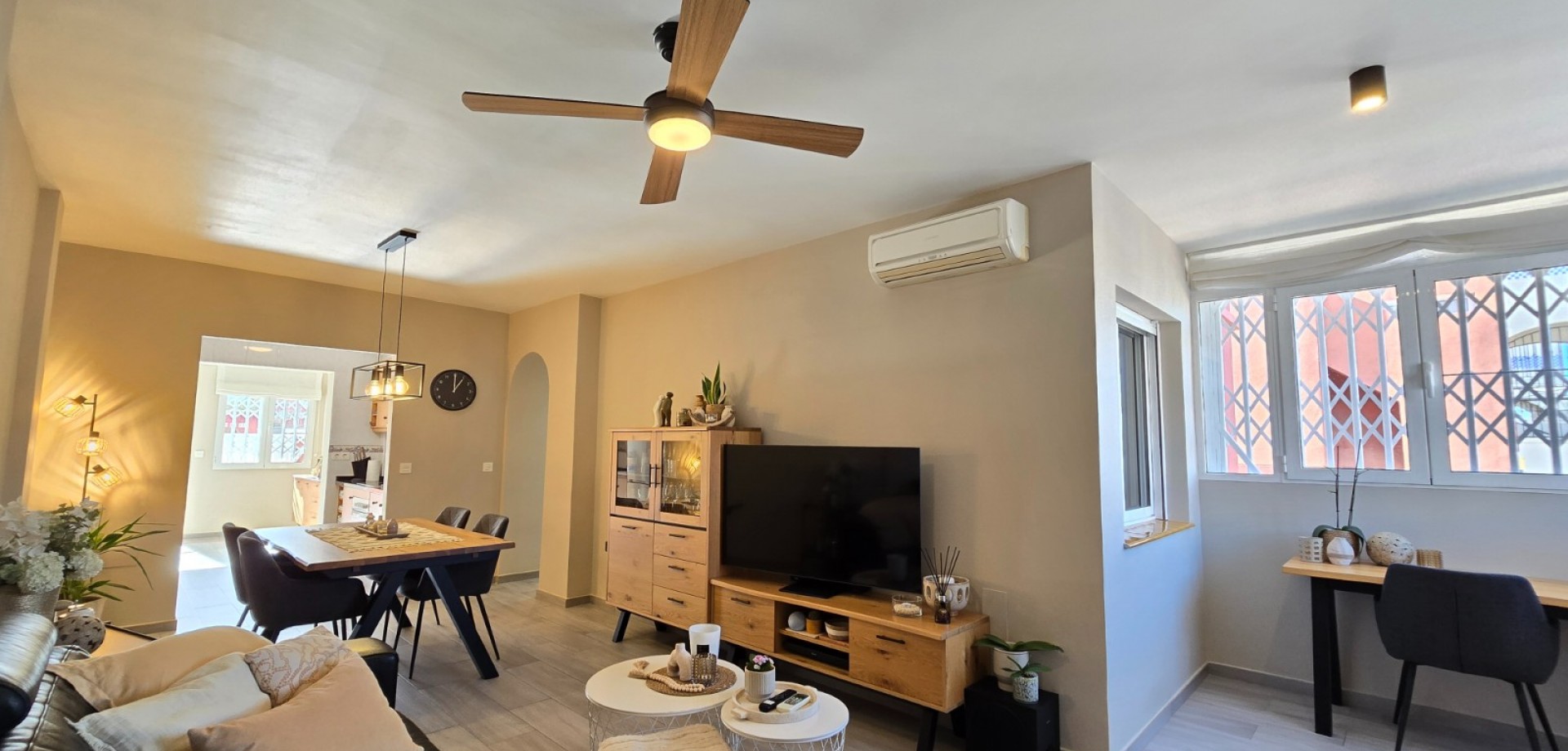 Charming ground-floor flat in excellent condition, ideal for those seeking comfort and outdoor space. Located in the popular Orihuela Costa – Los Altos, with a selection of bars, restaurants and shops within walking distance. This cosy apartment features 2 bedrooms and 2 bathrooms, one of which has been practically converted into a handy utility room. The light-filled living area with open-plan kitchen creates a pleasant and modern living experience. With a living area of 72 m², the layout has been optimally utilised. A real highlight is the spacious, sunny garden of no less than 158 m², perfect for relaxing or enjoying time with family and friends. The garden features a pergola, a garden shed and several cosy seating areas. The apartment also features: Private parking spaceCommunal swimming poolAir conditioningFitted wardrobesPartially furnished Thanks to the abundance of natural light and the peaceful location, this is the ideal place to unwind, whether as a permanent home or a second home. SUMA: 215 euros per year. Community costs: 300 euros per year.