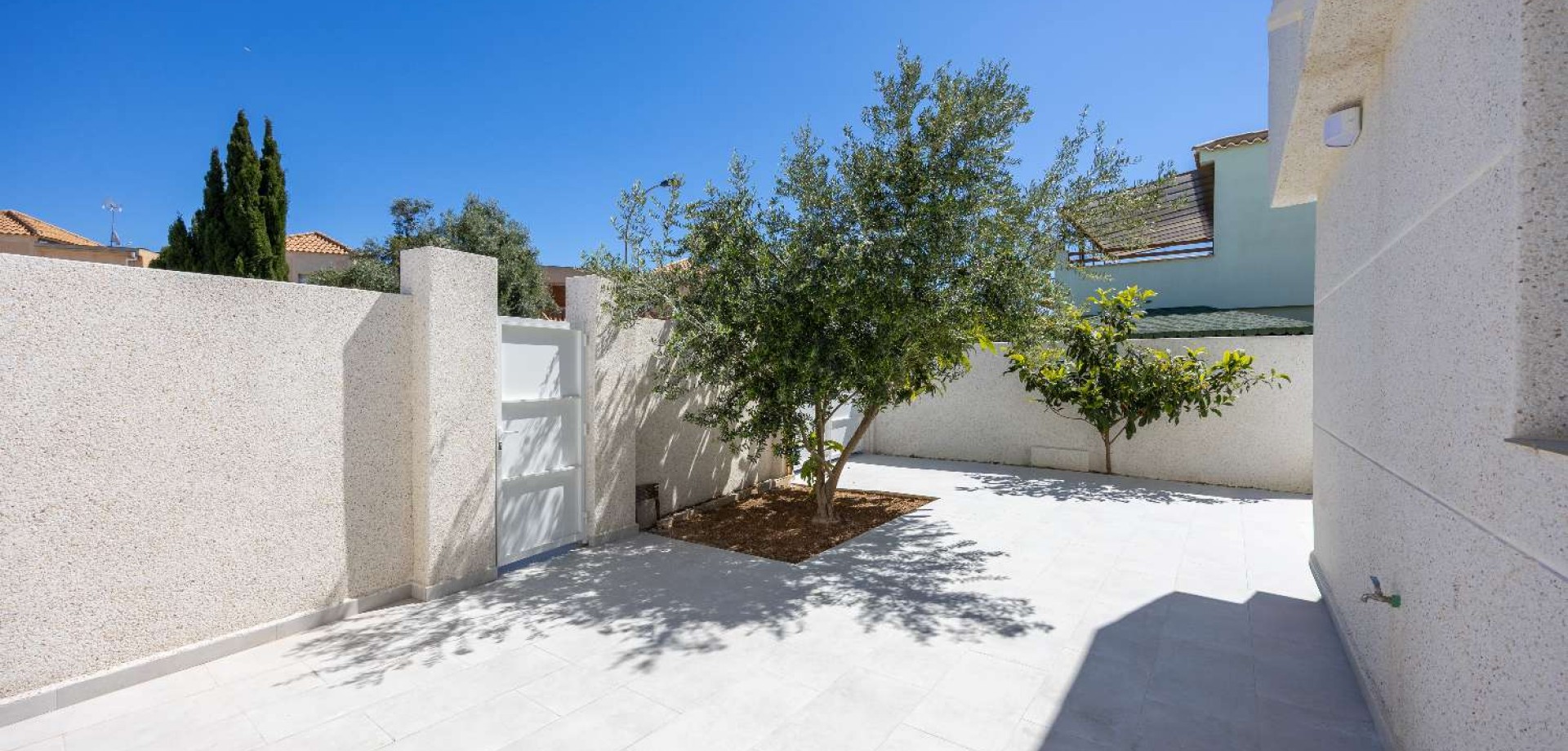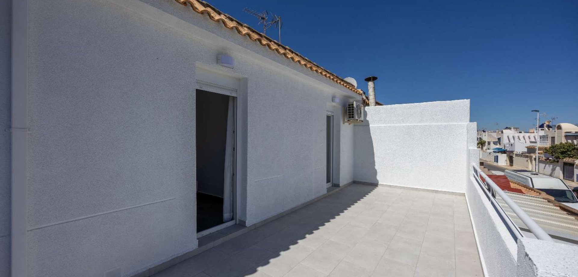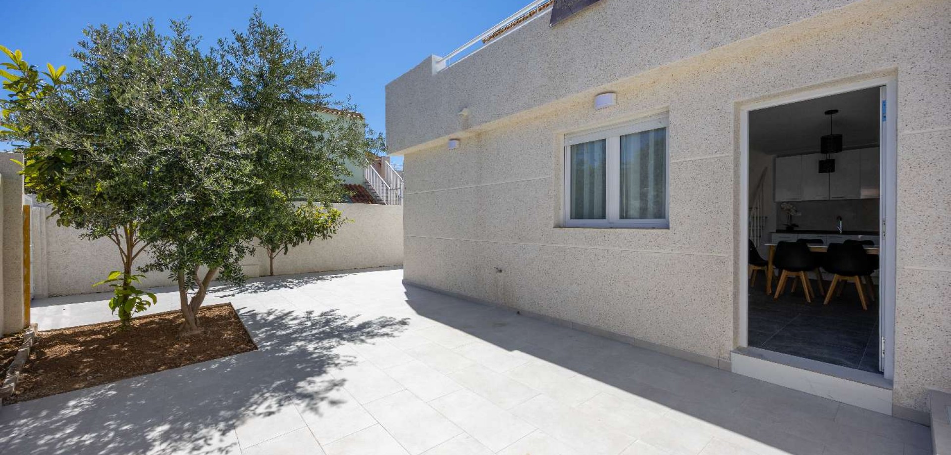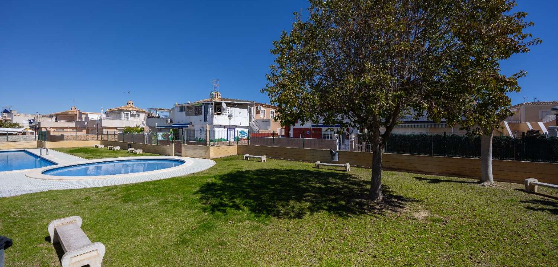 Magnificent Renovated House – 3 Private Suites in Torrevieja Discover this exceptional property located just steps from the Habaneras shopping center. Completely renovated with a contemporary design, this house stands out for its unique layout, offering absolute comfort and total privacy for each occupant. A Unique Layout 3 Luxury Suites: The house features 3 bedrooms, each with its own en-suite bathroom. Each space is a private suite, guaranteeing independence and comfort. Complete Renovation: Modern materials, new plumbing and electrical systems, and meticulous finishes. Living Spaces: A spacious and bright living and dining room, ideal for entertaining. Exteriors and Amenities Large Multipurpose Terrace: A beautiful outdoor space for al fresco dining, with the option to park your vehicle directly on the property. Leisure: Access to a meticulously maintained communal swimming pool to enjoy the exceptional climate of the Costa Blanca. Strategic Location Everything is within easy reach: Shopping & Leisure: In the immediate vicinity of the Habaneras shopping center, Carrefour supermarket, and leisure areas. Proximity: Quick access to Torrevieja beaches, restaurants, and major roads. The highlight: The layout with 3 private suites is ideal for a large family or for a high-yield rental investment. A turnkey property requiring no renovations.