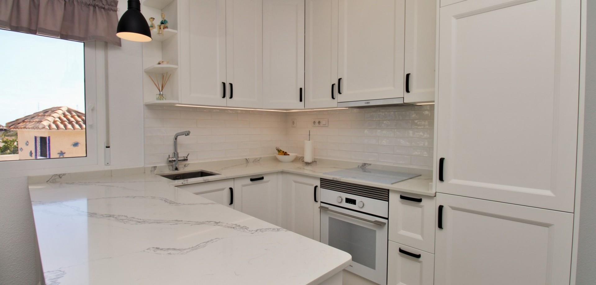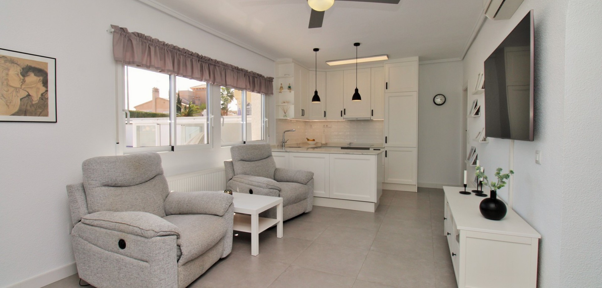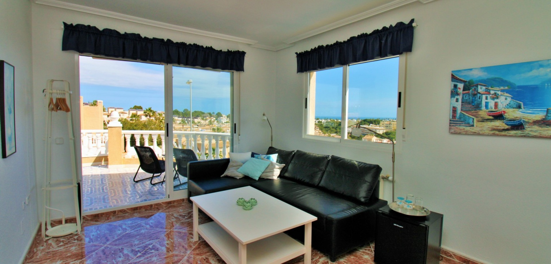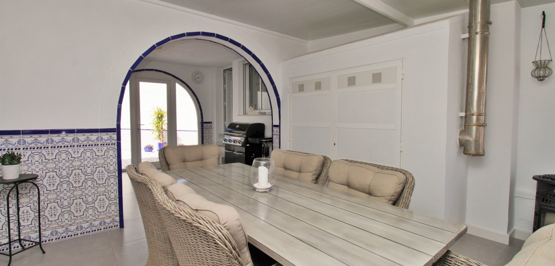 This exceptional detached villa is set on a generous private plot within El Presidente, Orihuela Costa, and stands out for its stunning, unobstructed sea views from all aspects of the property, including the main living areas, terraces, and pool area. Designed for both comfort and flexibility, the property offers multiple independent living spaces, making it ideal for permanent living, visiting guests, or extended family use. The main house has been tastefully renovated and comprises a bright lounge and dining area with an open-plan modern kitchen, one double bedroom with fitted wardrobes, and a stylish bathroom with walk-in shower. There is also an additional sitting room with WC, which can easily be converted into a second bedroom if required. This level benefits from new flooring throughout, as well as central heating and air-conditioning. Upstairs, the first annex provides a completely independent living space, featuring a lounge area, double bedroom, bathroom, and a private balcony with beautiful sea views. This level also benefits from central heating. The underbuild offers a further self-contained guest apartment, including a lounge-dining area, open kitchen, double bedroom, and a bathroom with walk-in shower — ideal for visitors or rental potential. Externally, the property is perfectly set up for enjoying the Mediterranean lifestyle, with a heated private swimming pool, jacuzzi, and a large summer house complete with a fully equipped kitchen inside, creating the perfect space for entertaining. There is also a separate outdoor shower cabin, along with a private garage with electric door and gated entrance. Ideally located within walking distance to Villamartin Plaza and golf course, as well as La Fuente commercial centre, the property is also just a short drive to the beaches of the Orihuela Costa and Zenia Boulevard shopping centre.