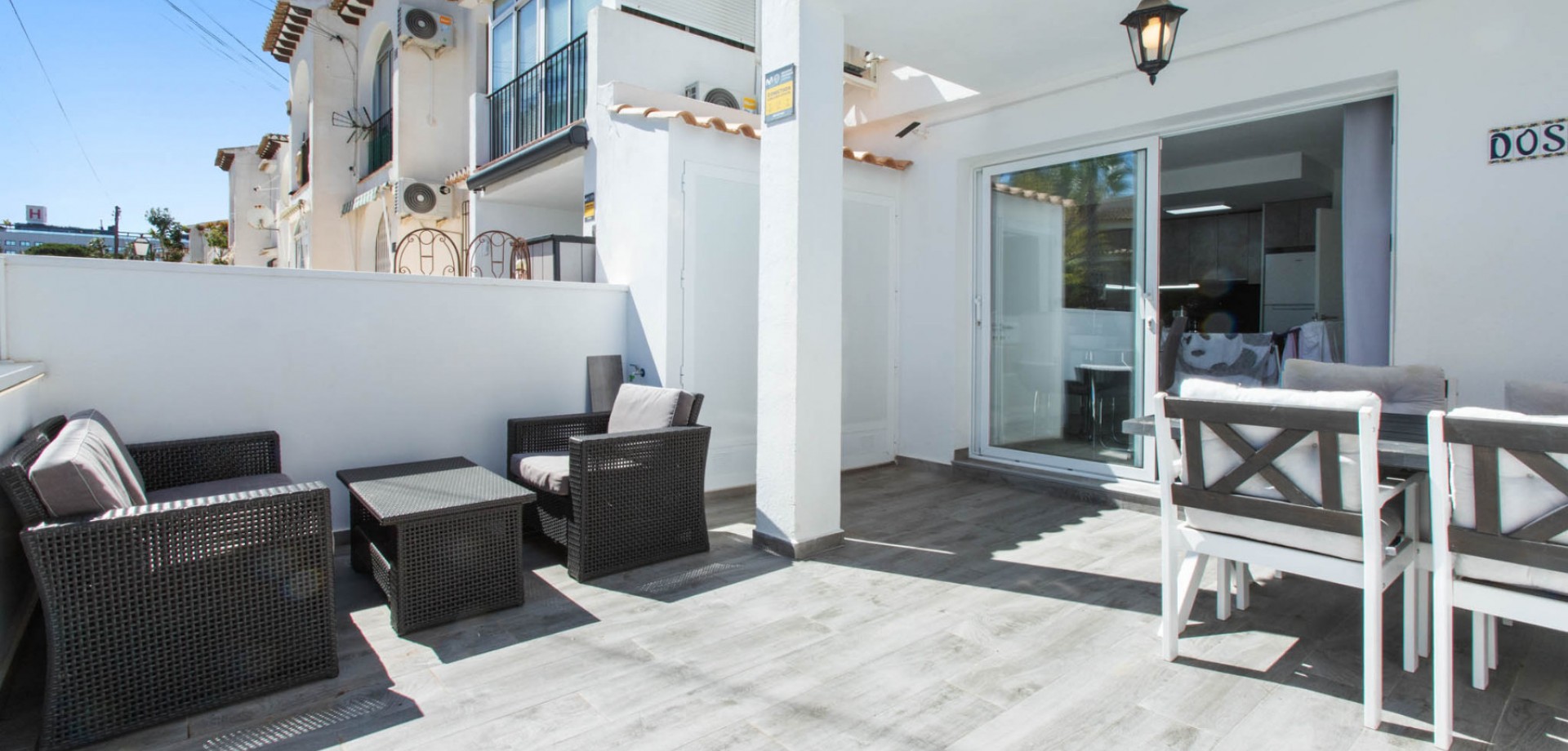 Welcome to this fully renovated and modern two-storey townhouse, located in the sought-after Lago Jardin community in Torrevieja. This beautiful and bright home offers stylish and functional living spaces that feel brand new – a perfect place for comfortable living. Cosy and Functional Spaces The entrance is through a private gated terrace, including a covered section – ideal for morning coffee or al fresco dining. On the ground floor, you’ll find a spacious living room, a modern kitchen, and a separate toilet, providing a practical layout for both everyday life and holiday enjoyment. Upstairs there are two bedrooms, each with large built-in wardrobes, and a beautifully renovated bathroom. The entire home was refurbished in 2023 with high-quality materials, evident in the fresh surfaces and stylish details. Three air heat pumps ensure a pleasant temperature all year round. Green and Friendly Lago Jardin Lago Jardin is known for its peaceful and pleasant atmosphere, as well as its fantastic communal areas. Residents enjoy vast green areas, a large pool area with a restaurant, and tennis courts. The surroundings invite you to enjoy the outdoors and the services the community offers. Excellent Location Close to Services This townhouse is perfectly located near all essential amenities: The nearest restaurant is located directly at the community’s own pool area. Mercadona supermarket is only about 650 metres away. The coastline is around 3.5 kilometres away. Torrevieja city centre and its services are approximately 6 kilometres away. Alicante Airport is about 49 kilometres from the property. This beautifully renovated and bright townhouse offers everything needed for permanent living or as a holiday home. Come and see it for yourself and fall in love with the tranquil atmosphere and fantastic facilities of Lago Jardin!