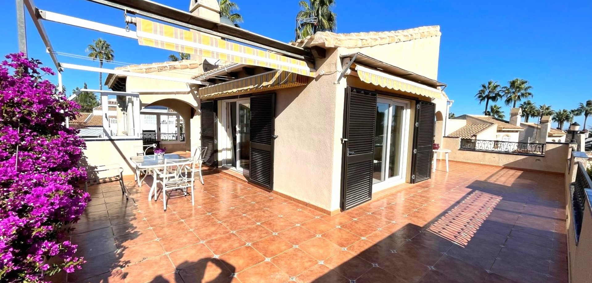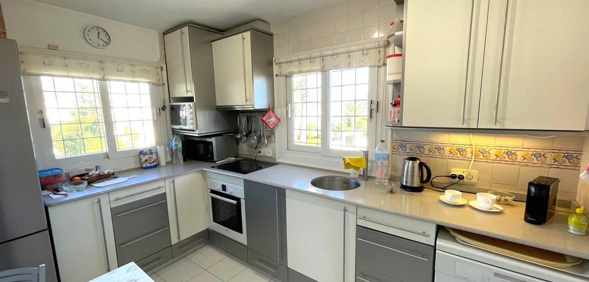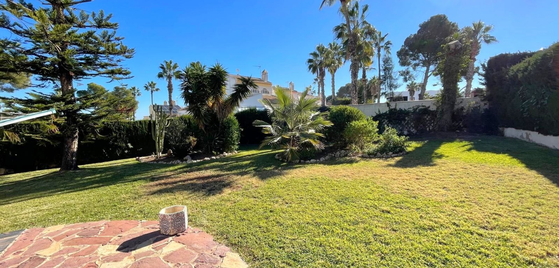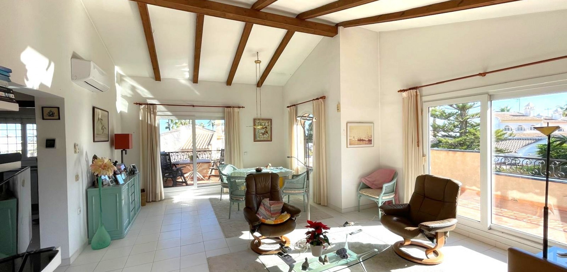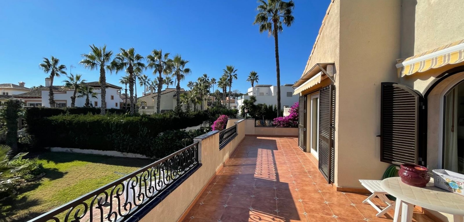 South-facing house built in 1989 with 140 m2 of built surface area under roof. Approximately 40 m2 large and very bright living room on the upper floor with sea view from the large east-, south- and west-facing terraces with from early morning until late afternoon Bar kitchen. 3 spacious bedrooms. 2 complete bathrooms. Guest toilet. Hall. Garage. Plot 954 m2. Lots of space for a private Pool to be built. Price: 675,000 €