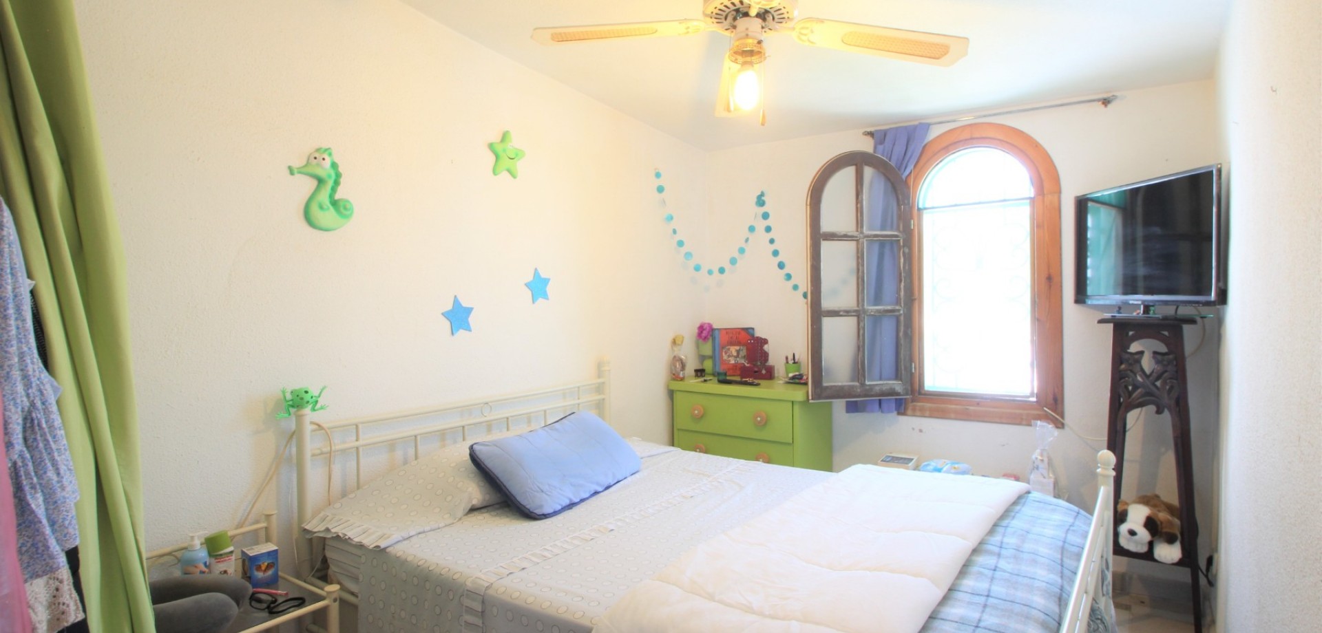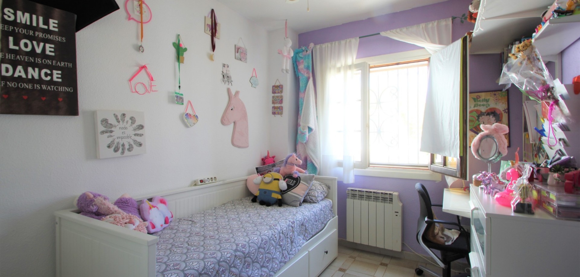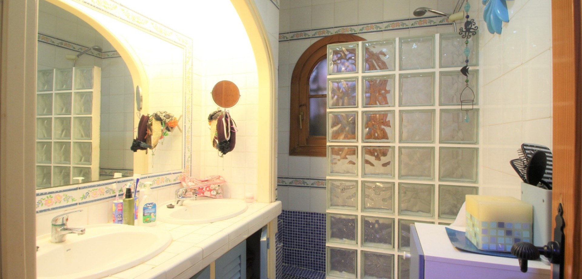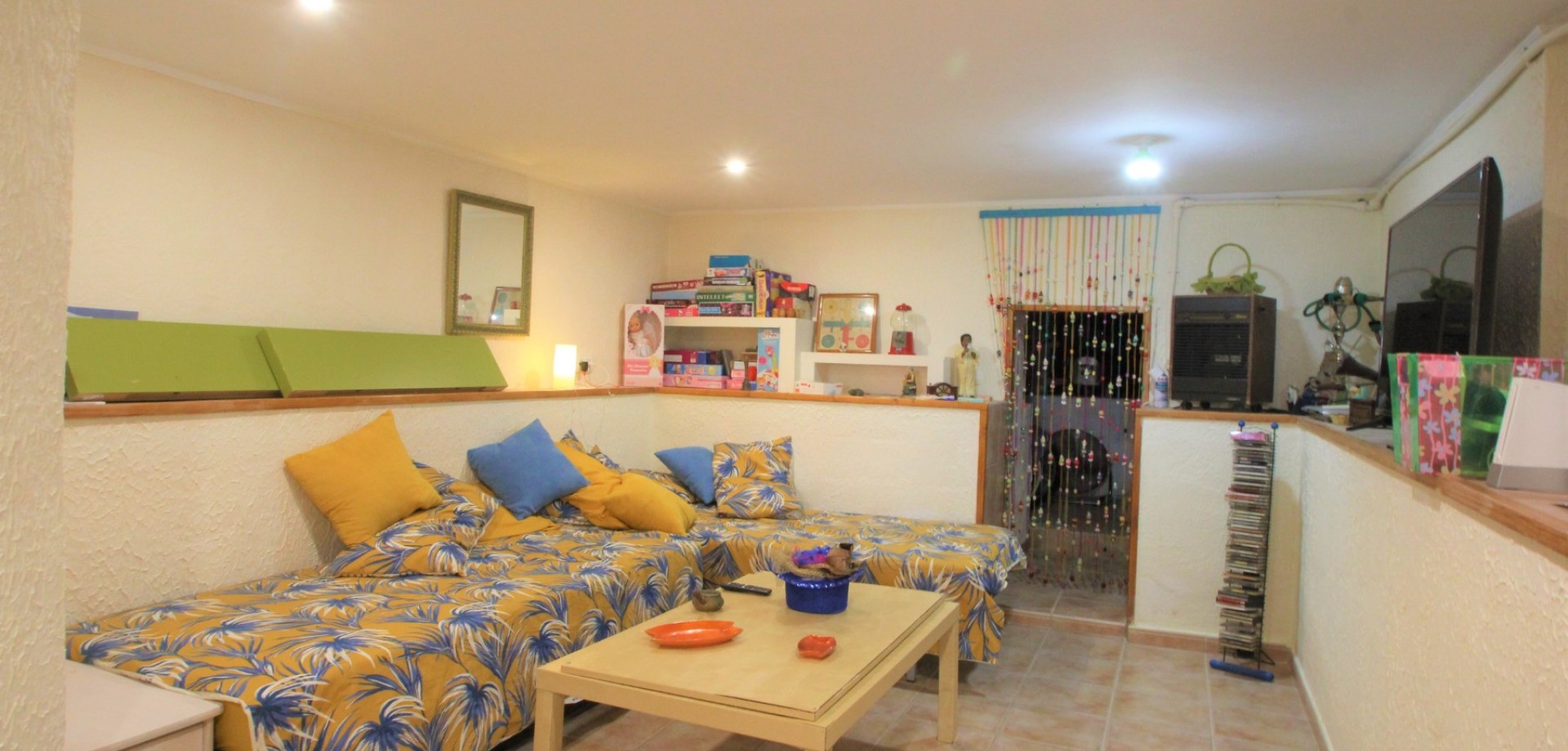 An ideally positioned townhouse with large living dining area, with separate kitchen and guest toilet on ground floor. 2 bedrooms and 1 bathroom on first floor and an additional bedroom with an ensuite bathroom built by the owner on the roof terrace. The owner has also made additional habitable space, a complete bathroom and a multiple use room in the basement. The property has private front and back garden and a lovely spacious roof covered terrace overlooking the communal pool. The property is offered partly furnished and equipped with white goods. Distance to the vibrant Villamartin Plaza is 1 km, the commercial centre La Zenia Boulevard is 2.5 km, white sandy beaches 3 km, Murcia International airport 60 km and Alicante Airport 65 km. Energy certificate: pending. Price: 295.000 €