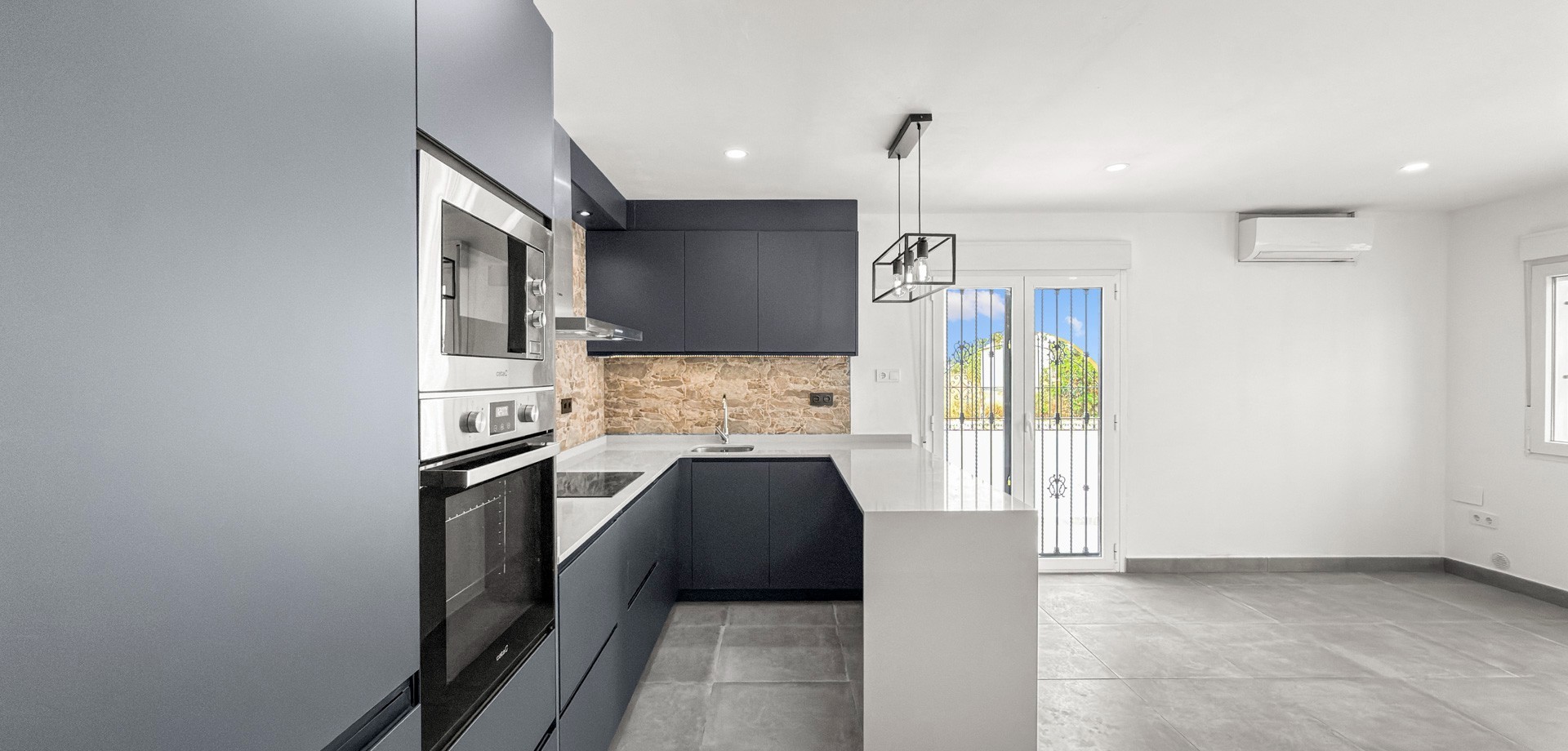 One of the standout features is the generous wrap-around terrace, thanks to its corner position. This outdoor space offers plenty of room for relaxing, dining, and entertaining, as well as private parking on the plot. In addition, the property boasts a private roof terrace, perfect for sunbathing and enjoying the Mediterranean climate all year round.