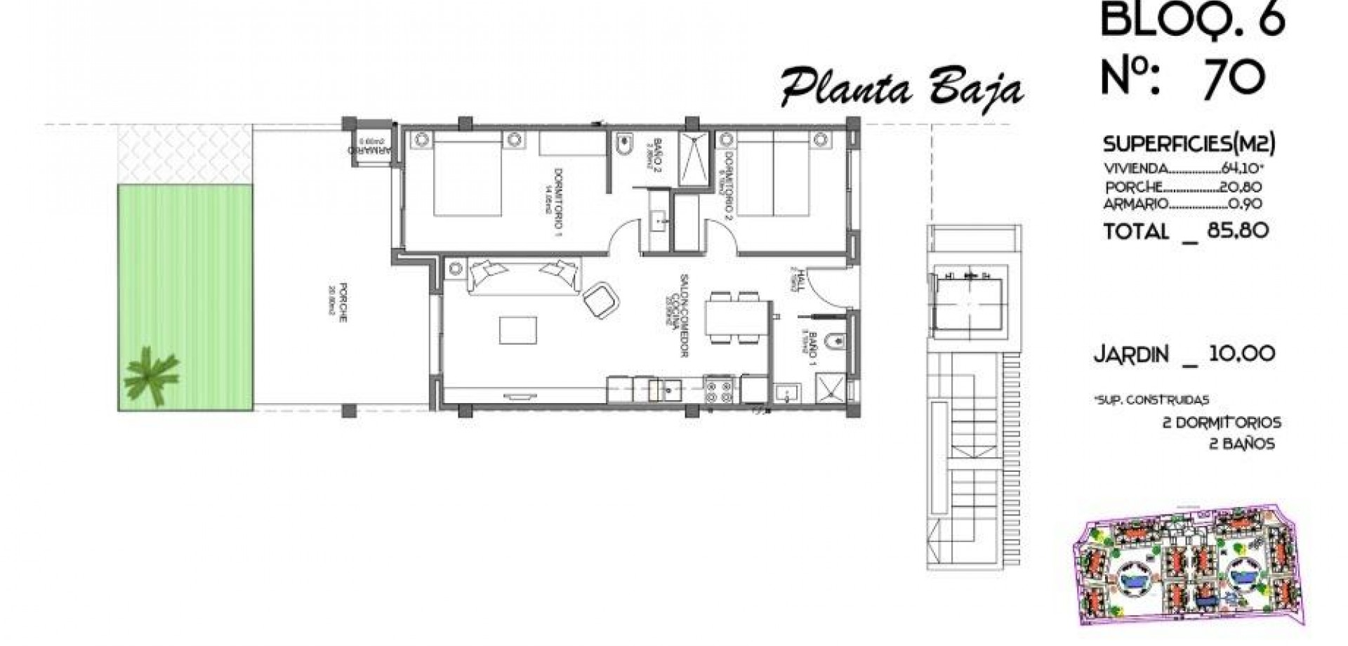 NEW BUILD RESIDENTIAL COMPLEX IN EL RASO New Build closed residential complex of touristic apartments in El Raso, Guardamar del Segura. This new residential complex will consist of 78 touristic apartments and penthouses distributed on the ground floor, first floor, and second floor + solarium. All properties will have a parking space and storage room in the basement, which will be accessible from the community stairs or from the elevator on each floor. The common areas will include a pool area, reception/meeting room, outdoor gym, pétanque area, mini-golf, and spa. DETAILS TO HIGHLIGHT IN OUR NEW DEVELOPMENT: RENTAL-ALLOWED HOUSING: These apartments offer something that no other can in this residential area. You can enjoy your home for 4 months a year for personal use, and the rest of the year it can be rented out, where you can obtain profitability without having to worry about anything, as a specialized rental company will manage everything for you. FULLY FURNISHED HOMES: all the homes in our new project will be fully furnished and ready to live in, with lighting, furniture, appliances, and fully finished bathrooms. VARIOUS TYPES OF HOUSING TO CHOOSE FROM: We offer various types of housing to choose from in different orientations. 2 bedrooms + 2 bathrooms and 3 bedrooms + 2 bathrooms types. All 3-bedroom homes will be corner units, making them even more exclusive for clients. Among these, we offer homes with South, East, and West orientations. All with terraces/porches facing the green area and Laguna de La Mata. UNBEATABLE VIEWS OF THE LAGUNA DE LA MATA: From all the first and second-floor homes in our new development, you can enjoy privileged views of the Laguna de La Mata. Being the last development adjacent to it, you will have a dreamlike panorama of this natural setting. PROXIMITY TO THE BEACH: Just 10 minutes by car or 15 minutes by bike, you can enjoy Moncayo Beach. CLOSE TO SHOPPING CENTERS AND URBAN AREAS: Located just 10 minutes by car from the Habaneras shopping centre, 9 minutes from the dining and entertainment area of Ciudad Quesada, or 8 minutes from the centre of Guardamar del Segura, making our development have an unbeatable location. GOLF COURSES: For lovers of this sport, it's worth mentioning that just 15 minutes by car, you can enjoy one of the best golf courses in Spain, located in the La Finca de Algorfa urbanization. Also, note the beautiful golf courses of La Marquesa and Vistabella, which are 10 and 20 minutes by car respectively. Complex located 30 minutes from Alicante airport and 1 hour Murcia - Corvera airport.