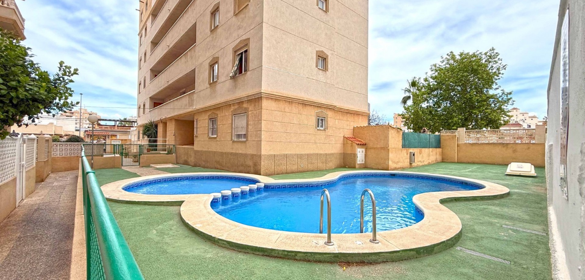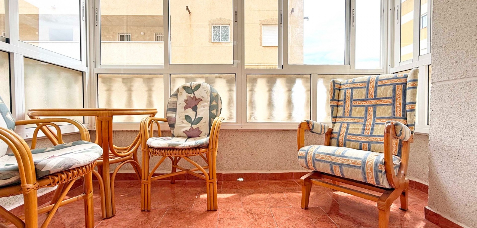 Светлая квартира на 4-м этаже в охраняемом жилом комплексе Nueva Torrevieja. Включает 2 просторные спальни, 1 ванную комнату, продается с мебелью. Остеклённый балкон позволяет наслаждаться солнцем круглый год. В комплексе есть общий бассейн. Отличный выбор как для отдыха, так и для постоянного проживания. Все услуги в пешей доступности.