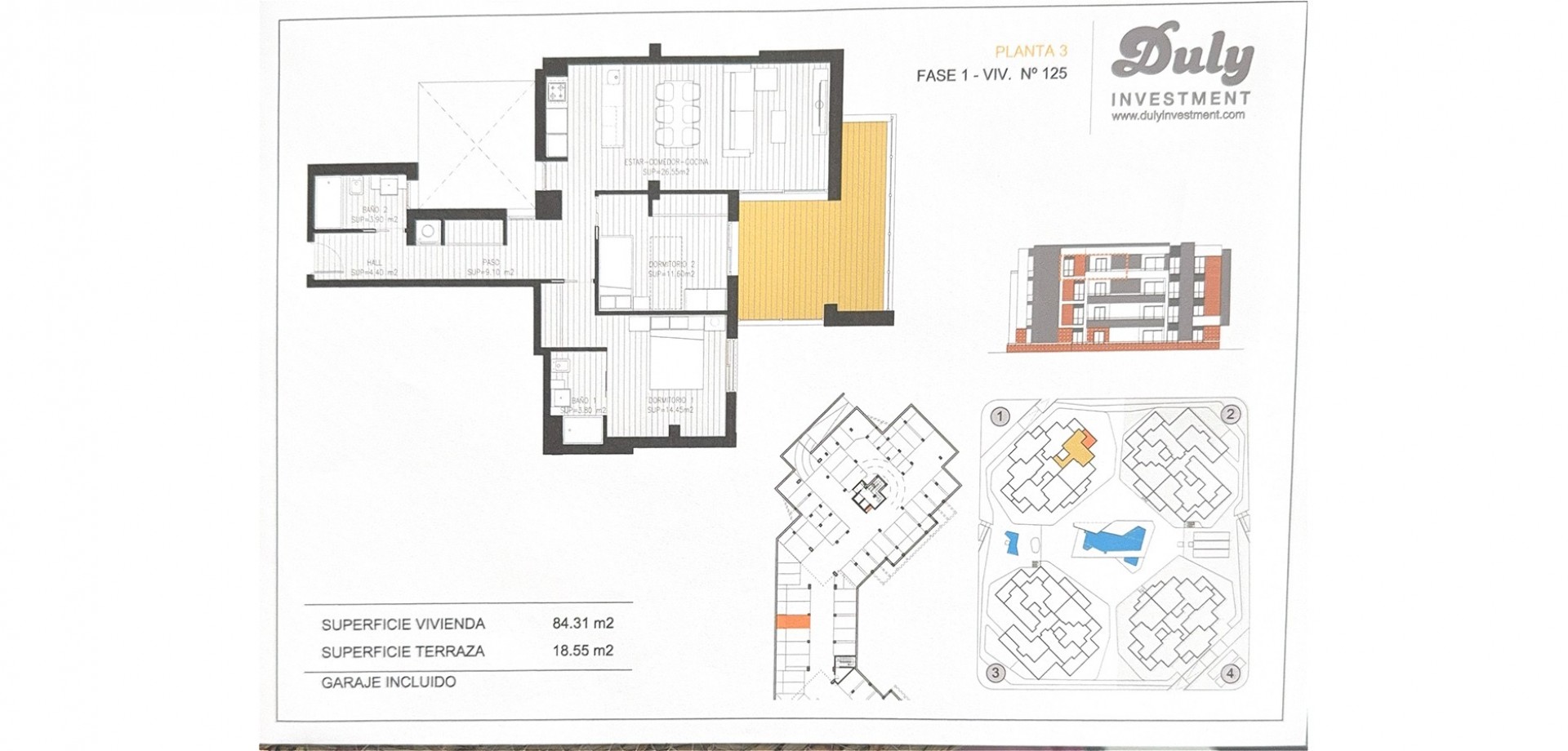 Построена в 2021 году и в отличном состоянии, квартира на третьем этаже предлагает 84 м² качественной планировки и просторную террасу 19 м² с панорамным видом на бассейн и сады.