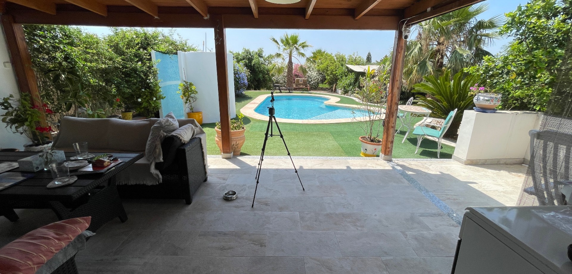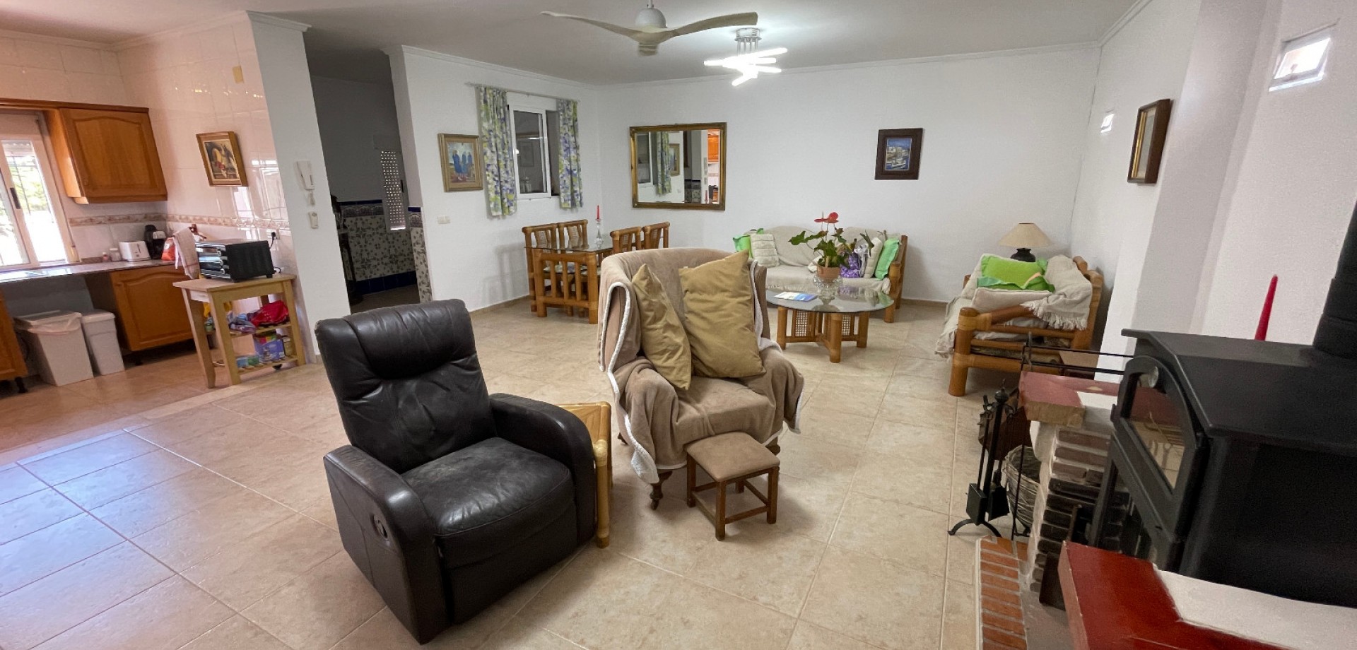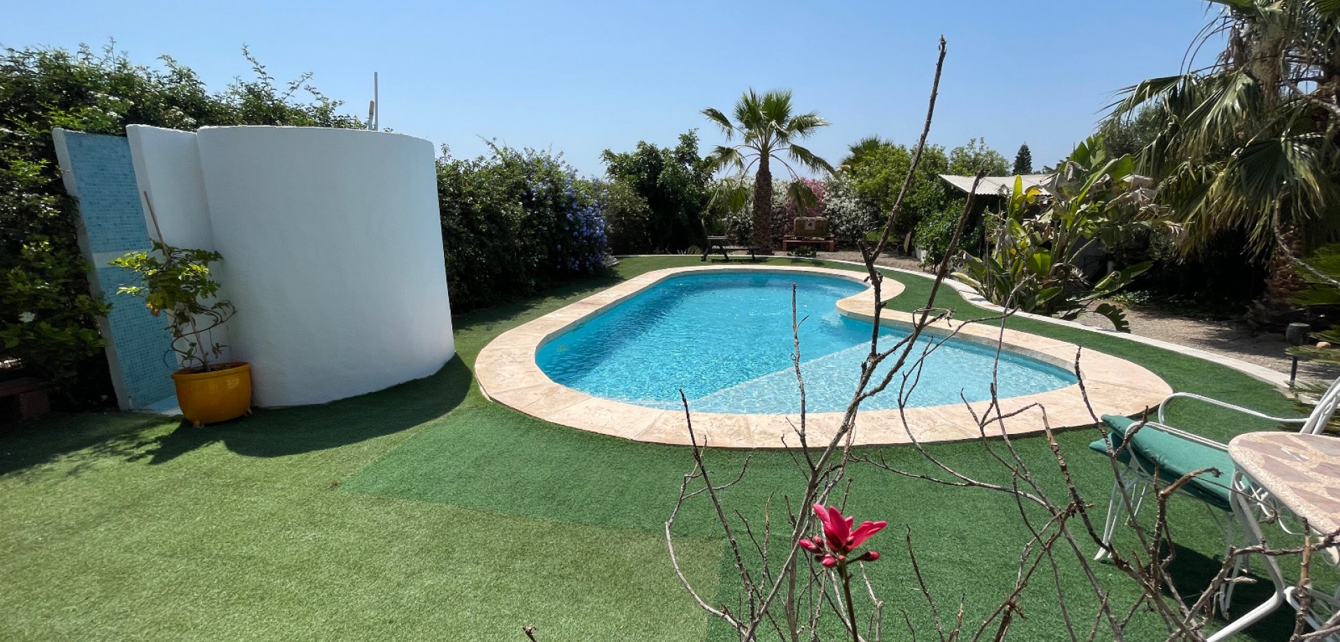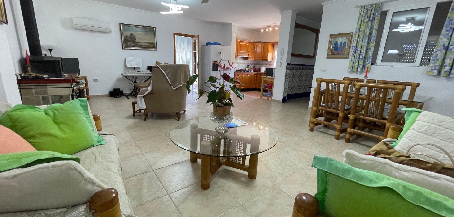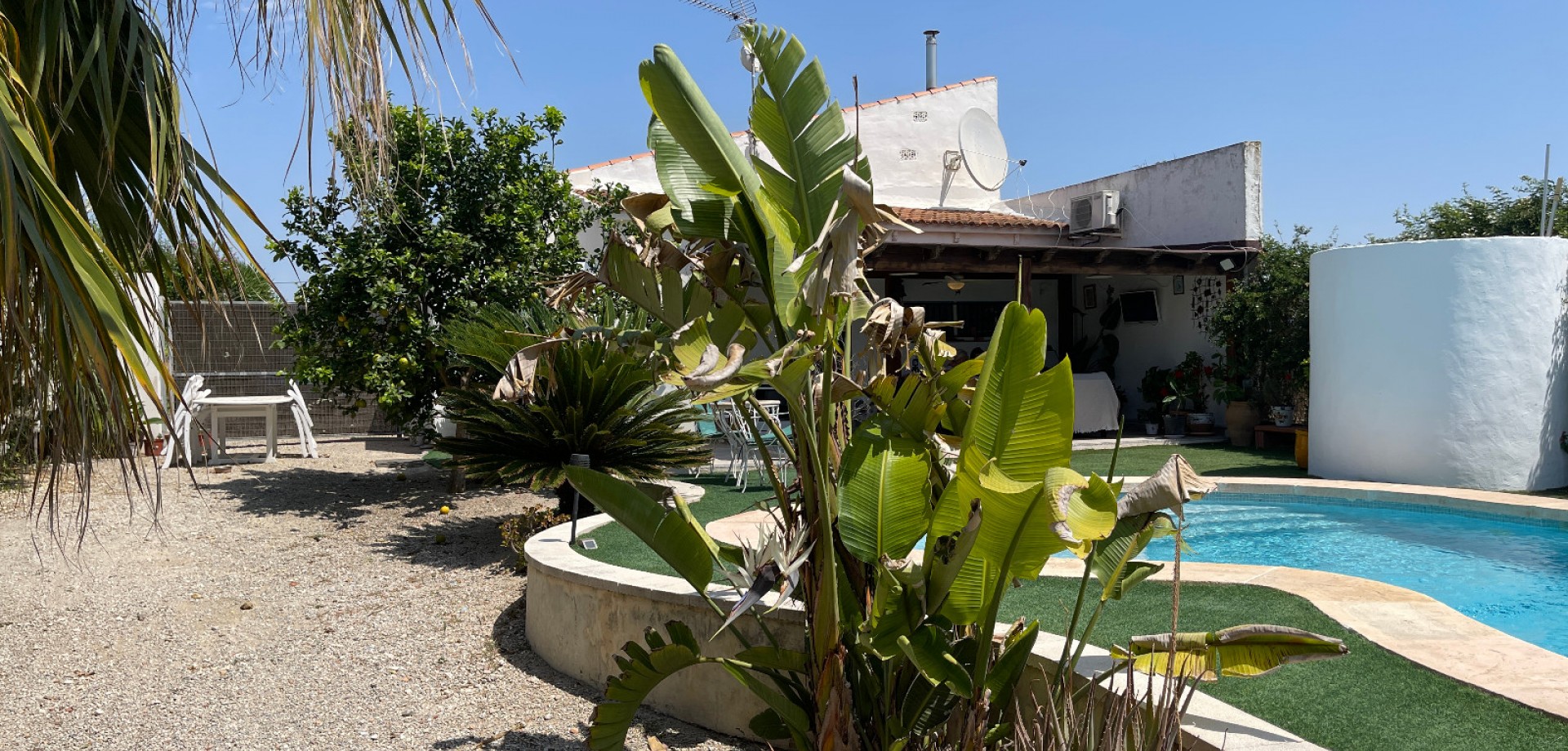 Очаровательная вилла в один этаж с частным бассейном и большим участком в Дая Нуэва Предлагается красивая вилла, расположенная в спокойной деревне Дая Нуэва, в сердце Коста-Бланки. Район славится природной красотой, тишиной и близостью к инфраструктуре и пляжам. Дом построен на одном уровне на участке площадью 2.005 м². В нем есть 4 просторные спальни и 3 ванные комнаты — идеально для большой семьи или приема гостей. Вилла предлагает большую кухню, светлые и уютные комнаты, а также продуманные жилые пространства. На территории имеется частный бассейн, ухоженный сад с разнообразными деревьями и фруктами, а также крытая терраса, которой можно пользоваться круглый год. Дополнительное помещение используется как мастерская, но его легко можно переделать в гостевой дом, офис или студию. Дом продается частично меблированным, подключен к центральным сетям воды и электричества, и в нем проведены многочисленные улучшения. Идеальный вариант для тех, кто ищет уединение, природу и комфорт.