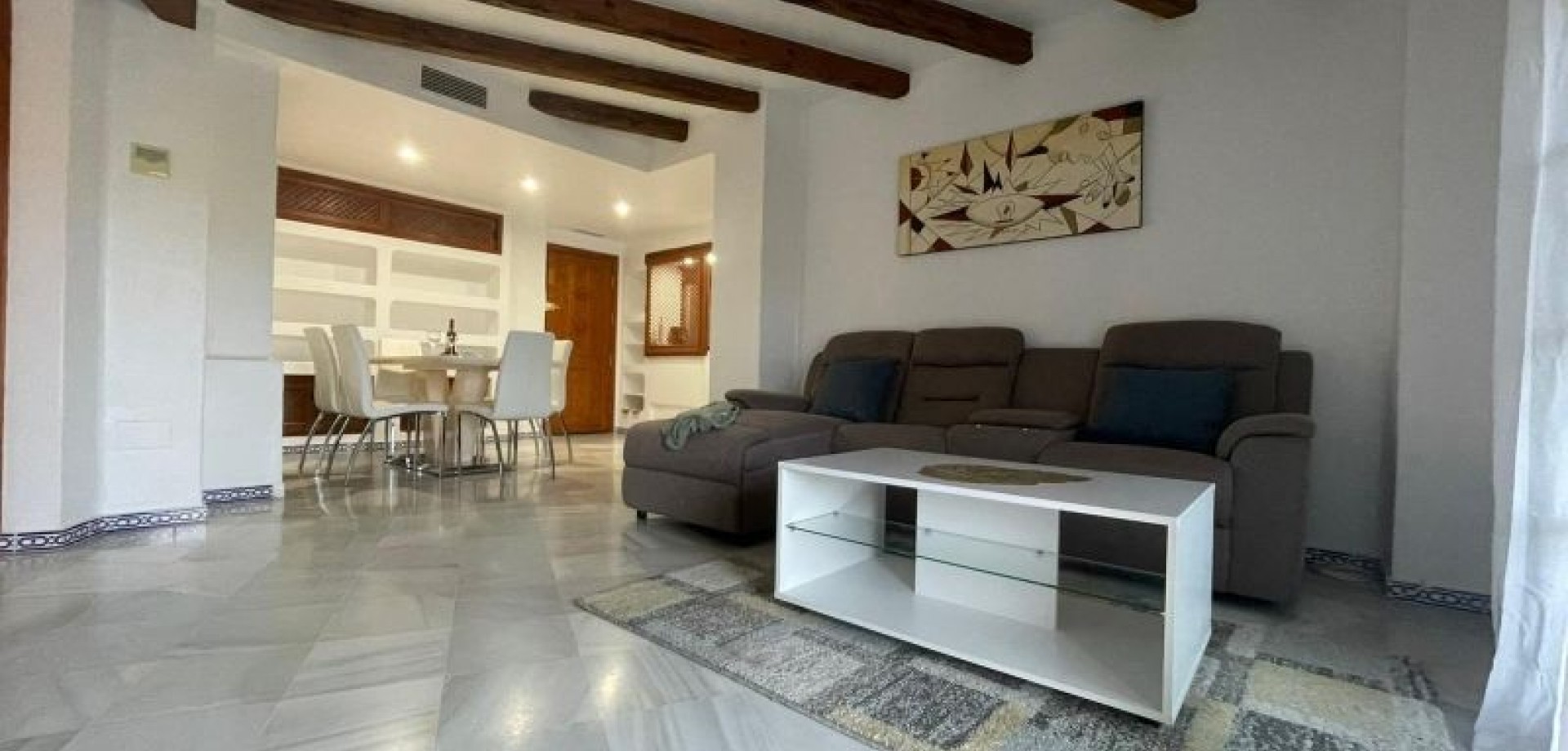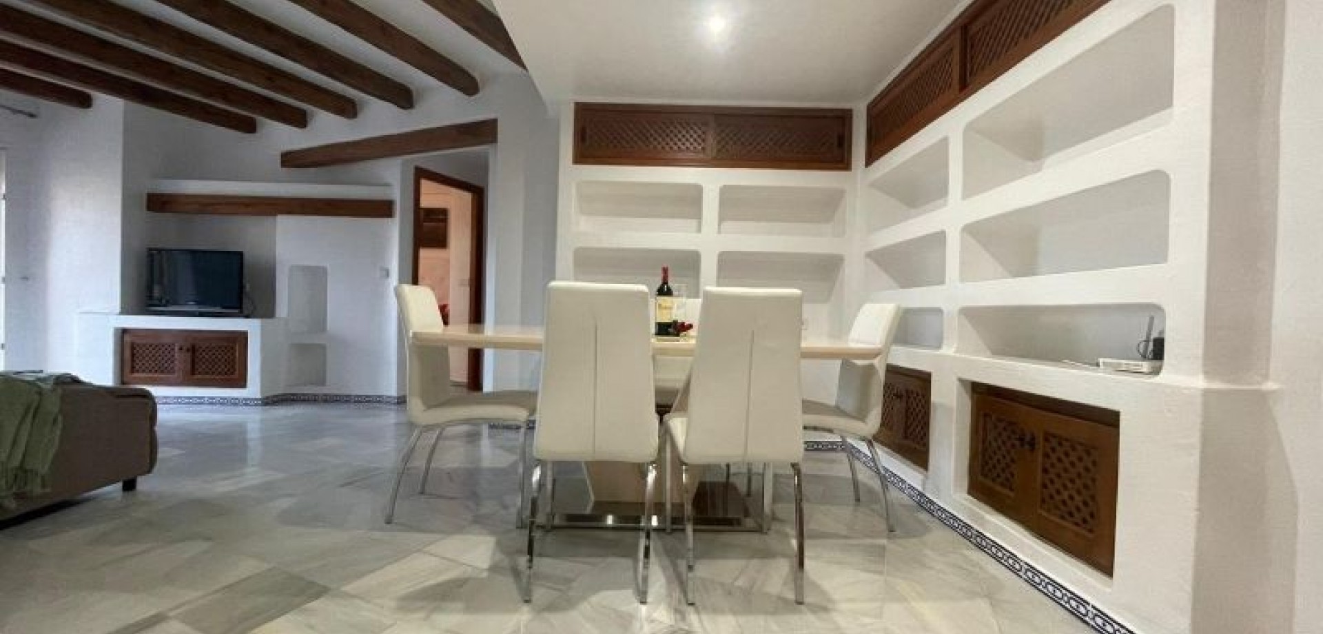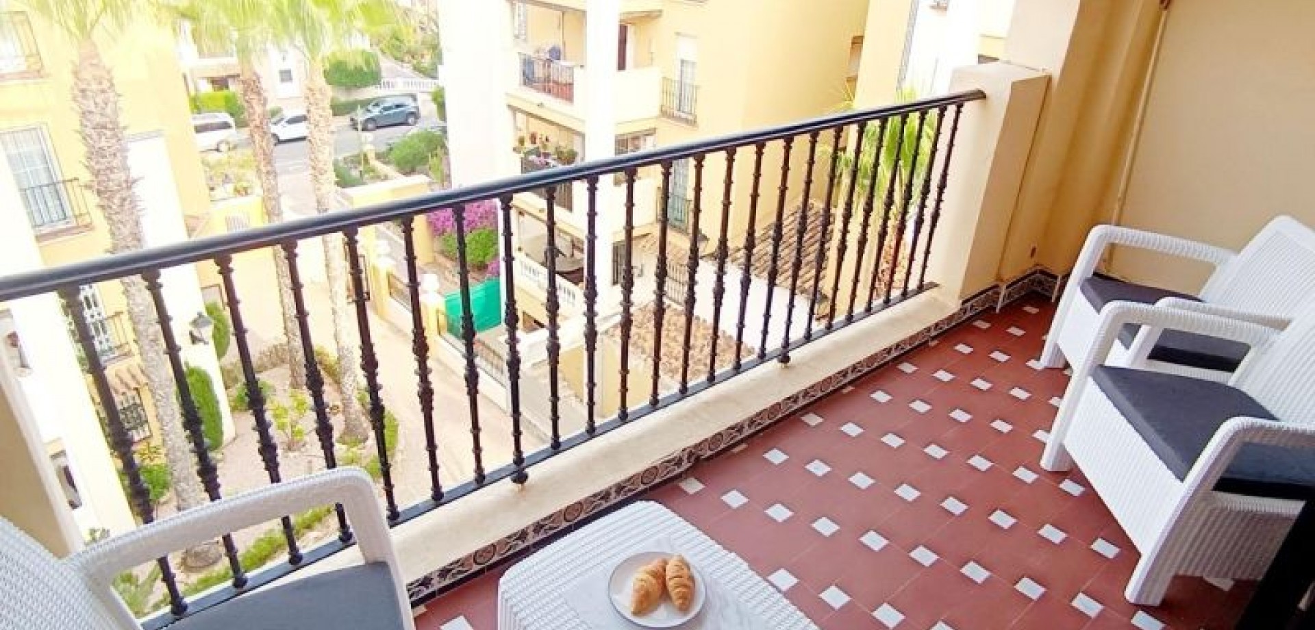Пентхаус в Aldea del Mar – Torrevieja Эксклюзивный пентхаус в деревенском стиле, расположенный в престижном жилом комплексе Aldea del Mar, одном из самых востребованных комплексов в Торревьехе, всего в нескольких метрах от Playa de los Locos. Жилой комплекс выделяется своими ухоженными садами и общими зонами, а также удобством наличия лифта. В доме 94 м² встроенной площади, распределенной следующим образом: Светлая, полностью меблированная гостиная-столовая с прямым выходом на большую террасу с приятным видом на море и зеленые зоны. Полностью оборудованная и функциональная кухня открытой планировки. 3 спальни, две из которых со встроенными шкафами. 2 ванные комнаты. Продается с мебелью, оборудованным канальным кондиционером и готовым к заселению. В стоимость включено подземное парковочное место, что обеспечивает дополнительное удобство и ценность. Идеальный дом для круглогодичного проживания или для наслаждения отдыхом на море, с преимуществом просторных, солнечных помещений в одном из самых эксклюзивных районов Торревьехи.