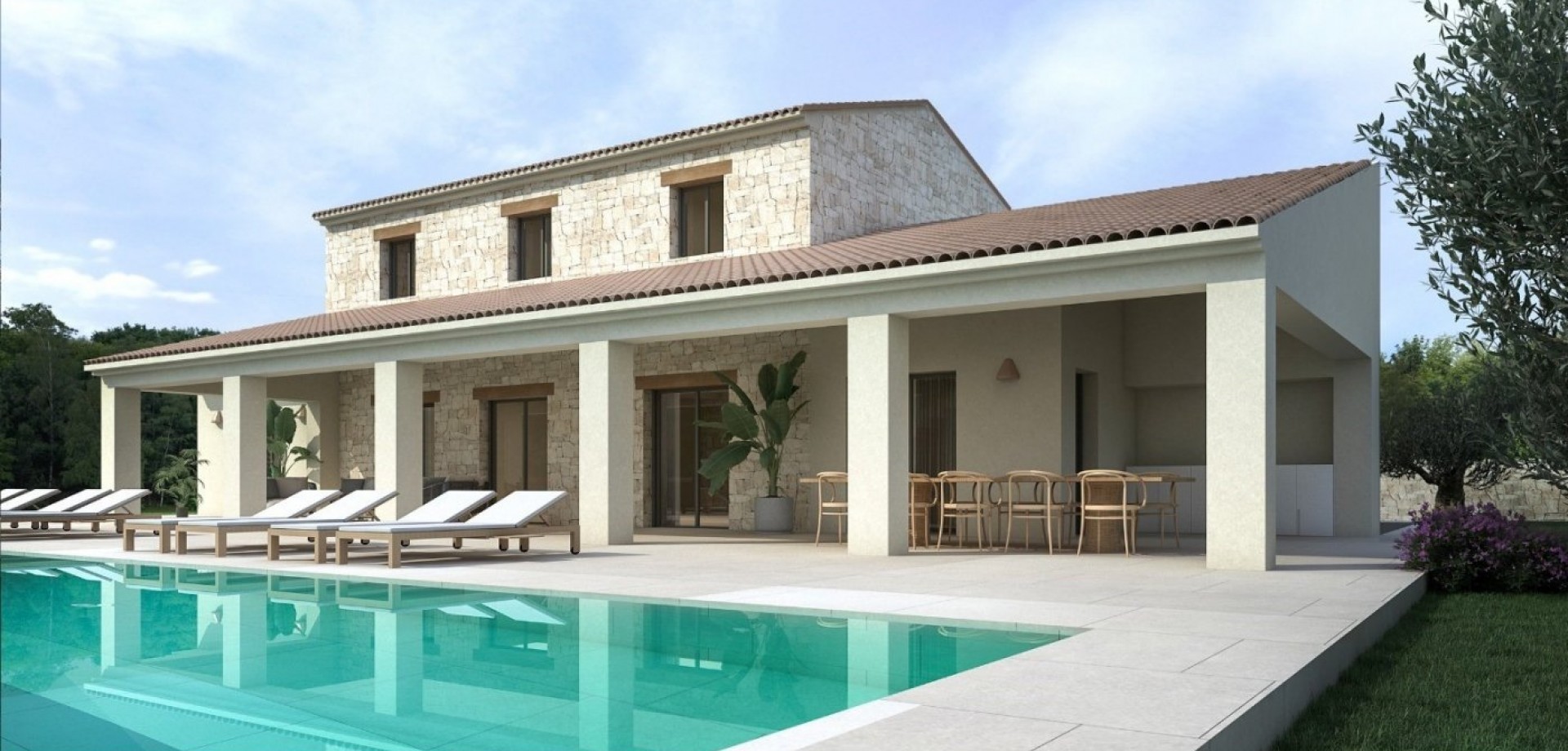 Недавно построенная вилла в Теуладе с видом на горы На первом этаже находится большая гостиная-столовая и кухня открытого плана, главная спальня с гардеробной и ванной комнатой, передняя терраса с выходом к бассейну. На втором этаже находятся 3 спальни со встроенными шкафами, 3 ванные комнаты. Также здесь есть подвал площадью 81 м2 с винным погребом. Вилла будет построена с использованием высококачественных материалов. Кухня будет выбрана клиентом, кухонные шкафы, столешница и техника. Кондиционеры с системой климат-контроля (конденс) в гостиных и спальнях. Бренд Mitsubishi. Бассейн будет построен с открытым душем (подключение горячей/холодной воды). Автоматические въездные ворота для автомобилей с дистанционным управлением и автоматическая пешеходная дверь. Сад по выбору клиента. Морайра - небольшой город с хорошими ресторанами, барами и множеством супермаркетов. Рядом с городом есть очень приятный пляж, который отлично подходит для семейного отдыха. С набережной открывается великолепный вид на Penon Ifach через залив в Кальпе. Стоит проехать по прибрежной дороге, чтобы насладиться захватывающими видами. Морайра расположена примерно в 1 часе 15 минутах езды на север по шоссе A7 от аэропорта Аликанте, и добраться до нее довольно легко. Примерно такое же расстояние или чуть меньше на юг от аэропорта Валенсии.