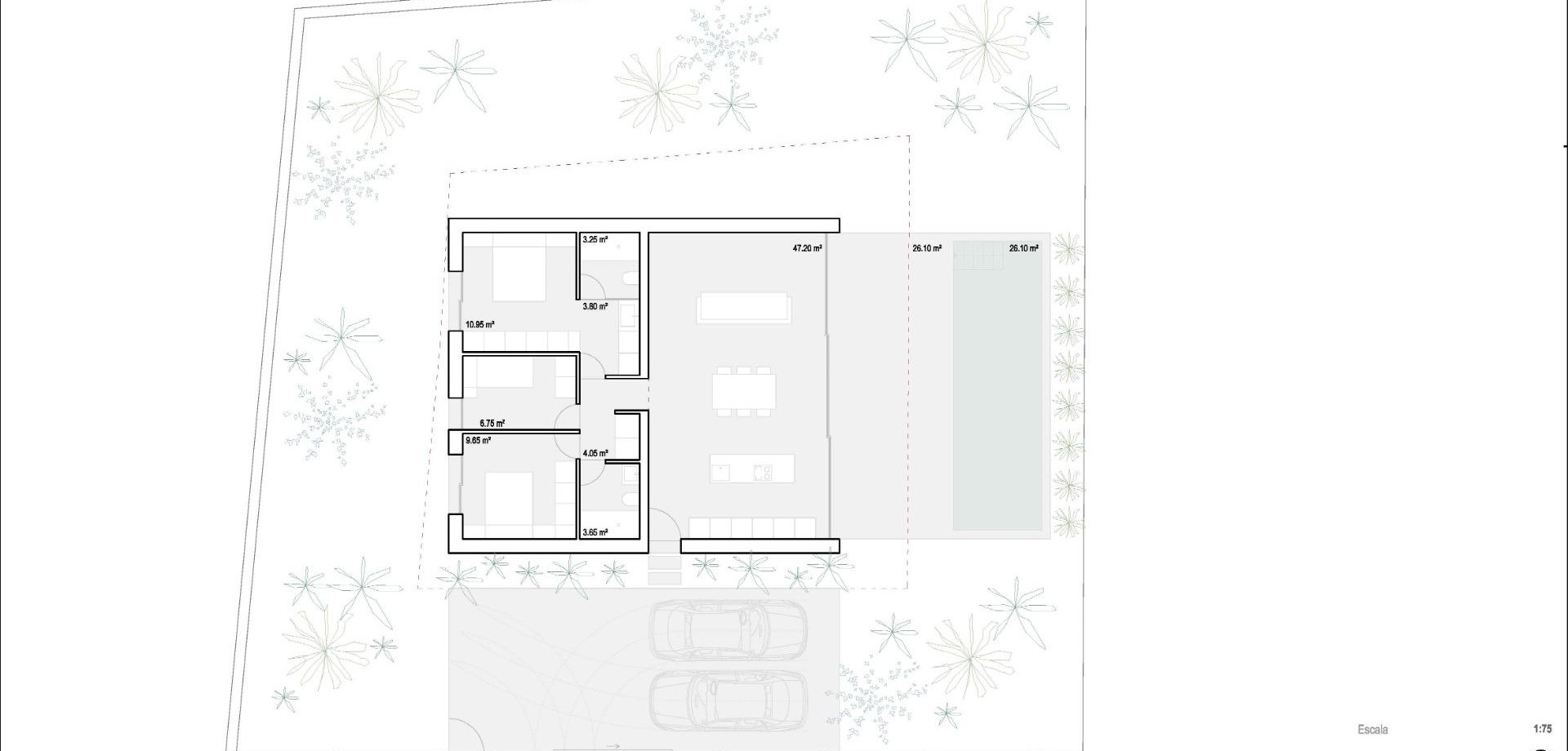 Новая минималистская вилла в Бенидорме с частным бассейном Современная одноэтажная вилла недалеко от пляжа Леванте Эта новая минималистская вилла расположена на окраине Бенидорма, на прекрасном средиземноморском побережье Коста-Бланка. Разработанная как эксклюзивный, но экономически выгодный вариант на все более конкурентном рынке недвижимости, эта вилла сочетает в себе функциональность, современный дизайн и комфорт в одноэтажной планировке. Вилла расположена на участке площадью 530 м2, всего в 2,4 км от пляжа Леванте и в 1,5 км от центра города, где вы найдете супермаркеты, рестораны, торговые центры, школы и все необходимые услуги. Бенидорм славится своими песчаными пляжами, оживленной атмосферой, пристанью для яхт и круглогодичным солнцем, что делает его идеальным местом как для постоянного проживания, так и для инвестиций в отдых. Функциональная планировка с частной террасой и бассейном Вилла расположена полностью на одном этаже, что обеспечивает практичный и комфортный проживание. Она имеет 3 спальни и 2 ванные комнаты, одна из которых примыкает к спальне, что делает ее идеальной для семей или тех, кто ищет дополнительное пространство для гостей или домашнего офиса. Просторная гостиная и столовая напрямую соединяются с террасой площадью 26 м2 и частным бассейном, создавая плавный переход между внутренним и внешним пространством, что соответствует средиземноморскому стилю жизни. Открытая площадка идеально подходит для отдыха, обедов или наслаждения солнечным климатом в течение всего года. К недвижимости также относится частная парковка на два автомобиля на участке. Качественные характеристики и возможности индивидуальной настройки Эта современная вилла поставляется с высококачественной отделкой и современным оборудованием, в том числе: Усиленная входная дверь с системой безопасности Автоматические ворота для въезда автомобилей Полностью оборудованная кухня с керамической плитой, вытяжкой, духовкой и встроенной микроволновой печью Аэротермальная система для горячего водоснабжения Сплит-система кондиционирования Минималистичная черная лакированная алюминиевая столярка с терморазрывом и двойным остеклением с акустическим контролем Кроме того, покупатели могут персонализировать отделку, системы климат-контроля, фотоэлектрические панели для собственного потребления и функции домашней автоматизации, что позволяет адаптировать недвижимость к вашим конкретным потребностям по фиксированной и прозрачной цене. Отличное расположение и расстояния Пляж Леванте 2,4 км Центр Бенидорма 1,5 км Порт Бенидорма 3 км Гольф-клуб Villaitana 4 км Аэропорт Аликанте 60 км Ваш современный дом в Бенидорме ждет вас Эта новая вилла предлагает современный дизайн, уединение и близость к пляжу в одном из самых динамичных городов Коста-Бланки. Свяжитесь с нами сегодня, чтобы получить дополнительную информацию и обеспечить себе новый дом в Бенидорме.