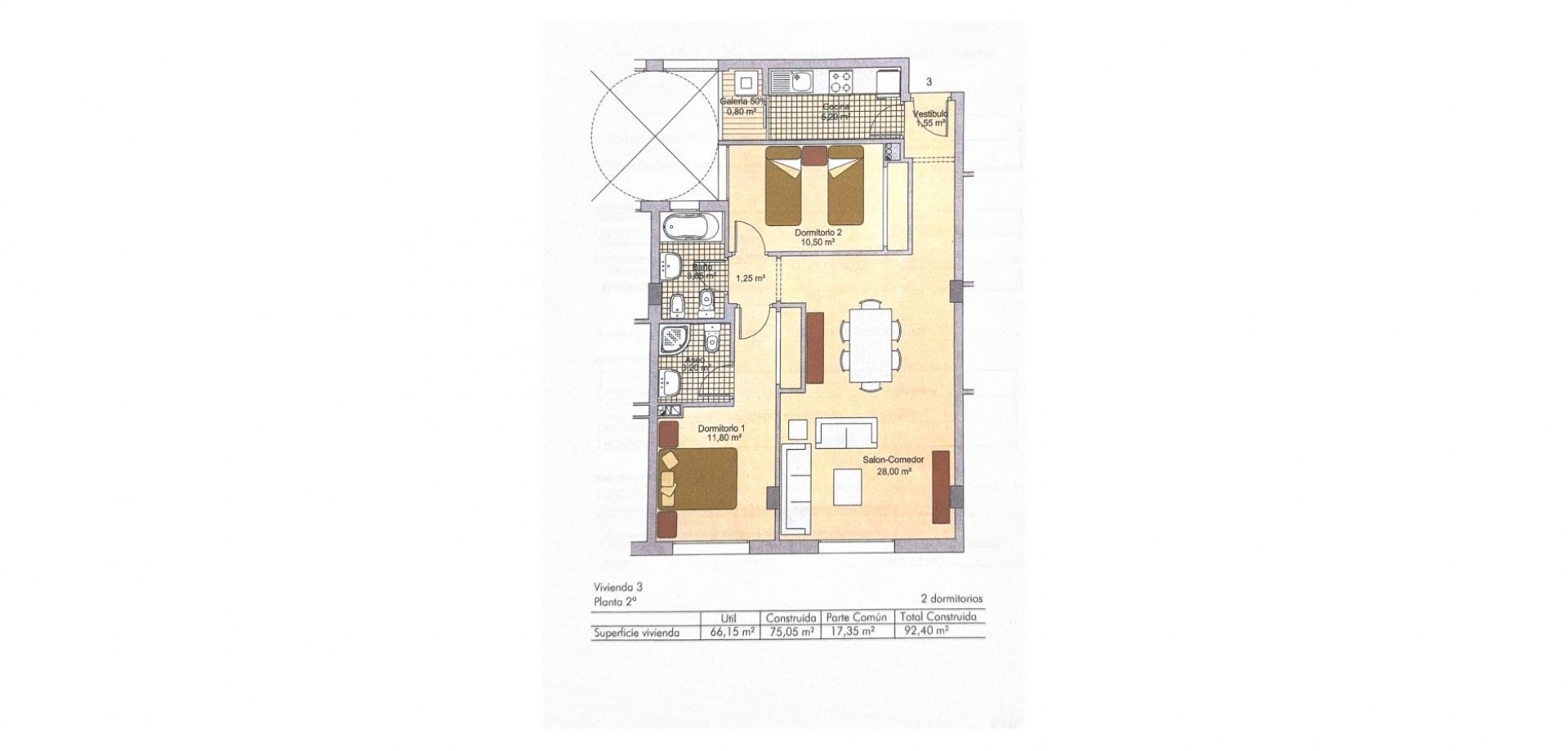 Включает просторную гостиную с обеденной зоной, оборудованную кухню, 2 спальни и 2 ванные комнаты, одна из которых — en-suite в главной спальне.
