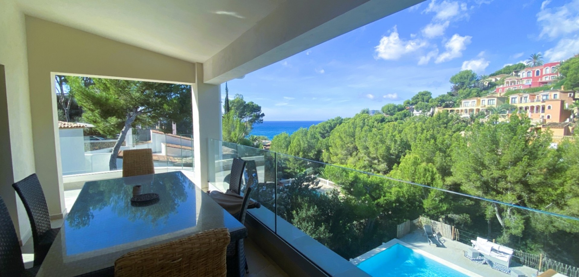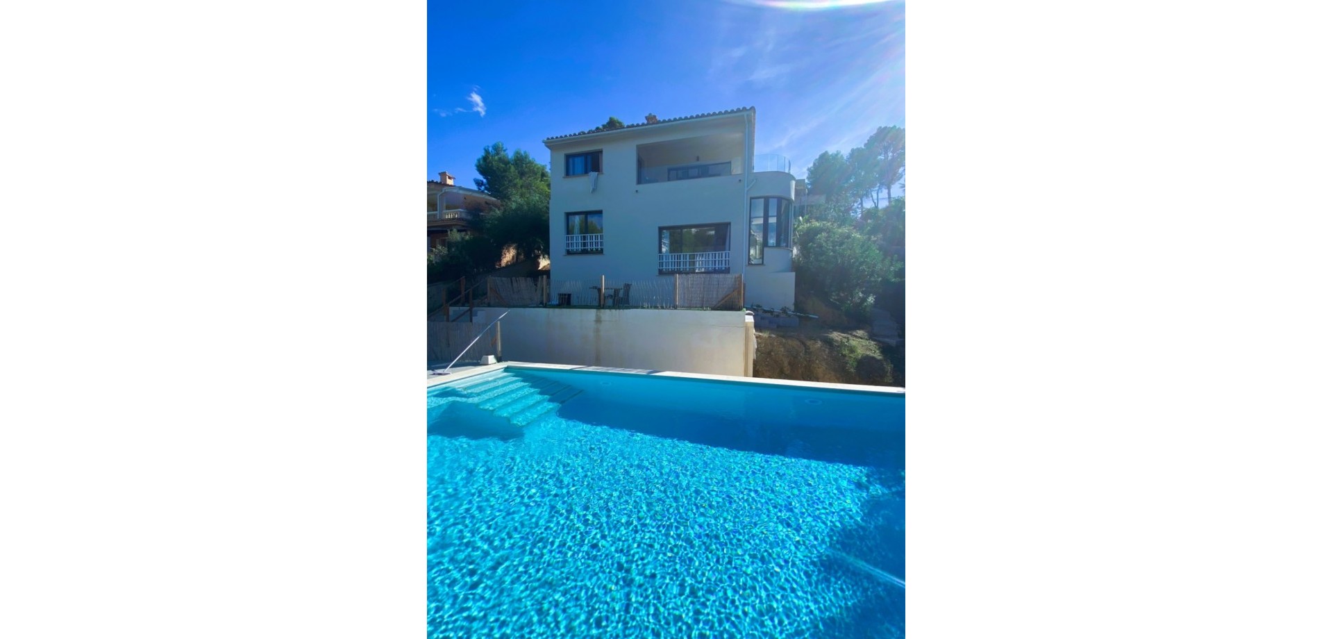 Эта элегантная, современная вилла на Коста-де-ла-Кальма была полностью отремонтирована в 2022 году и расположена на возвышенности, откуда открывается захватывающий вид на море. Окруженная ухоженным садом и плодородными деревьями, с прямым доступом к морю, она идеально подходит как для постоянного проживания, так и для отдыха. Вход в дом находится на первом этаже, откуда вы попадаете в светлую открытую гостиную и столовую с интегрированной кухней. Из гостиной есть выход на просторную террасу с потрясающим панорамным видом на море. На втором этаже вы найдете три спальни, каждая из которых с собственным санузлом. Главная спальня включает в себя просторную гардеробную, большую ванную комнату с видом на море и смежный кабинет. Две дополнительные спальни также имеют панорамный вид на море. На заднем дворе дома расположен просторный бассейн, идеально подходящий для отдыха или развлекательных мероприятий, с местом для садоводства, барбекю и других уличных активностей. Рядом с бассейном находится полностью оборудованная квартира для гостей с кухней. Недвижимость также включает в себя большой гараж, две кладовые и туалет для гостей. Вилла расположена всего в одной минуте ходьбы от пляжа и является идеальным местом для отдыха. Коста-де-ла-Кальма — это тихий район в муниципалитете Кальвиа, на юго-западе Майорки. Он известен своими маринами, гольф-полями, международными школами, красивыми бухтами и отличной инфраструктурой. Пальма находится в 20 минутах езды, а аэропорт — всего в 25 минутах. Отказ от ответственности: Некоторые сведения, содержащиеся в этом документе, получены от данных, предоставленных владельцами / сотрудниками. Вся предоставленная информация считается надежной, но не гарантируется ее точность и должна быть проверена независимо.