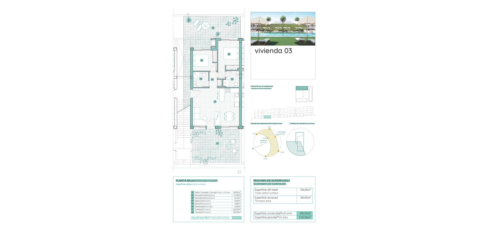 НОВЫЙ ЖИЛОЙ КОМПЛЕКС БУНГАЛО В ЛОС БАЛКОНЕС Откройте для себя идеальную гармонию между роскошью и комфортом в наших апартаментах на первом этаже с садом или на верхних этажах с балконом и солярием. Резиденции состоят из 2 спален и 2 ванных комнат, с возможностью установки третьей спальни в соответствии с вашими потребностями. Из каждой квартиры открывается захватывающий вид на розовую лагуну Торревьехи, создавая уникальный опыт, где природа становится неотъемлемой частью вашей повседневной жизни. Общие зоны являются продолжением вашего частного оазиса. Погрузитесь в наш бассейн-инфинити, наслаждаясь панорамным видом на розовую лагуну, поиграйте с малышами на детской площадке или прогуляйтесь по благоустроенным зеленым зонам. Стратегически удачно расположенный комплекс находится в нескольких минутах от пляжей Торревьехи, оживленного торгового центра Zenia Boulevard и множества удобств, таких как супермаркеты, аптеки и рестораны. Близость к полям для гольфа и шоссе, ведущему в аэропорт Аликанте, обеспечивает легкий доступ ко всему, что вы любите. Эта недвижимость - больше, чем дом, это стиль жизни, который включает в себя природную красоту, современный комфорт и удобство. Исключительный жилой комплекс - это идеальное место для жизни, которую вы всегда себе представляли. Добро пожаловать в новый жилой комплекс, где каждый день - это шедевр роскоши и безмятежности!
