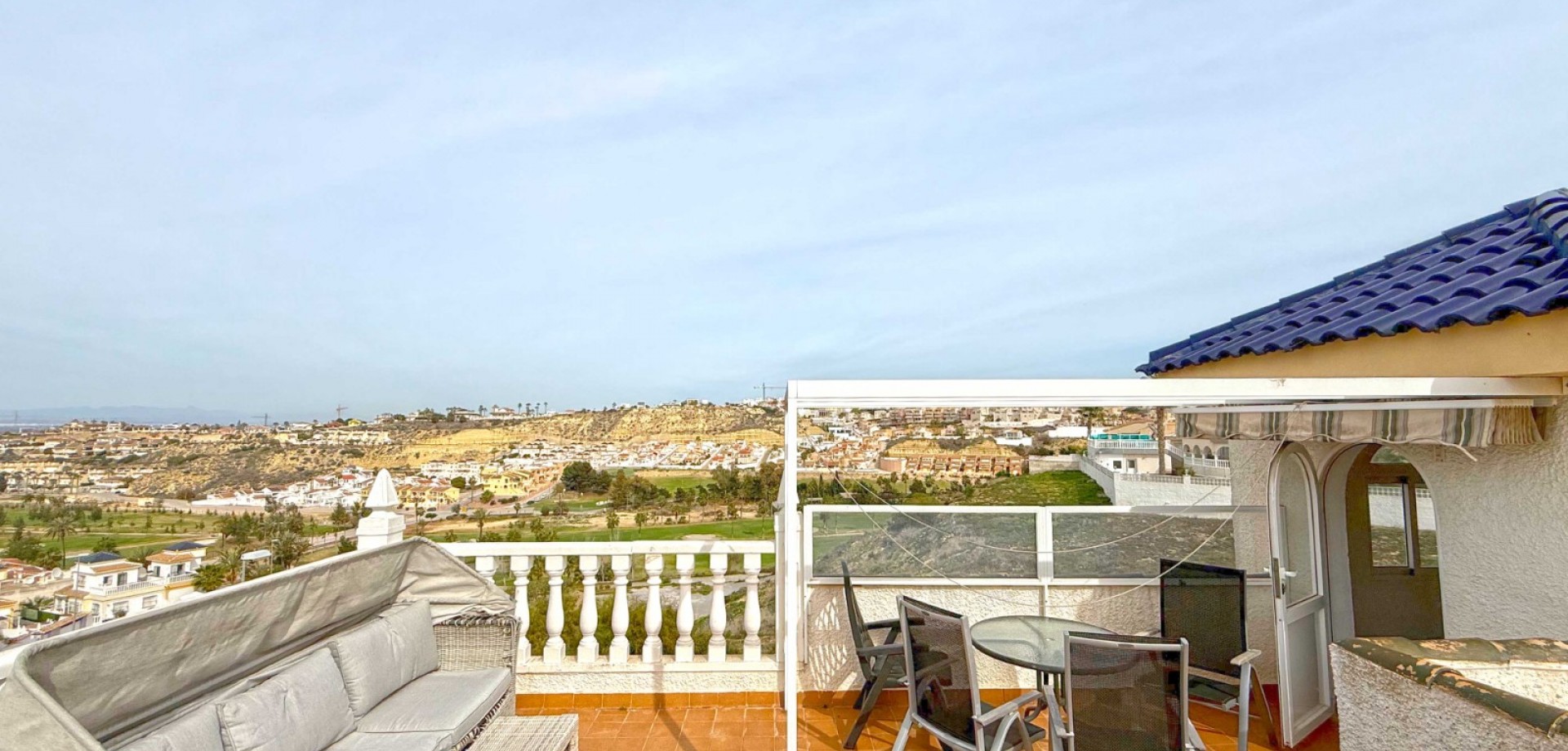 Fastigheten stoltserar med en vackert anlagd trädgård som skapar en privat oas och kompletterar den lugna omgivningen. Njut av exklusiv privat tillgång till den gemensamma poolen, perfekt för avslappnade dopp under varma dagar. Och för dem som uppskattar panoramavyer, erbjuder den rymliga takterrassen hisnande utsikter – varje nivå visar fantastiska vyer över La Marquesa golfbana, där nästan hela banan syns från toppen.