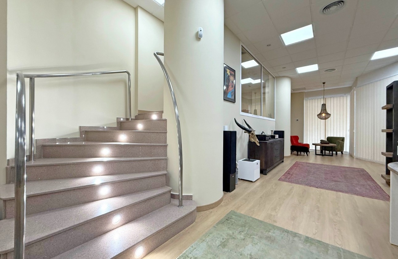 Upptäck en totalrenoverad kommersiell kontorslokal i hjärtat av Torrevieja, idealisk för fastighetsbyråer, advokatbyråer och andra professionella verksamheter. Detta moderna arbetsutrymme erbjuder ett konferensrum, stort öppet skrivbordsutrymme och ett separat kök/lunchrum för personalens bekvämlighet. Dessutom finns ett förråd/arkiv och ett privat kontor på andra våningen, perfekt för chefer. Två fullständiga badrum med duschkabiner gör lokalen komplett och funktionell.