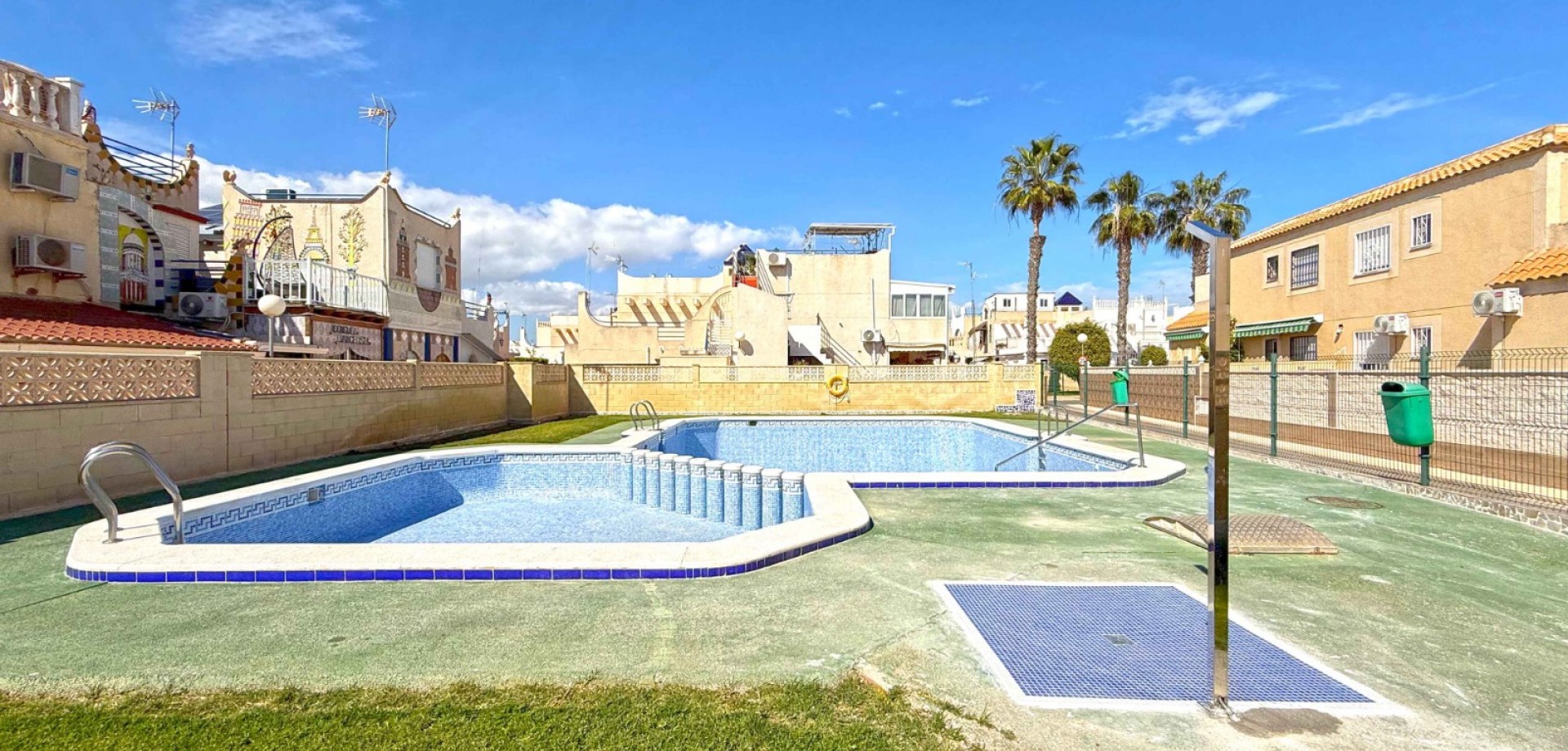 Utomhusområden inkluderar en privat markterrass och en rymlig takterrass, perfekt för avkoppling eller umgänge. Fastigheten har även privat parkering för två bilar och tillgång till en gemensam pool. Säljs fullt möblerad och inflyttningsklar.