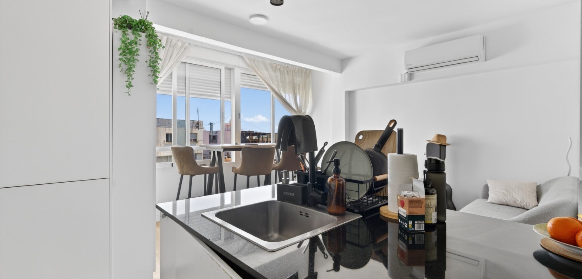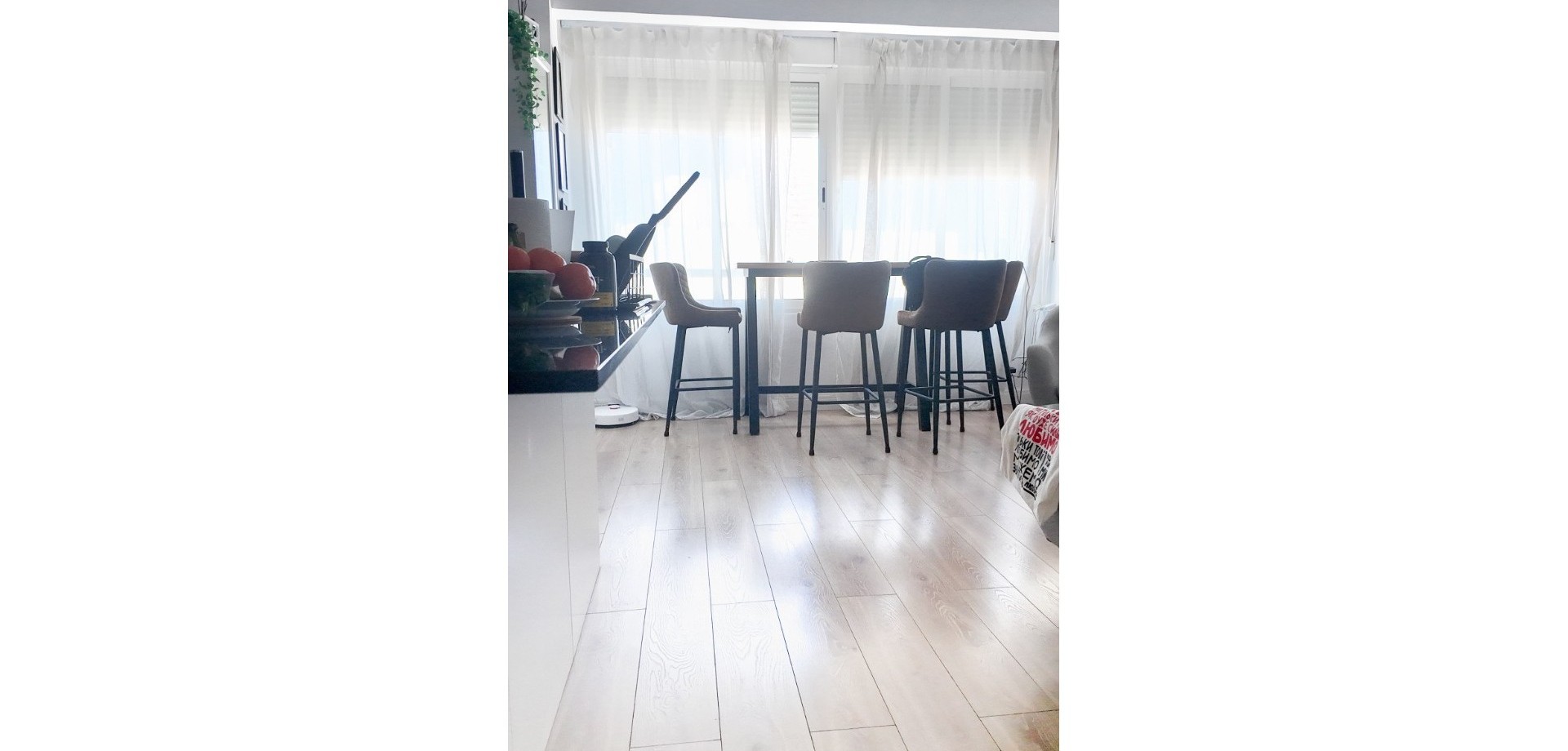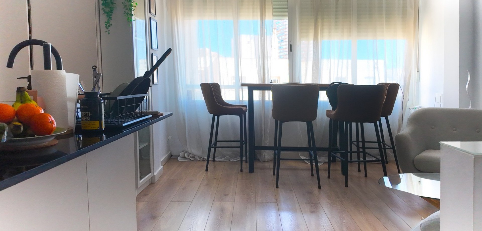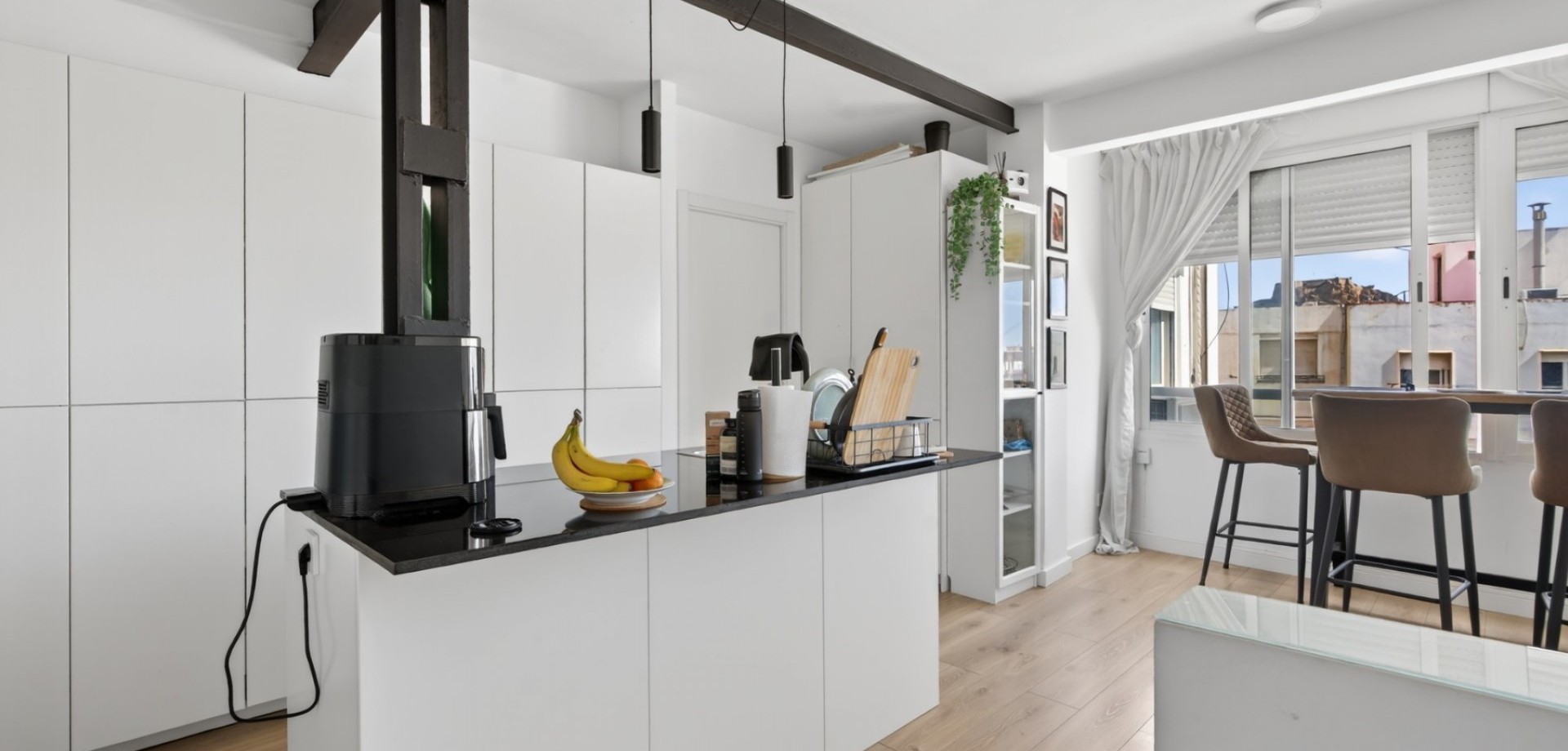 Vacker totalrenoverad lägenhet belägen på 7:e våningen (mot innergård) med hiss. Ljus, tyst och med en modern och funktionell planlösning. Planlösning och egenskaper: 2 sovrum med eget badrum Master bedroom med rymlig walk-in-closet Andra sovrummet med praktisk öppen förvaringsyta Stort öppet kök i amerikansk stil integrerat med vardagsrummet Rymligt vardagsrum med stort fönster som ger rikligt med naturligt ljus Strategiskt läge mitt emot RENFE tågstation, med service, butiker och kollektivtrafik precis utanför dörren. Pris: 290.000 € För närvarande uthyrd, med 6 månader kvar på kontraktet. Perfekt som investering med omedelbar avkastning eller som framtida permanentbostad.