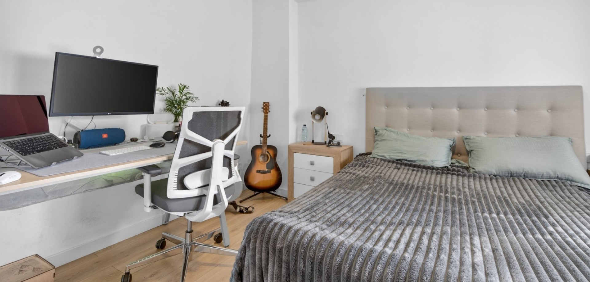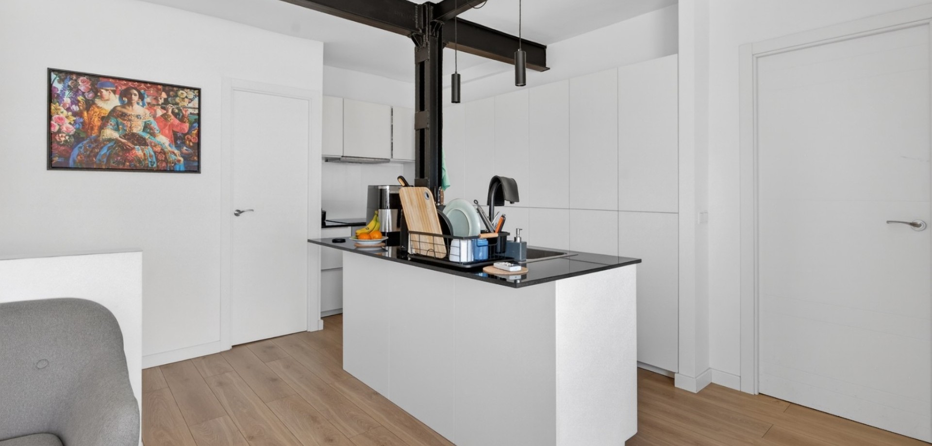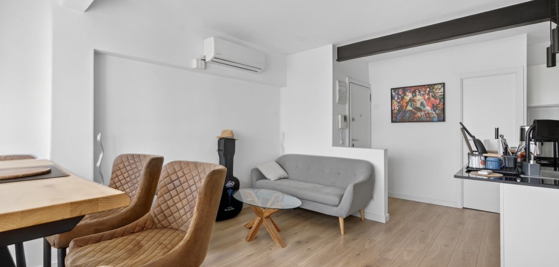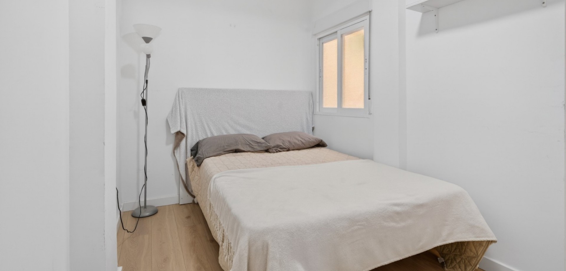 Vacker totalrenoverad lägenhet belägen på 7:e våningen (mot innergård) med hiss. Ljus, tyst och med en modern och funktionell planlösning. Planlösning och egenskaper: 2 sovrum med eget badrum Master bedroom med rymlig walk-in-closet Andra sovrummet med praktisk öppen förvaringsyta Stort öppet kök i amerikansk stil integrerat med vardagsrummet Rymligt vardagsrum med stort fönster som ger rikligt med naturligt ljus Strategiskt läge mitt emot RENFE tågstation, med service, butiker och kollektivtrafik precis utanför dörren. Pris: 290.000 € För närvarande uthyrd, med 6 månader kvar på kontraktet. Perfekt som investering med omedelbar avkastning eller som framtida permanentbostad.